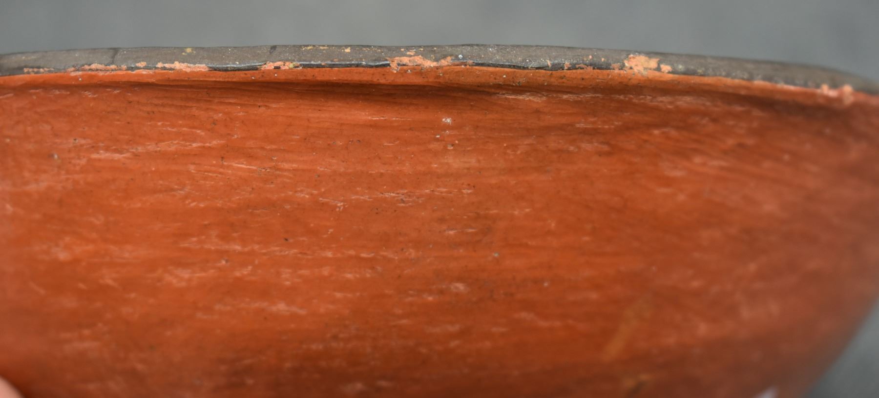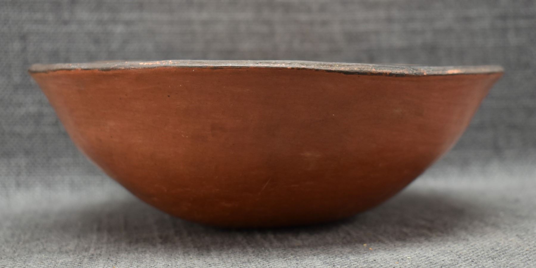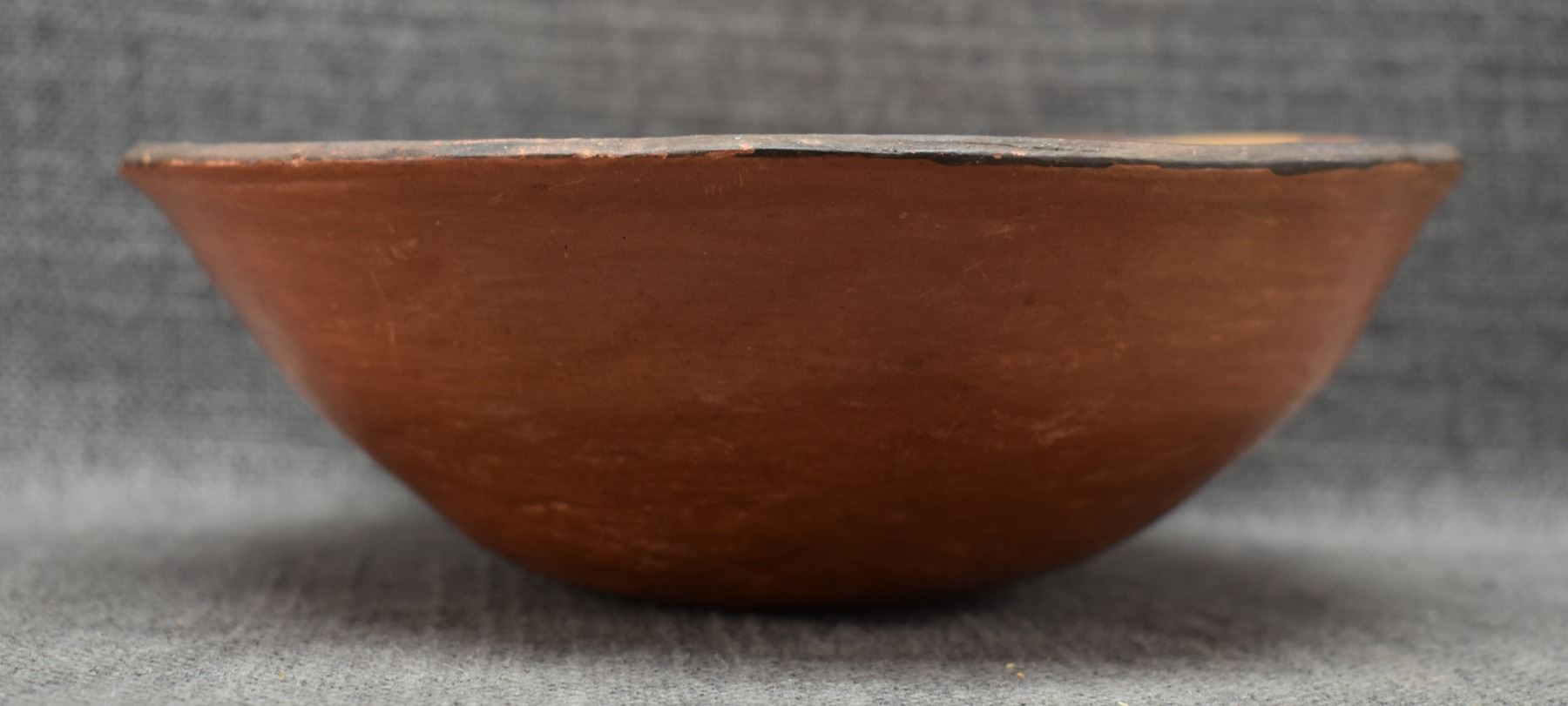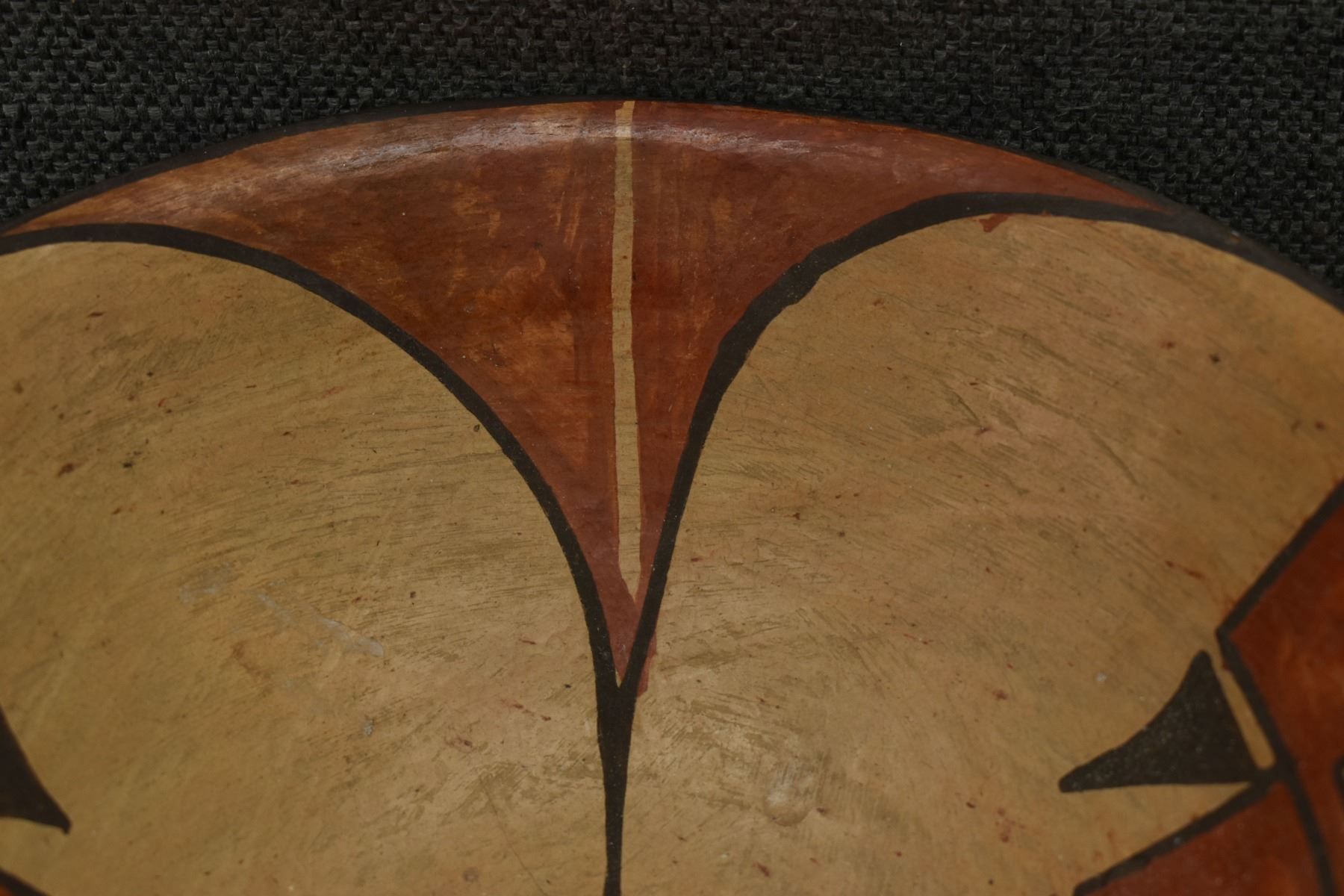 1950's Zia, Hand coiled and painted geometric polychrome design pottery bowl. 2.75'' x 8''