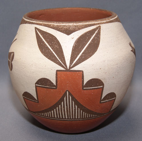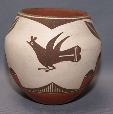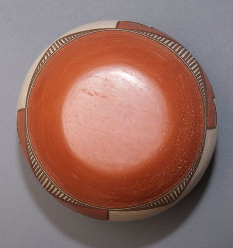 1970s geometric and bird design stone polished bottom, 6.5" x 6.5"