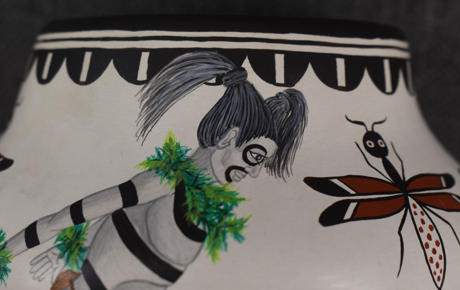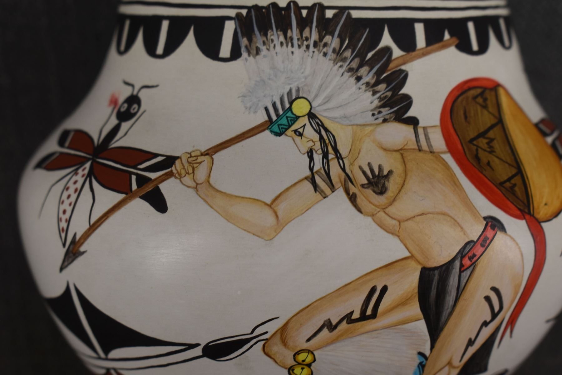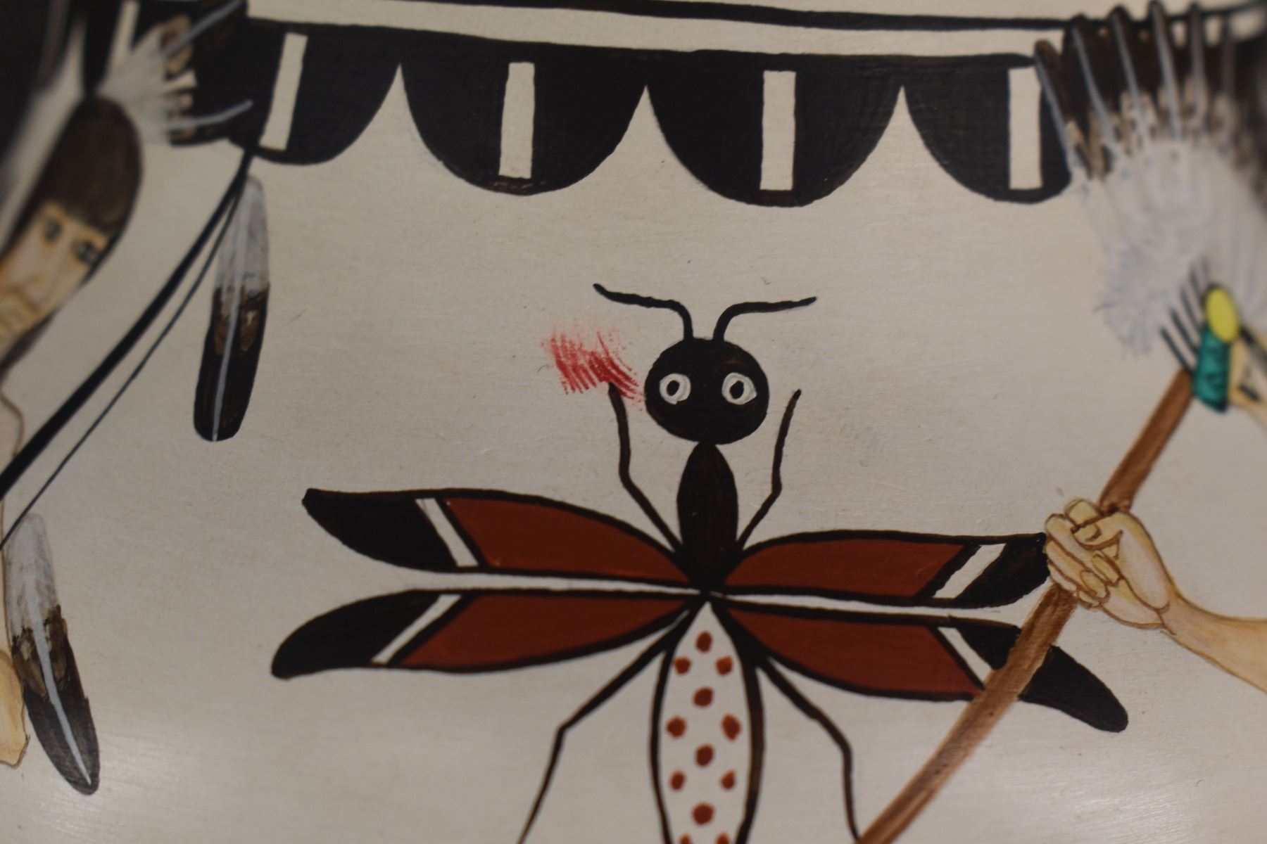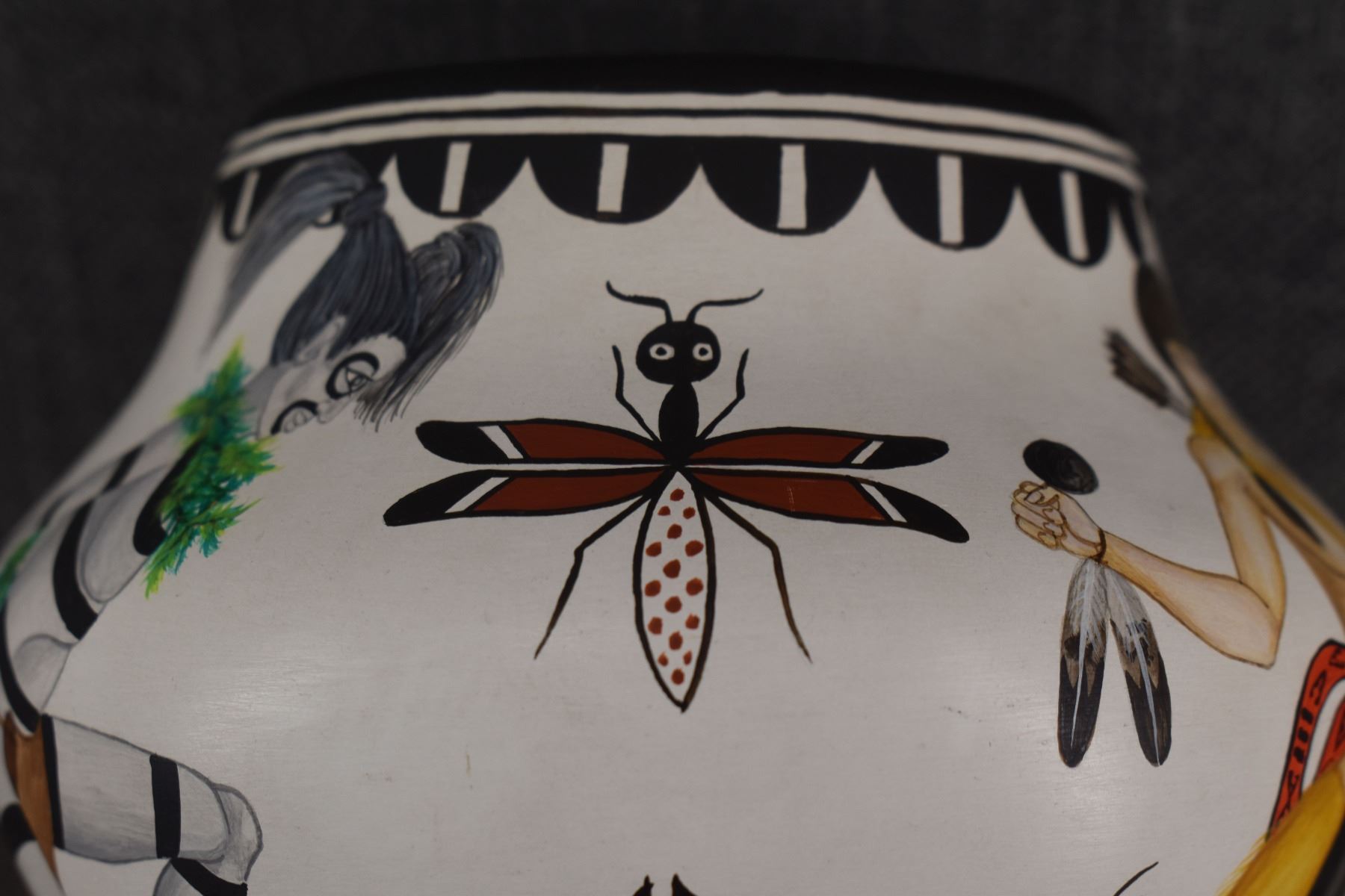 1980's Zia. Hand coiled and painted depicting dancers and kachina figures, signed Elizabeth & Marcellus Medina. 5'' x 6''