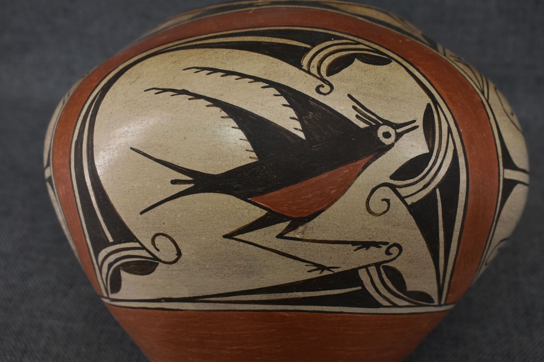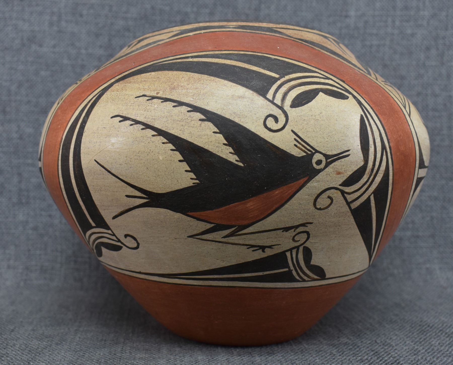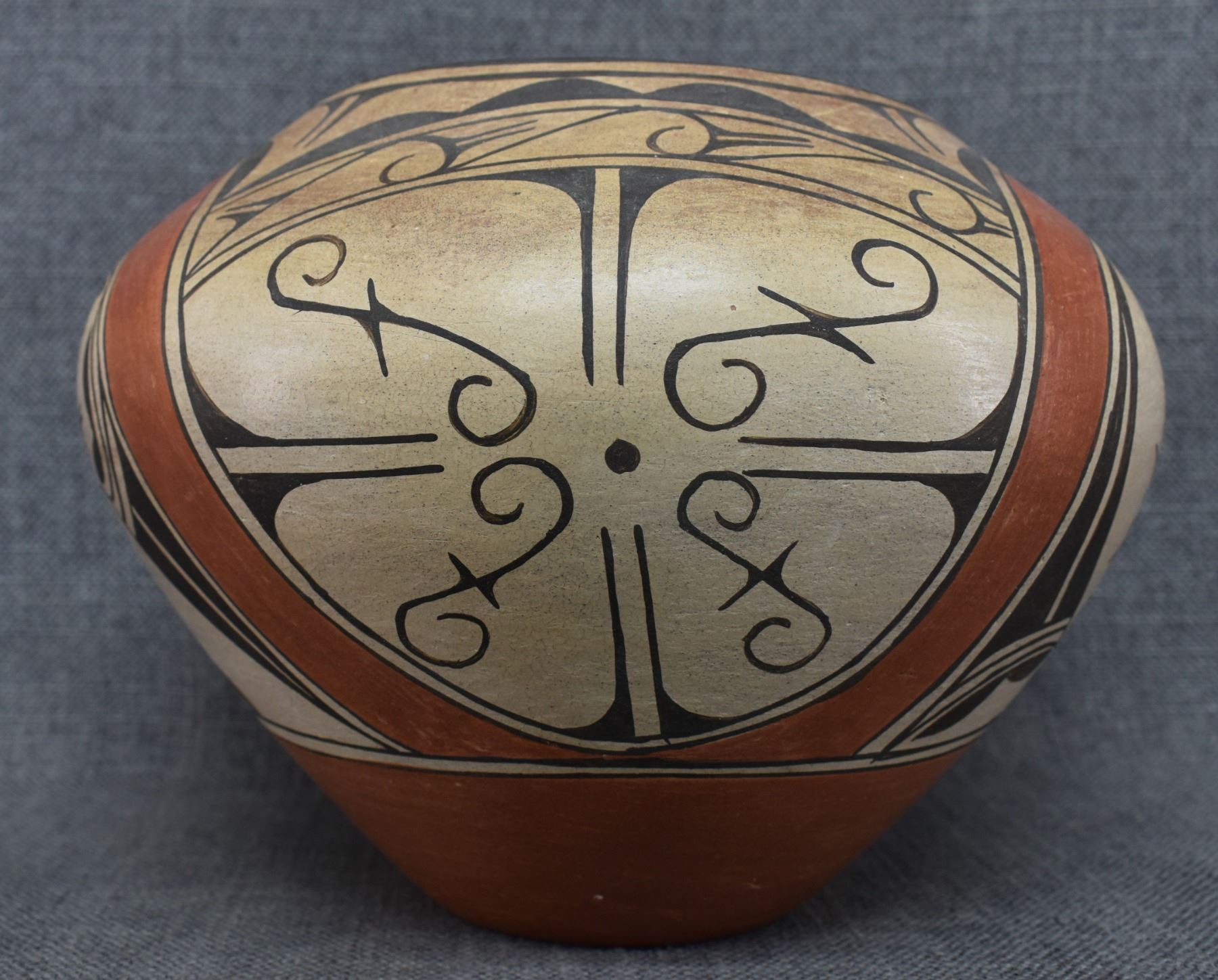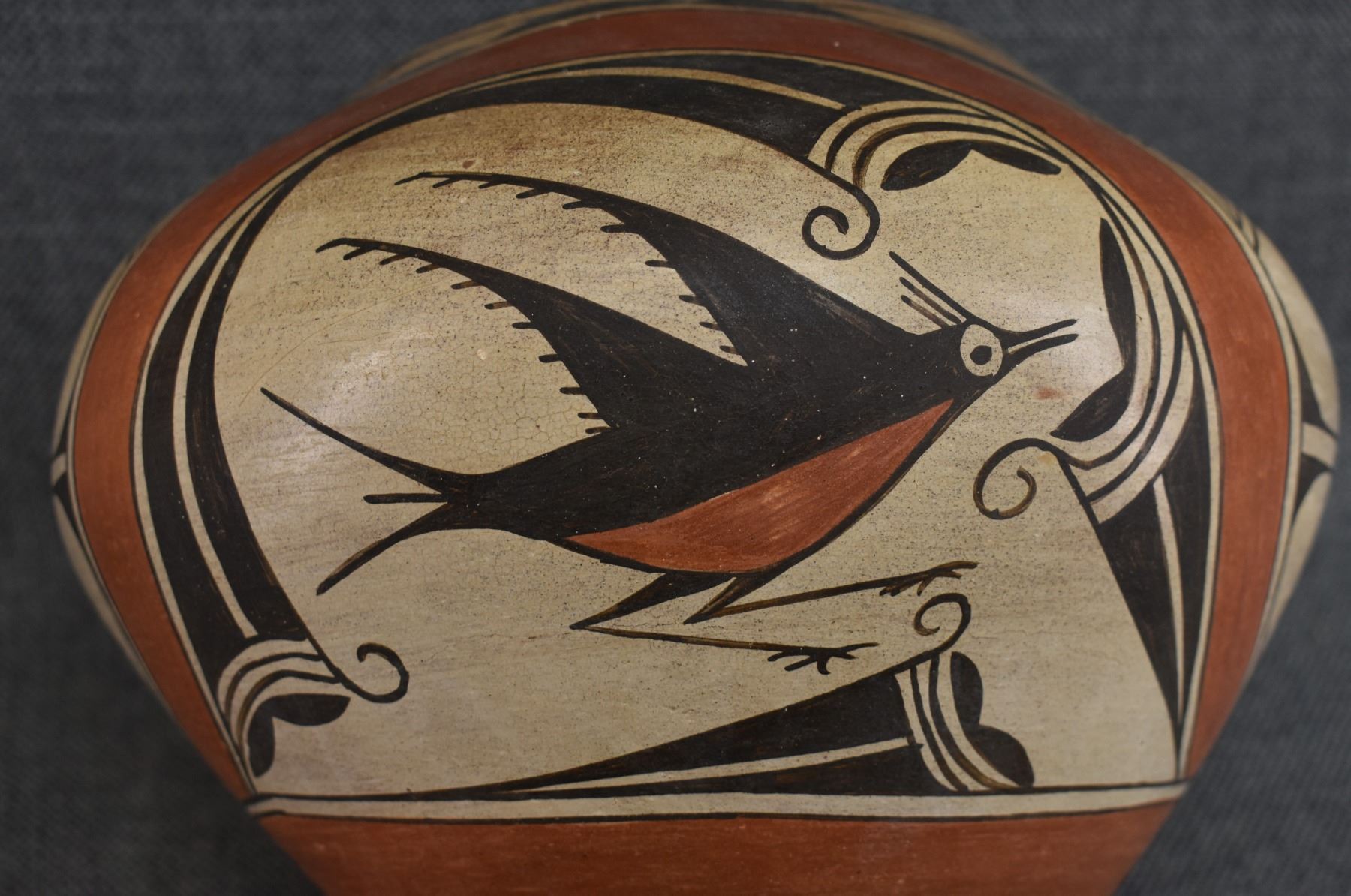 1980's Zia hand coiled with polychrome painted design. 7.5" x 9.5"
