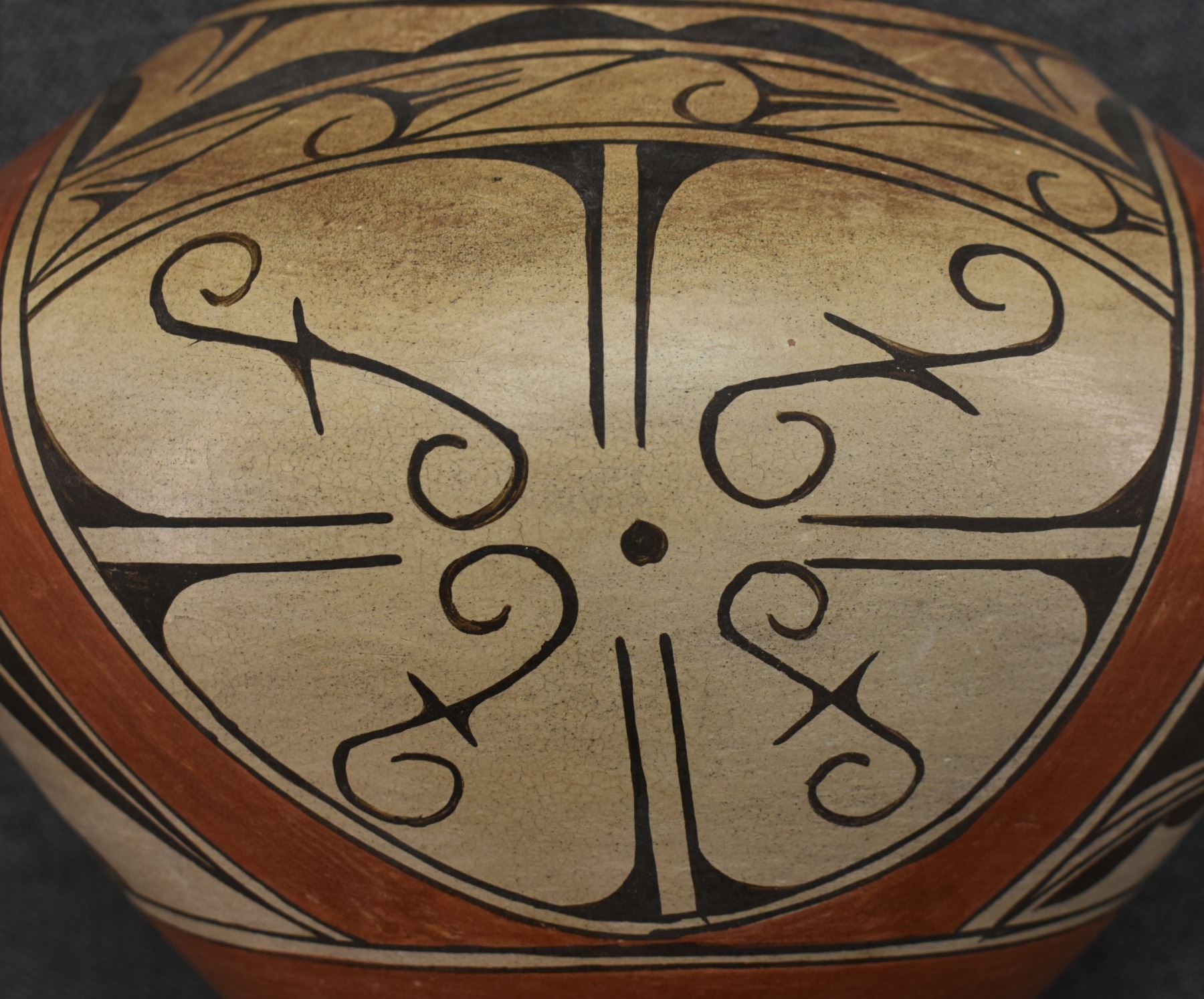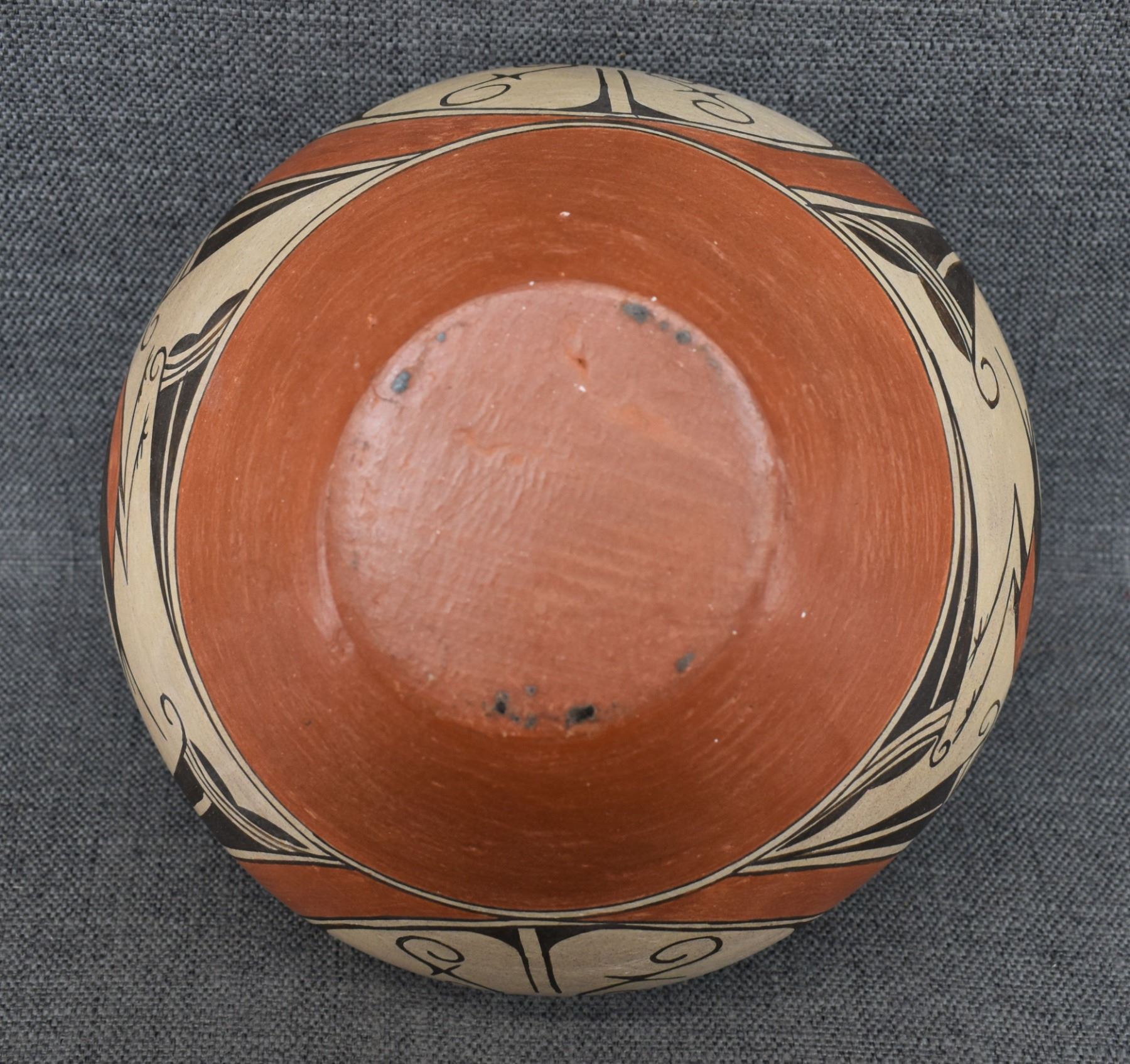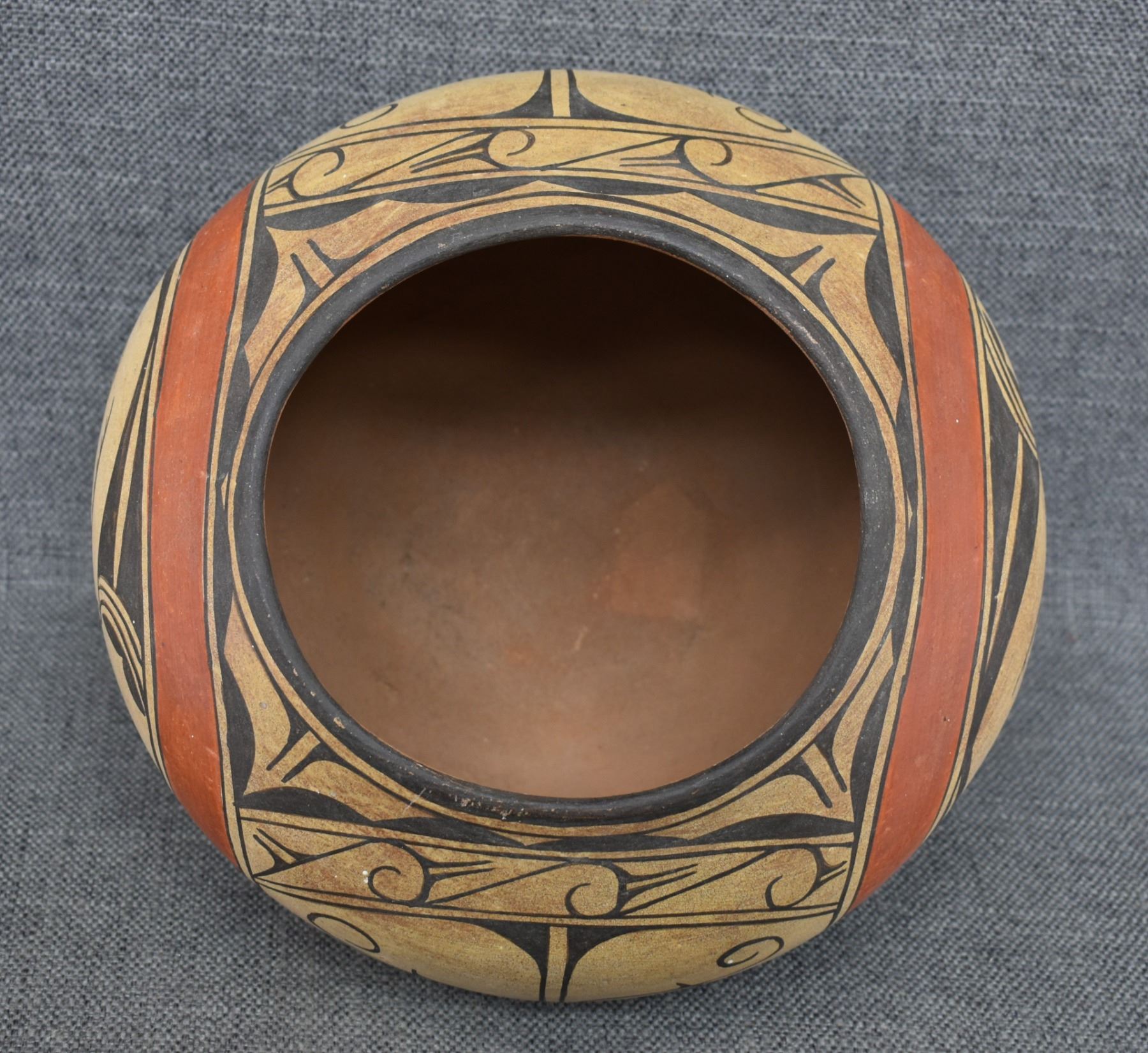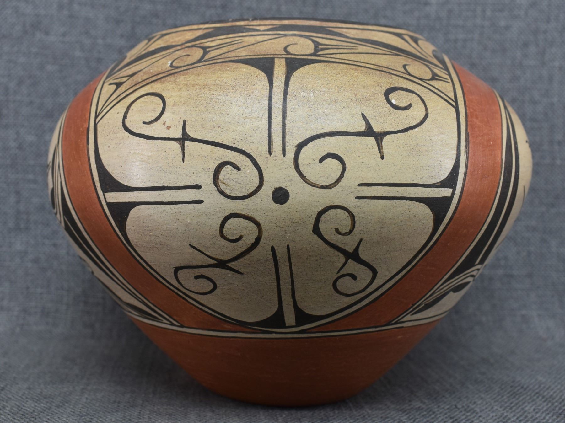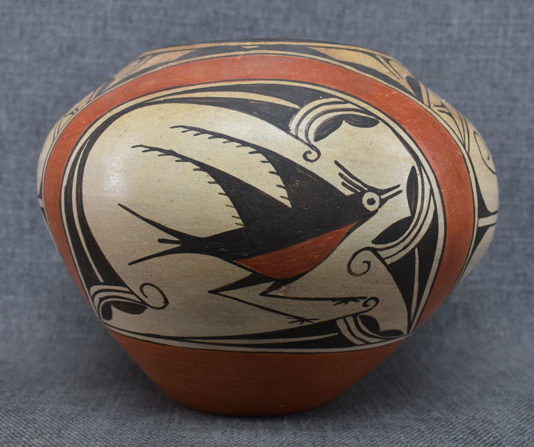 1980's Zia hand coiled with polychrome painted design. 7.5" x 9.5"