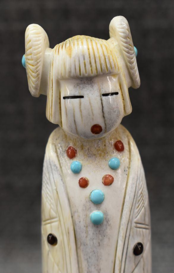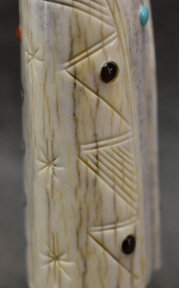 2000's Zuni. Hand carved antler fetish signed Troy Sice, 4'' tall