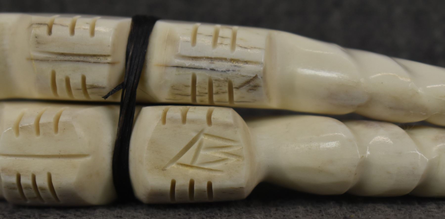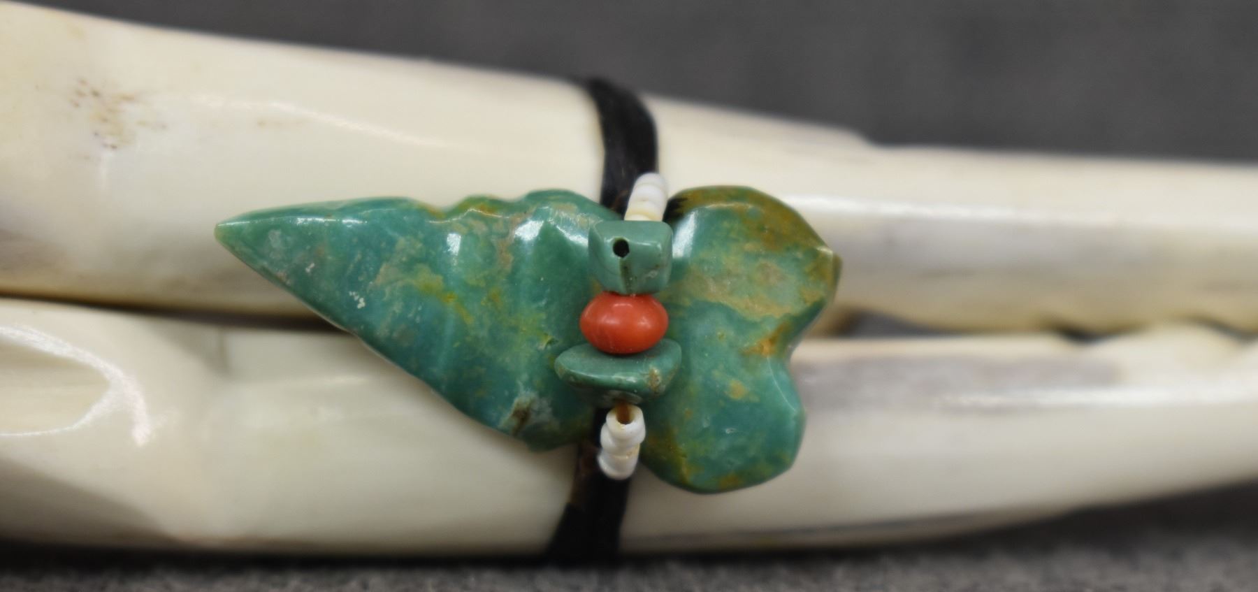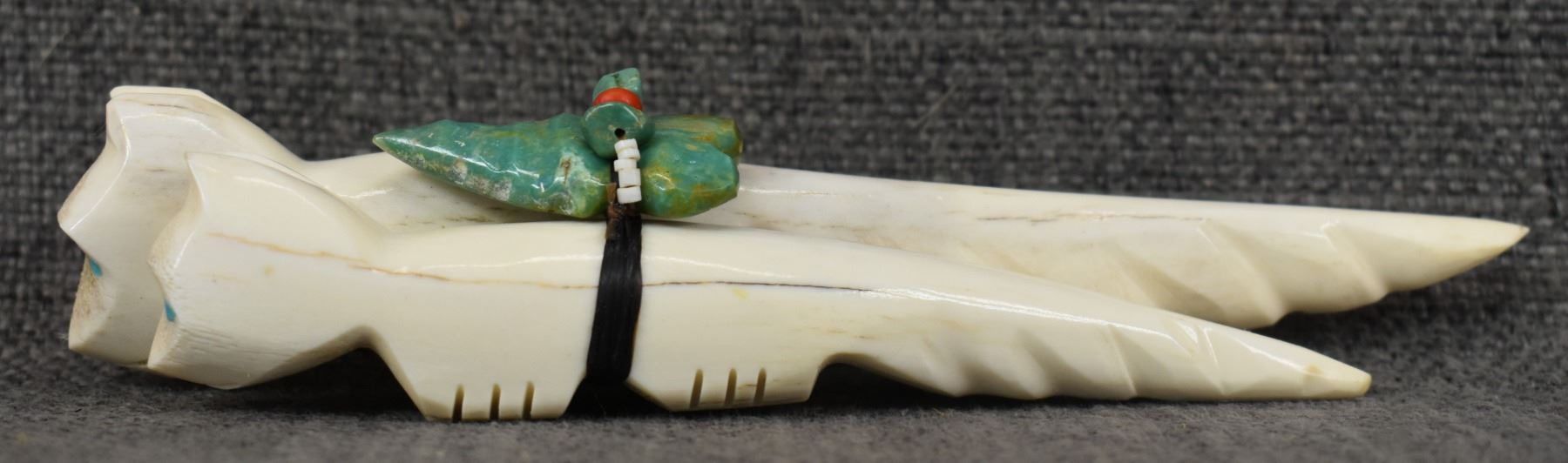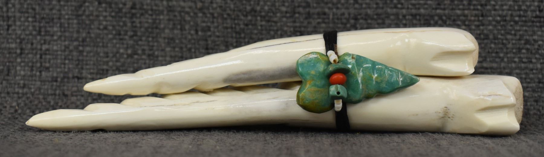 1980's Zuni. Hand carved antler with turquoise arrow head bundle.1.5'' x 6'' x 1.25''