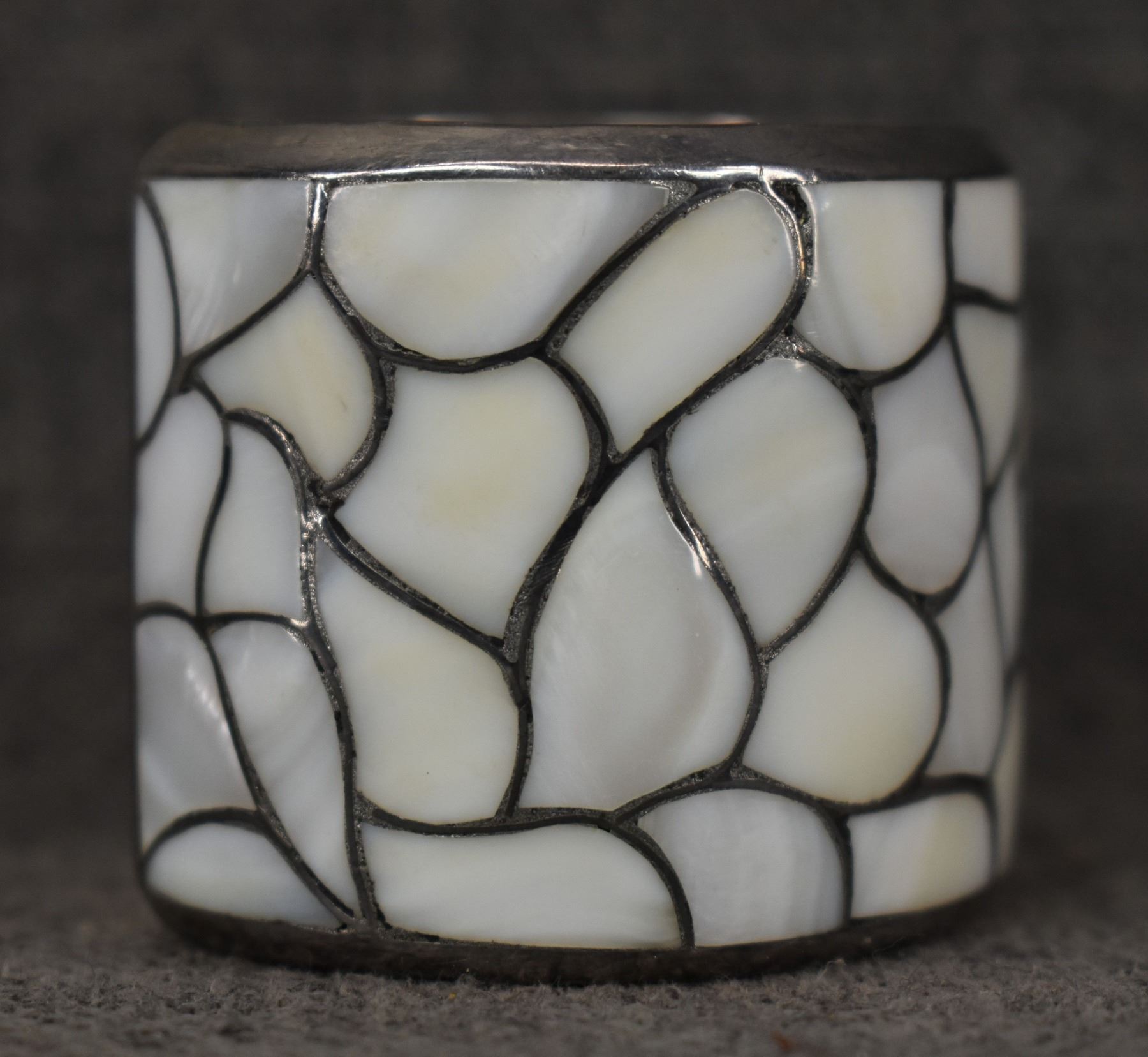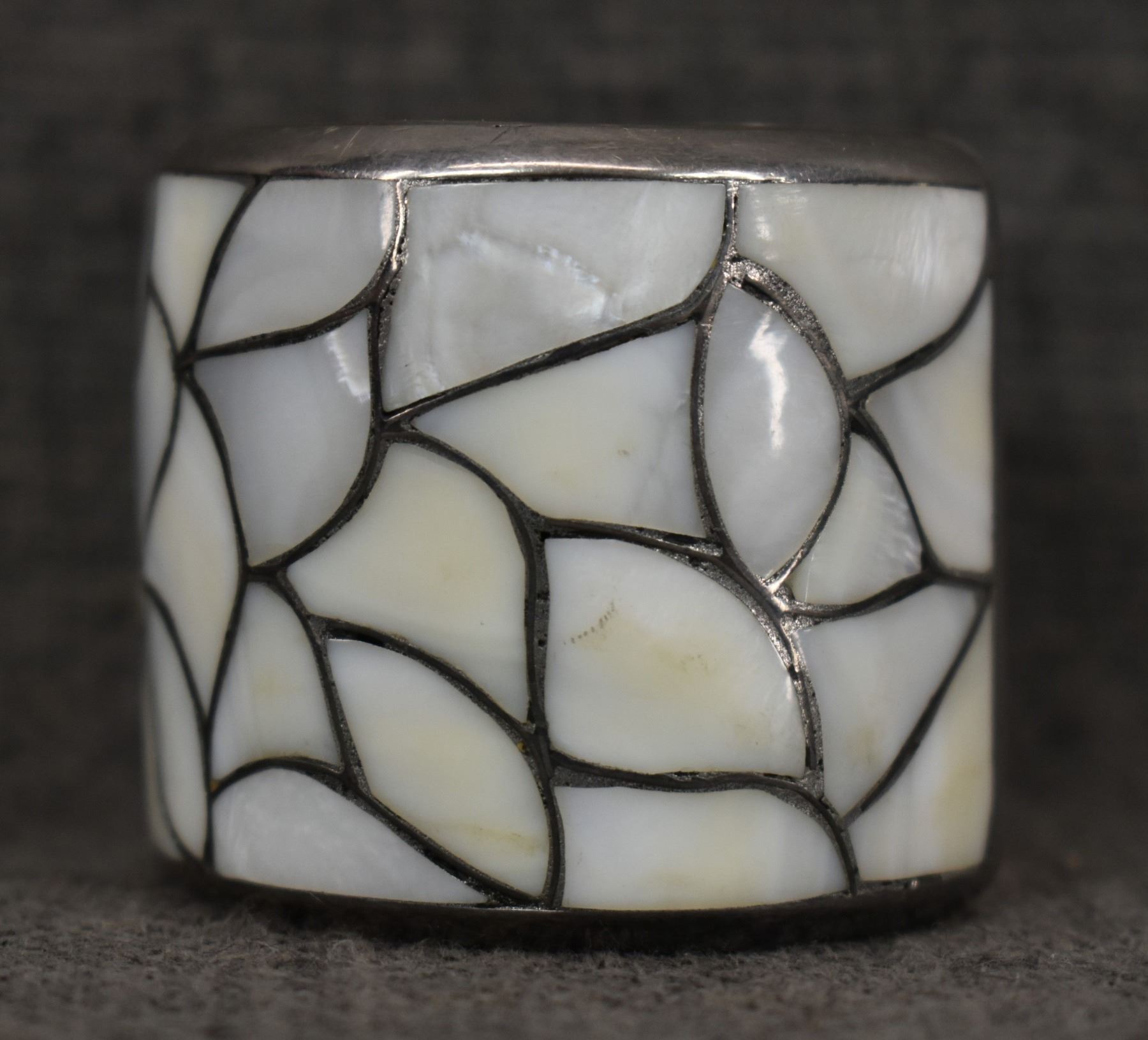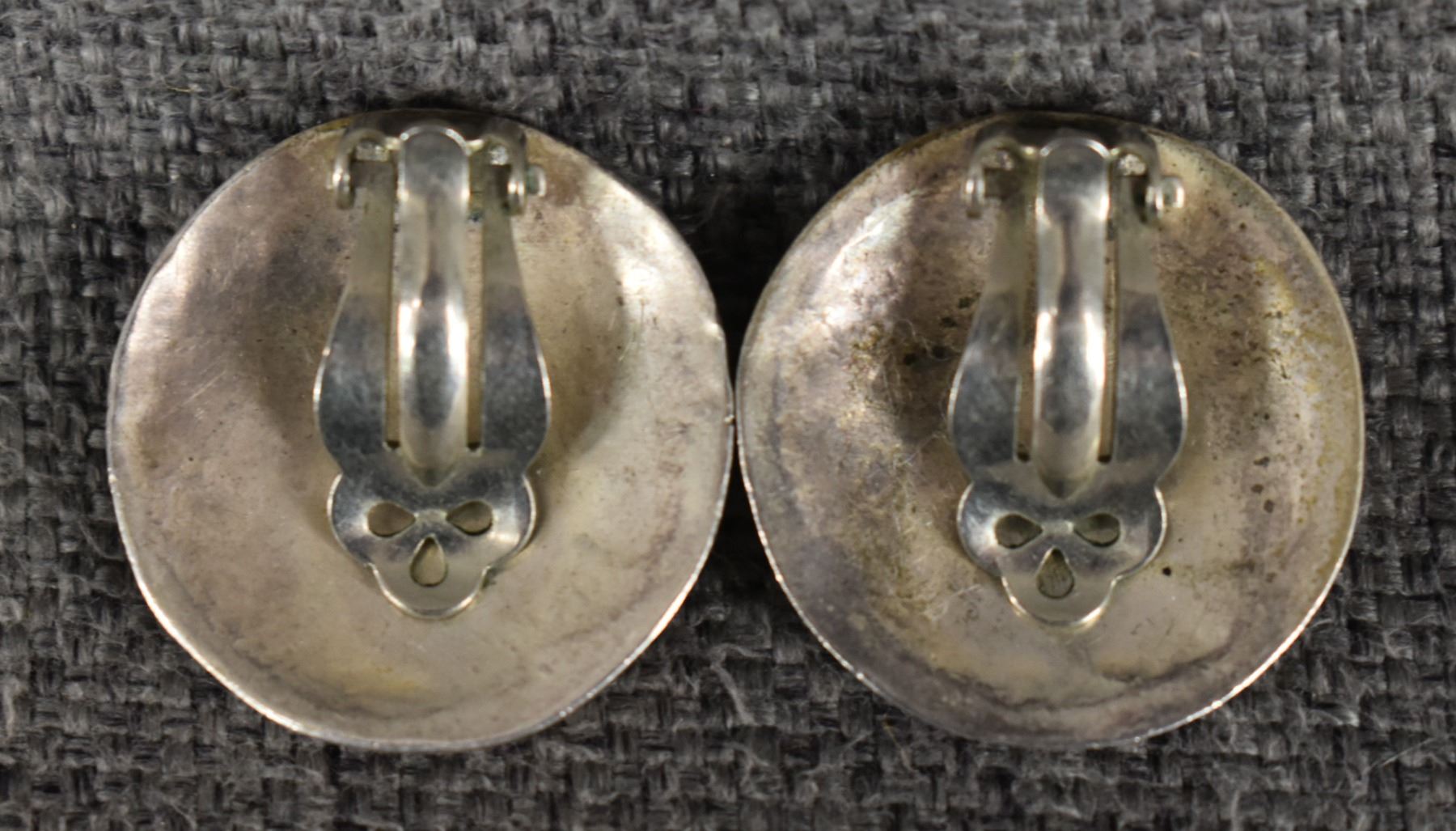 1960's Zuni, sterling silver channel inlaid shell, 1.5" x 5" x .75" earrings 1" diameter, total weight 90 grams