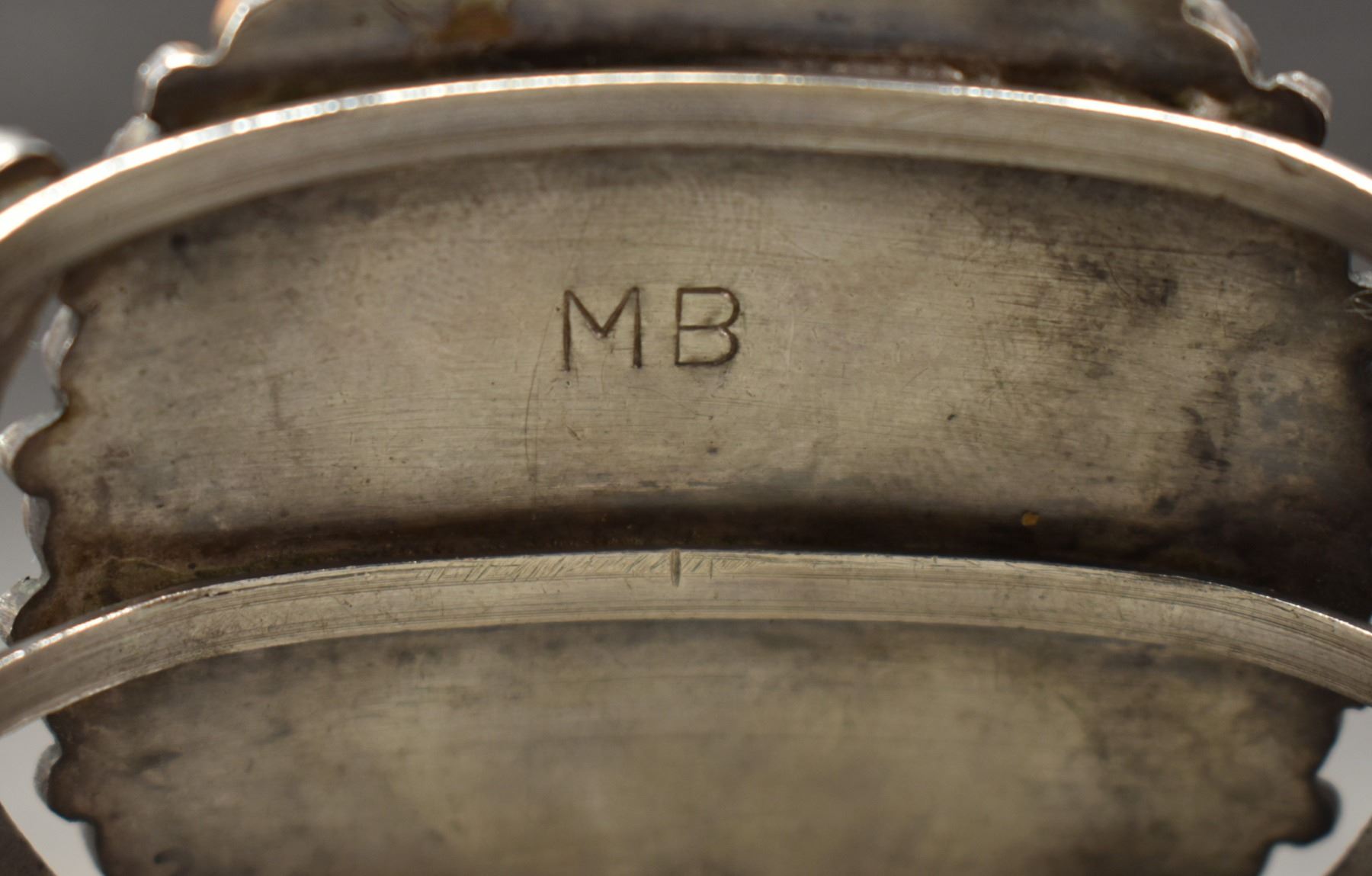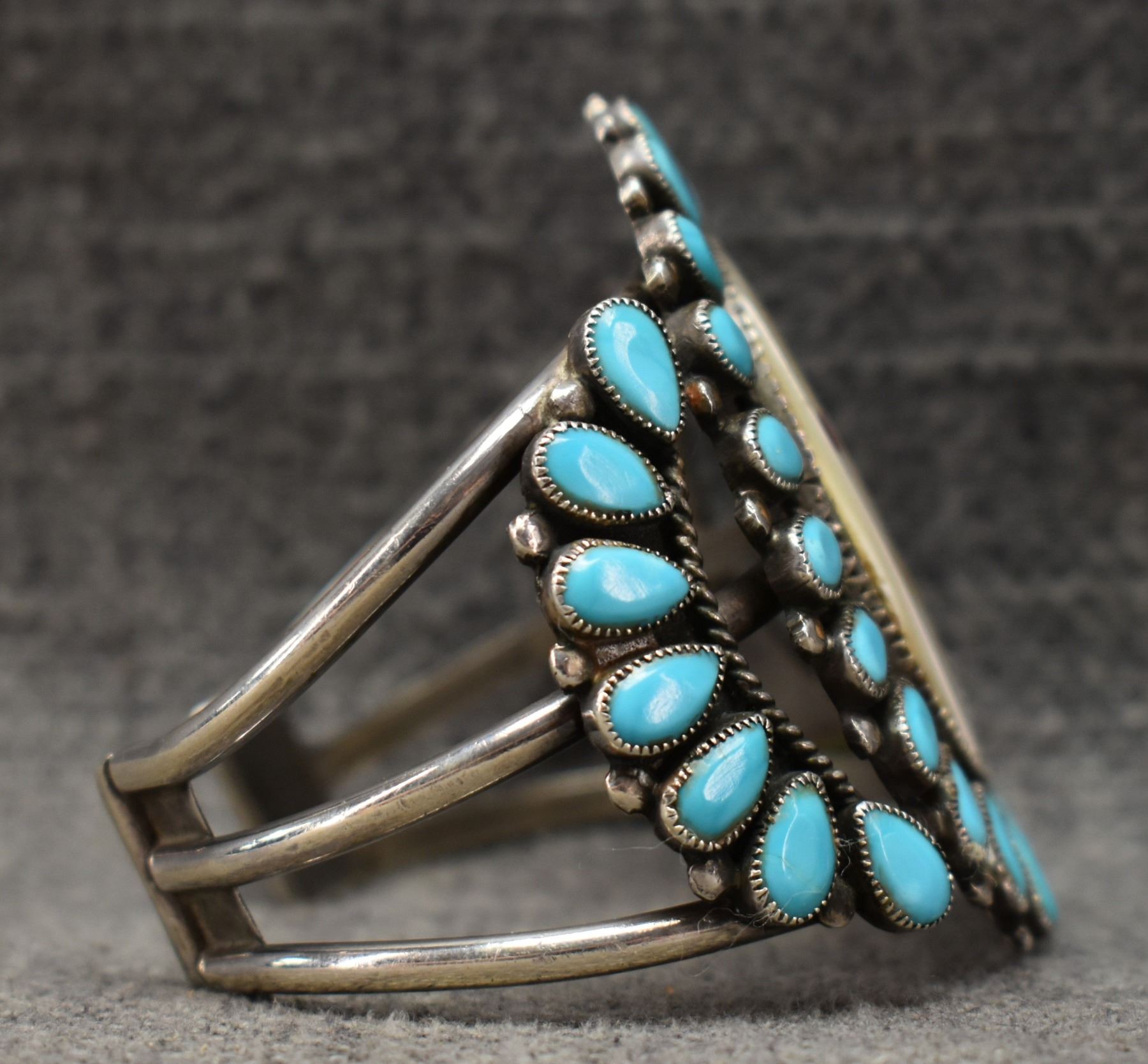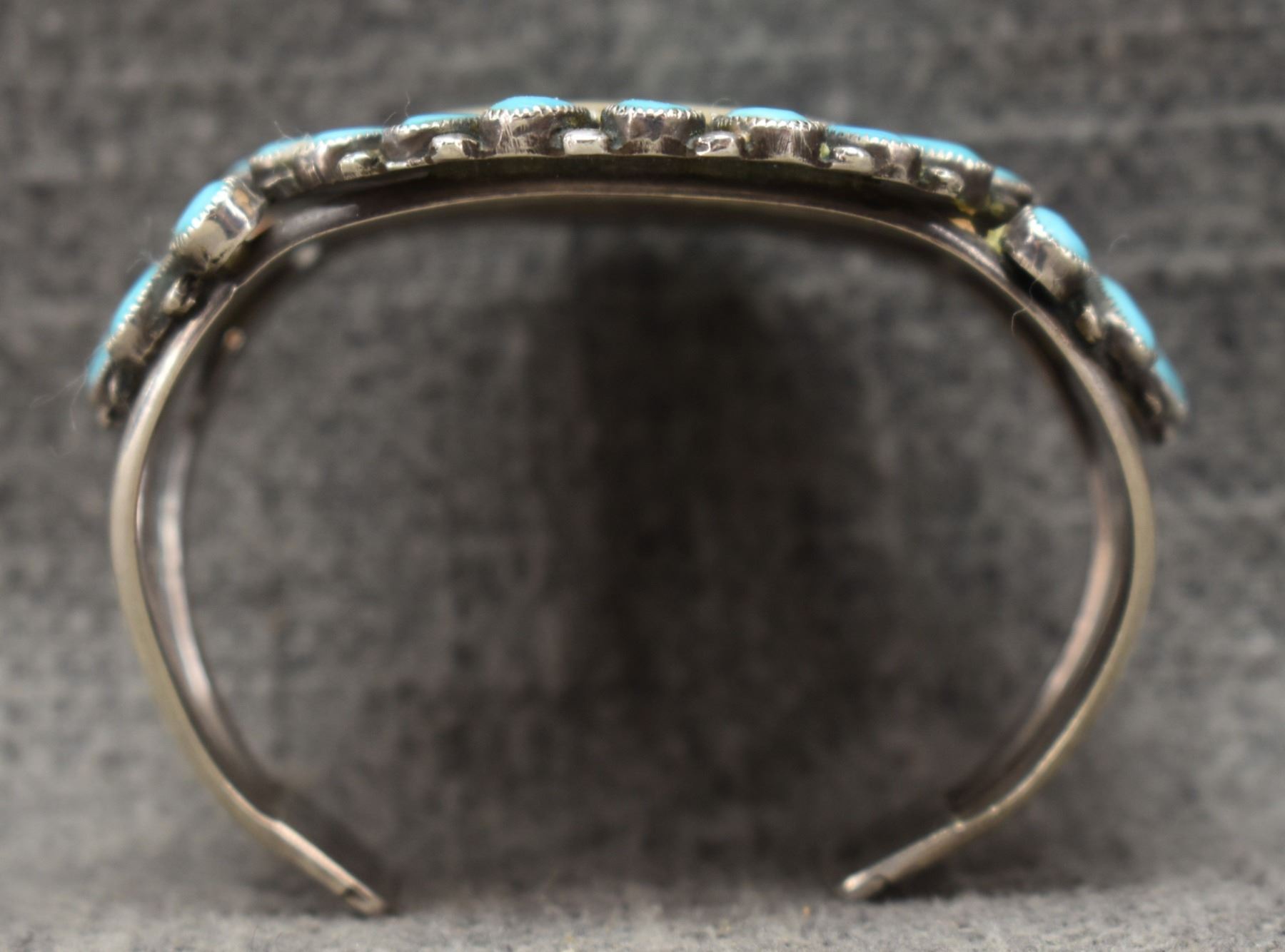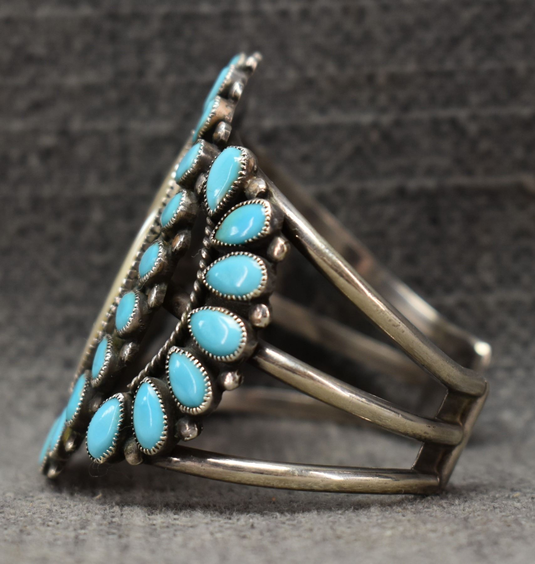 1970's Zuni. Sterling silver turquoise and shell bracelet 2.5'' x 5.5'' x 1''. signed .M.B. total weight 54 grams