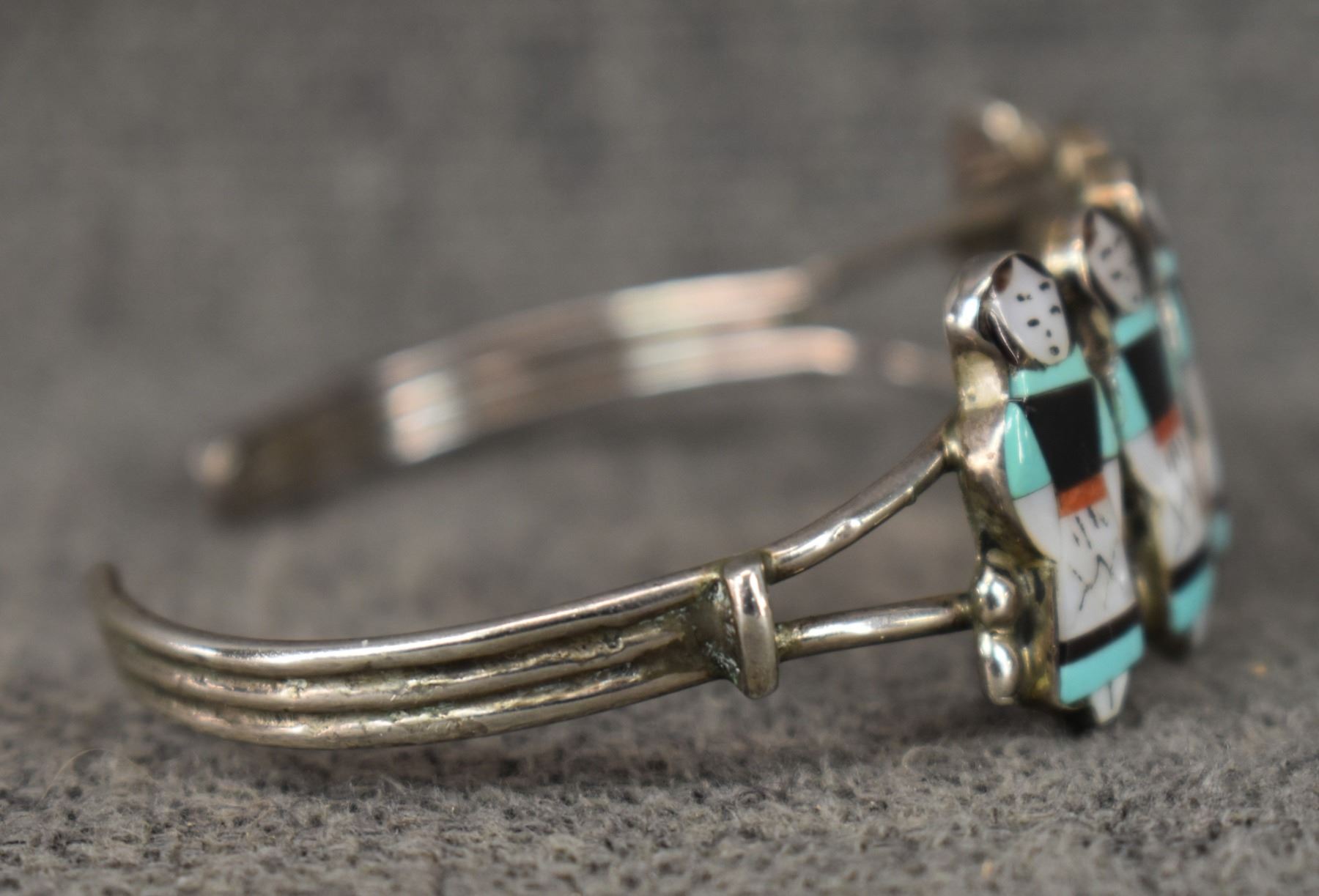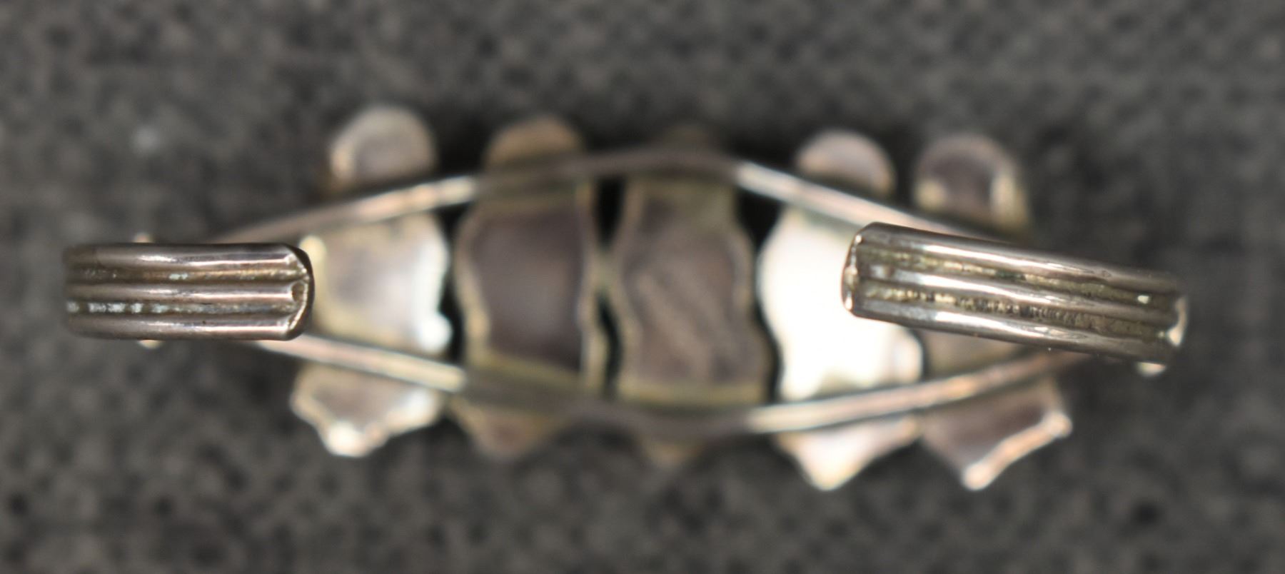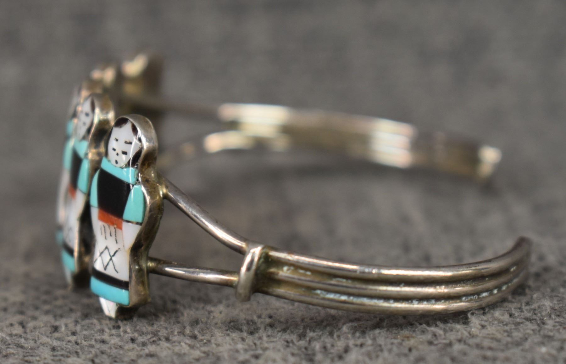 1970's Zuni sterling silver turquoise and shell bracelet signed Theresa Waseta. 1'' x 5'' x .75'' total weight 16 grams