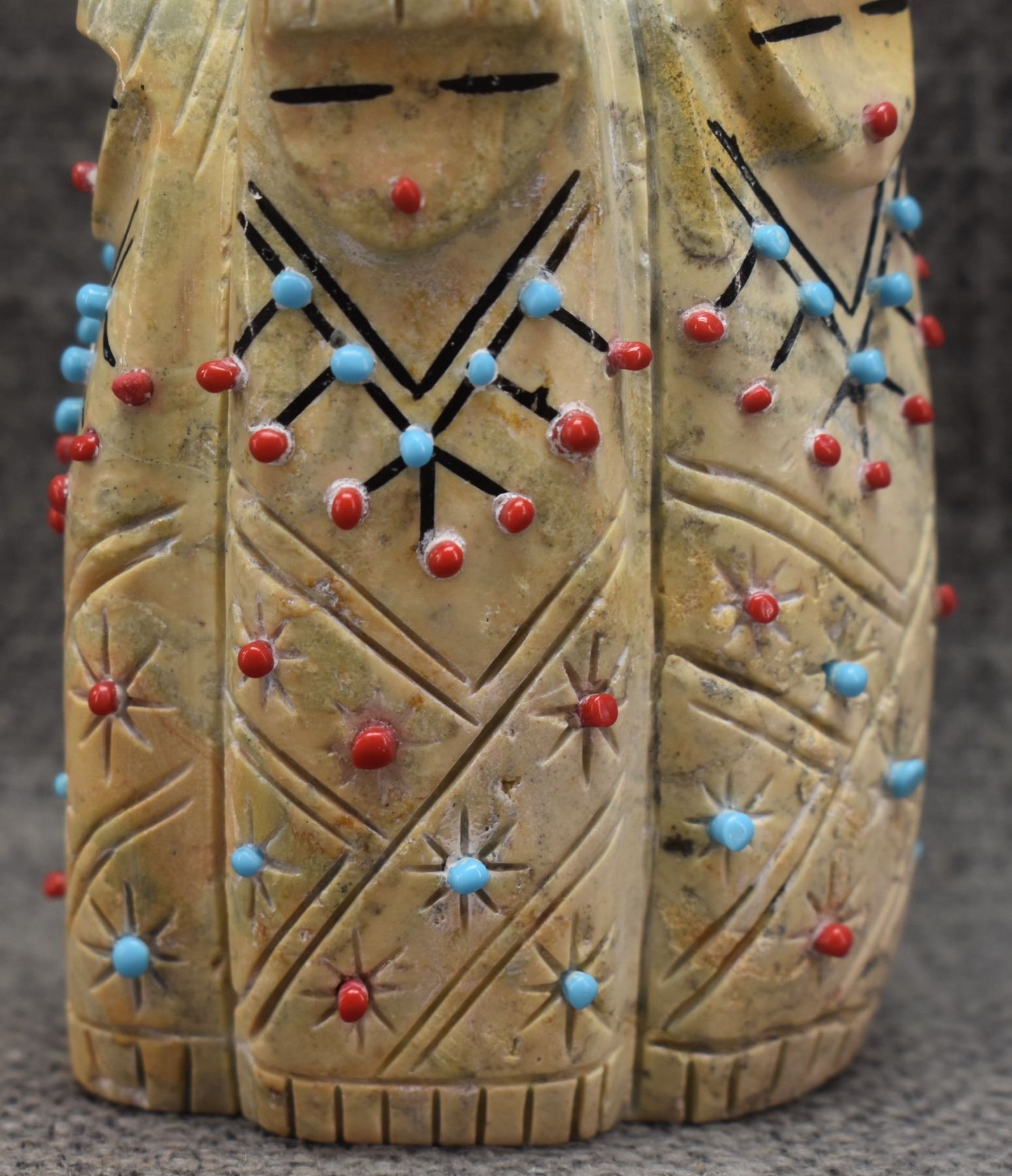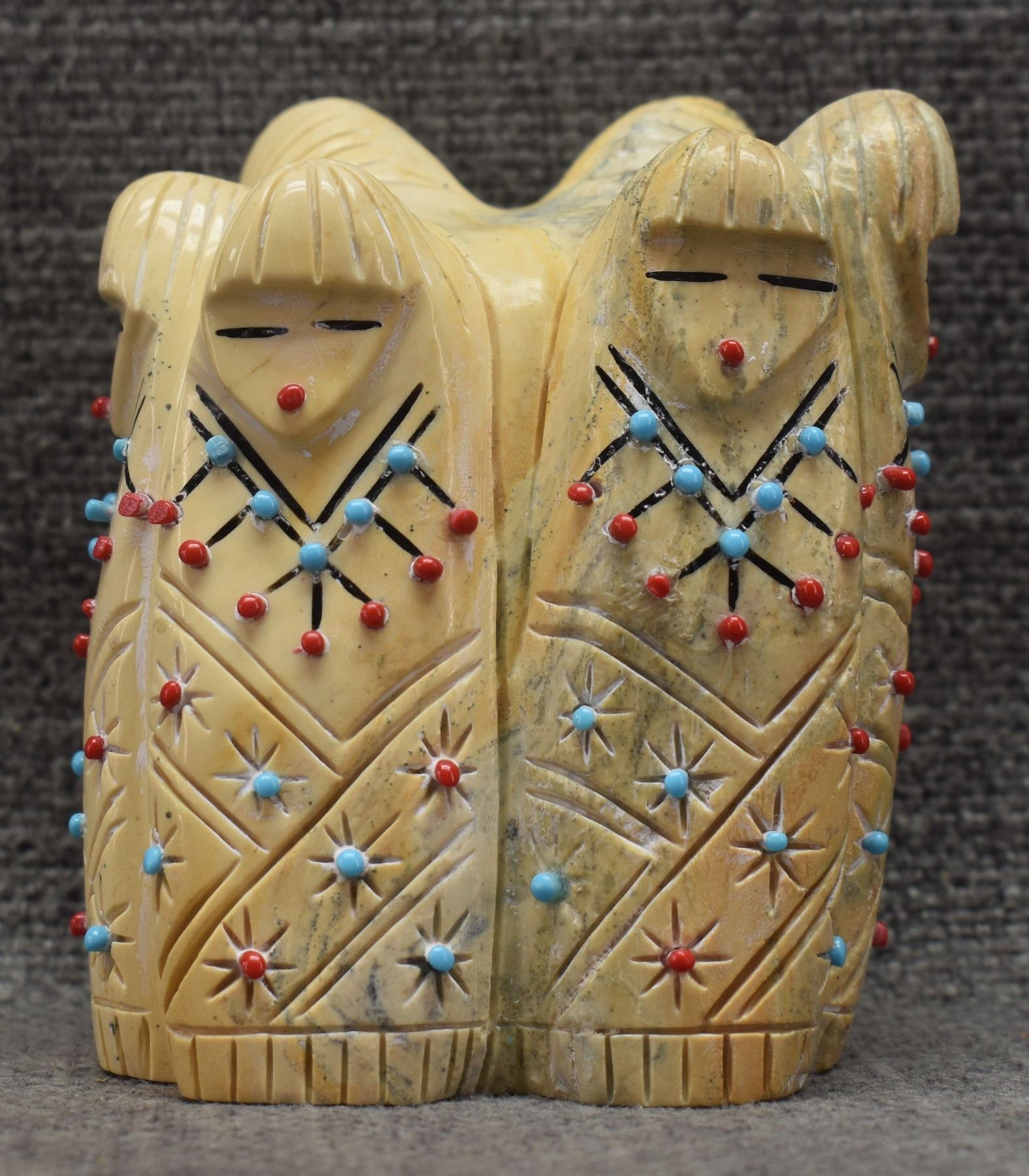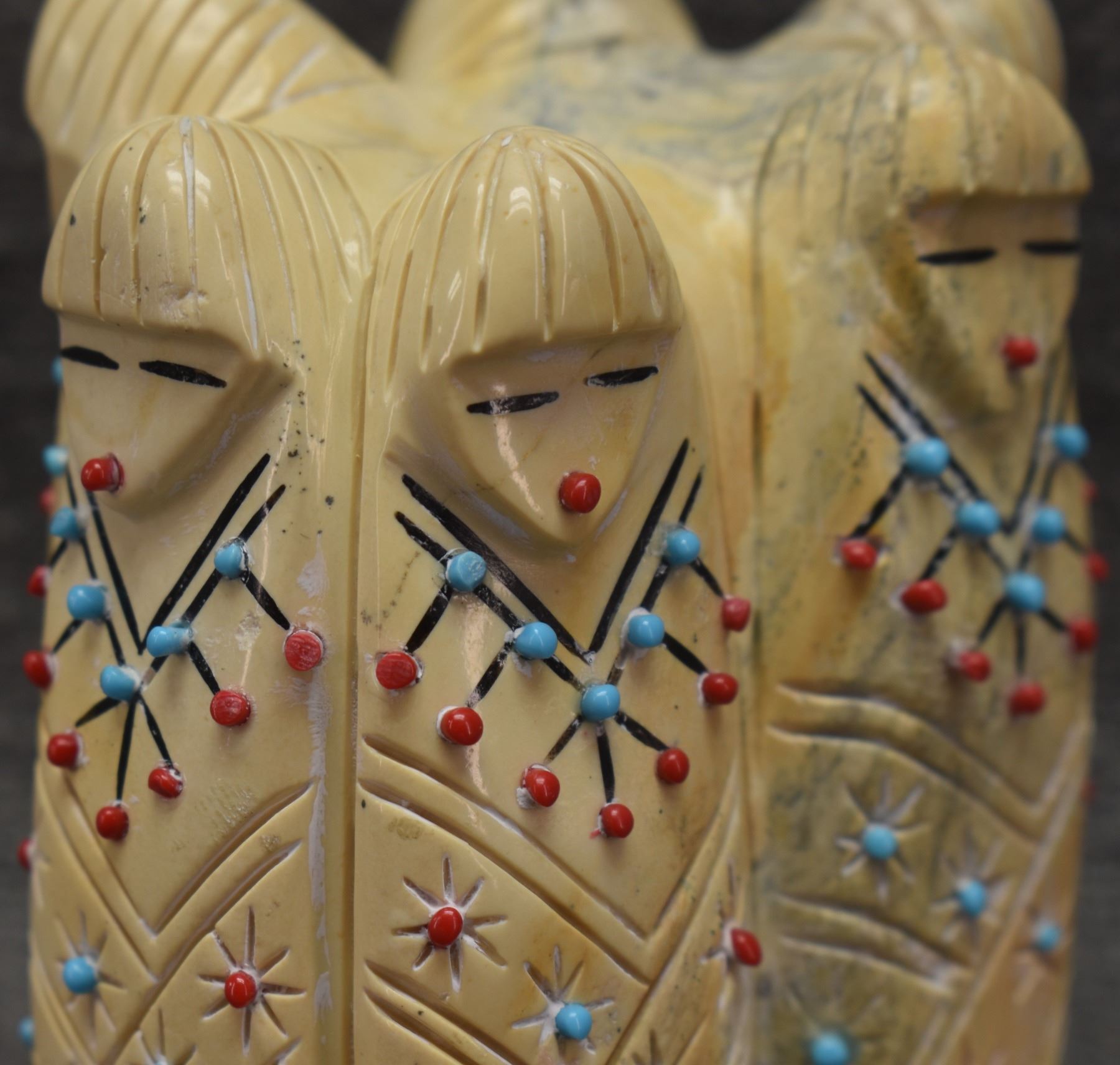 1990's Zuni hand carved stone depicting corn maidens, signed Terrence & Jessica Matza. 3'' x 2.75'' x 2''