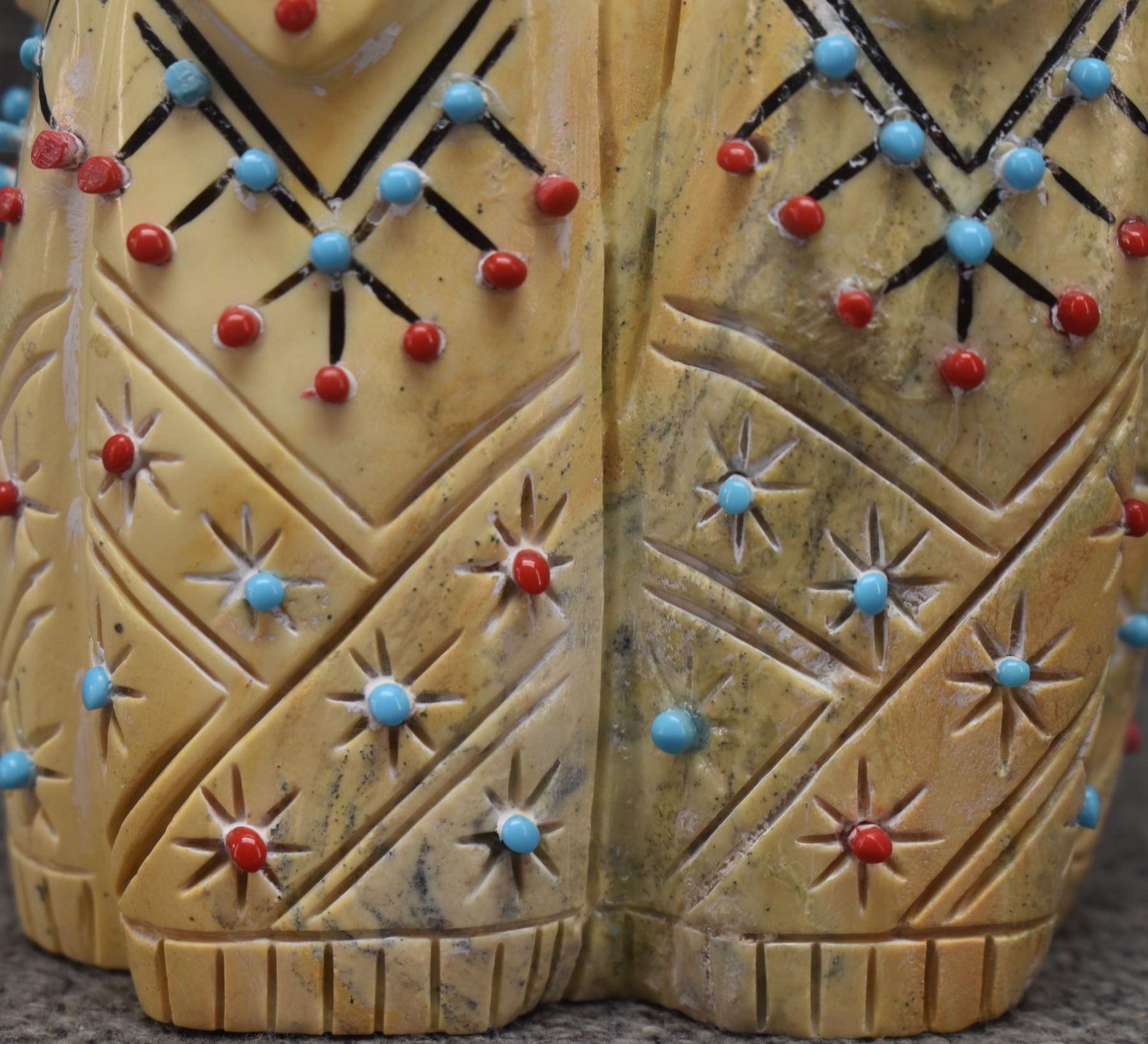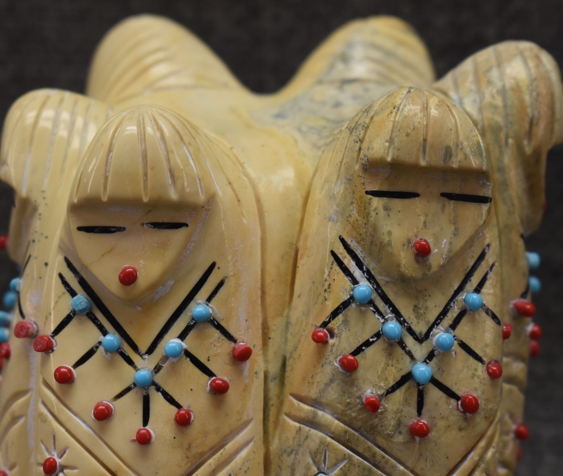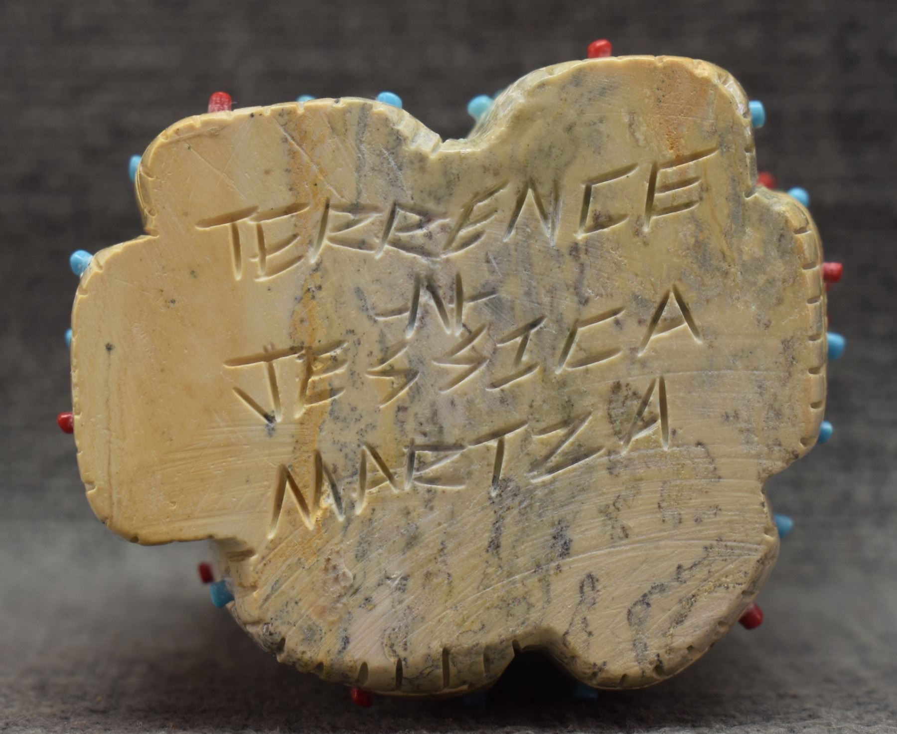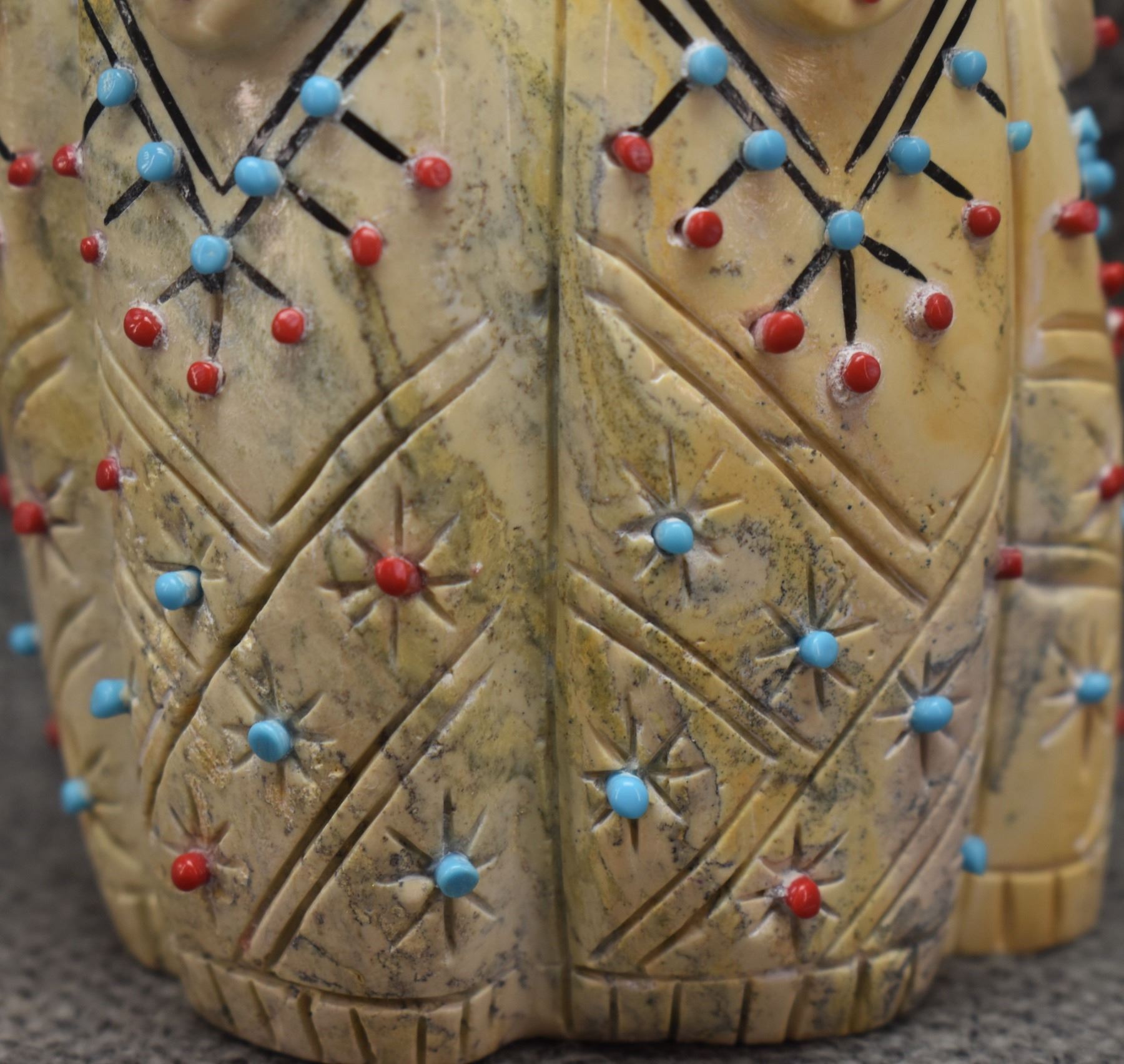 1990's Zuni hand carved stone depicting corn maidens, signed Terrence & Jessica Matza. 3'' x 2.75'' x 2''