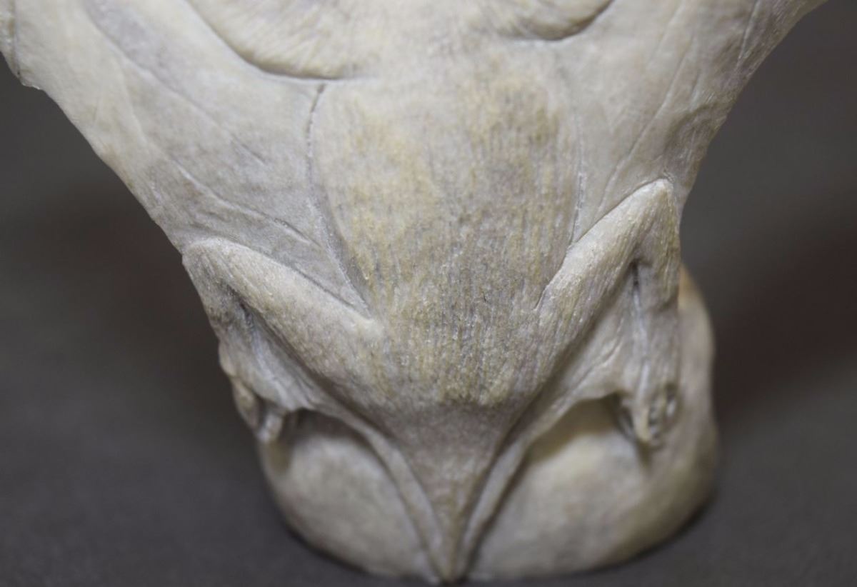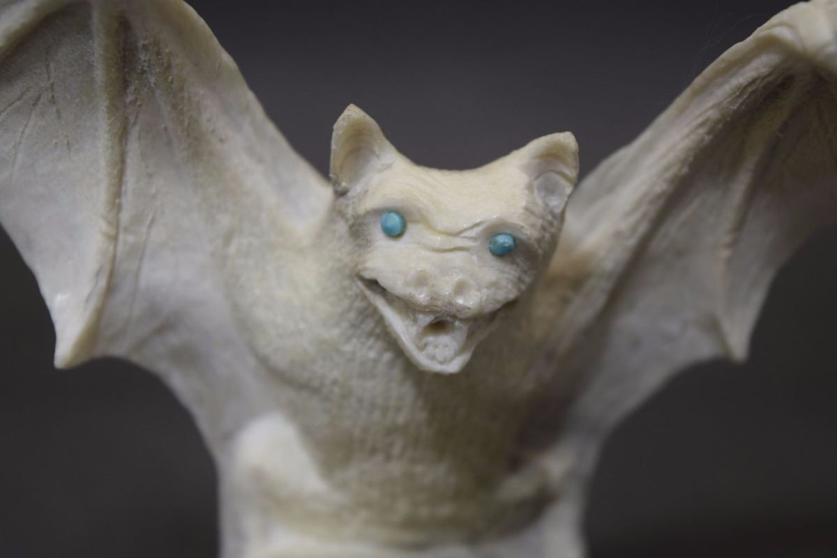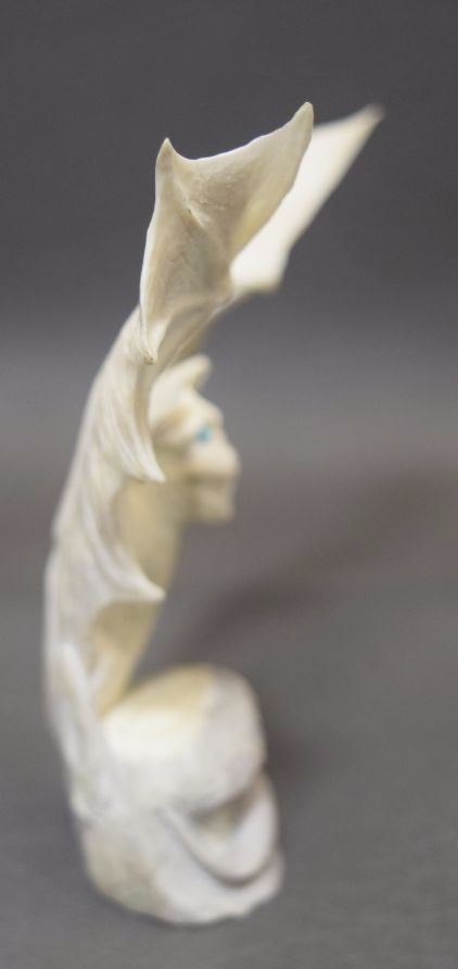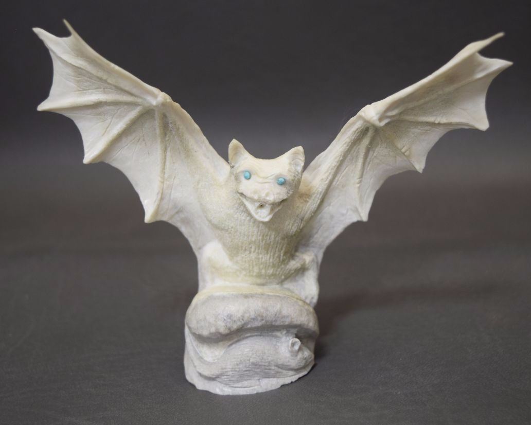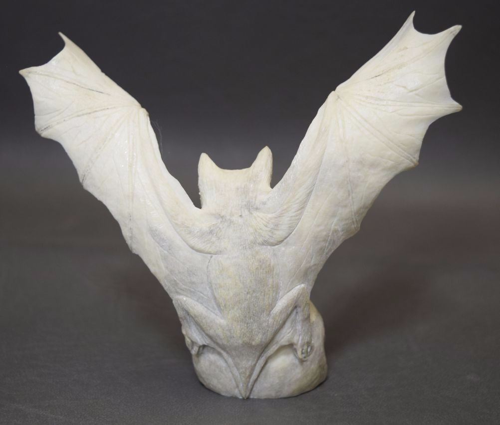 1990's hand carved from antler depicting bat signed Max. 5'' x 5''