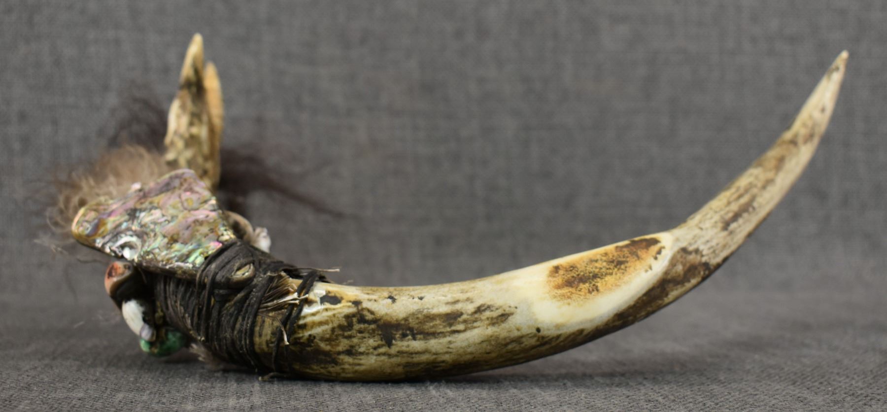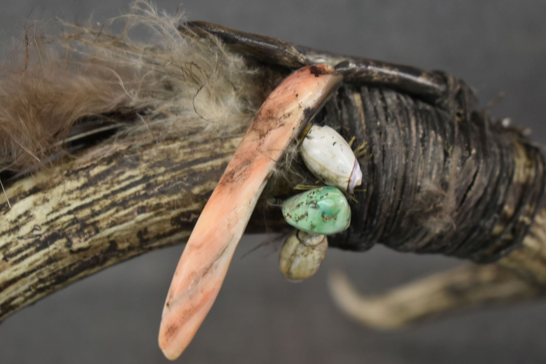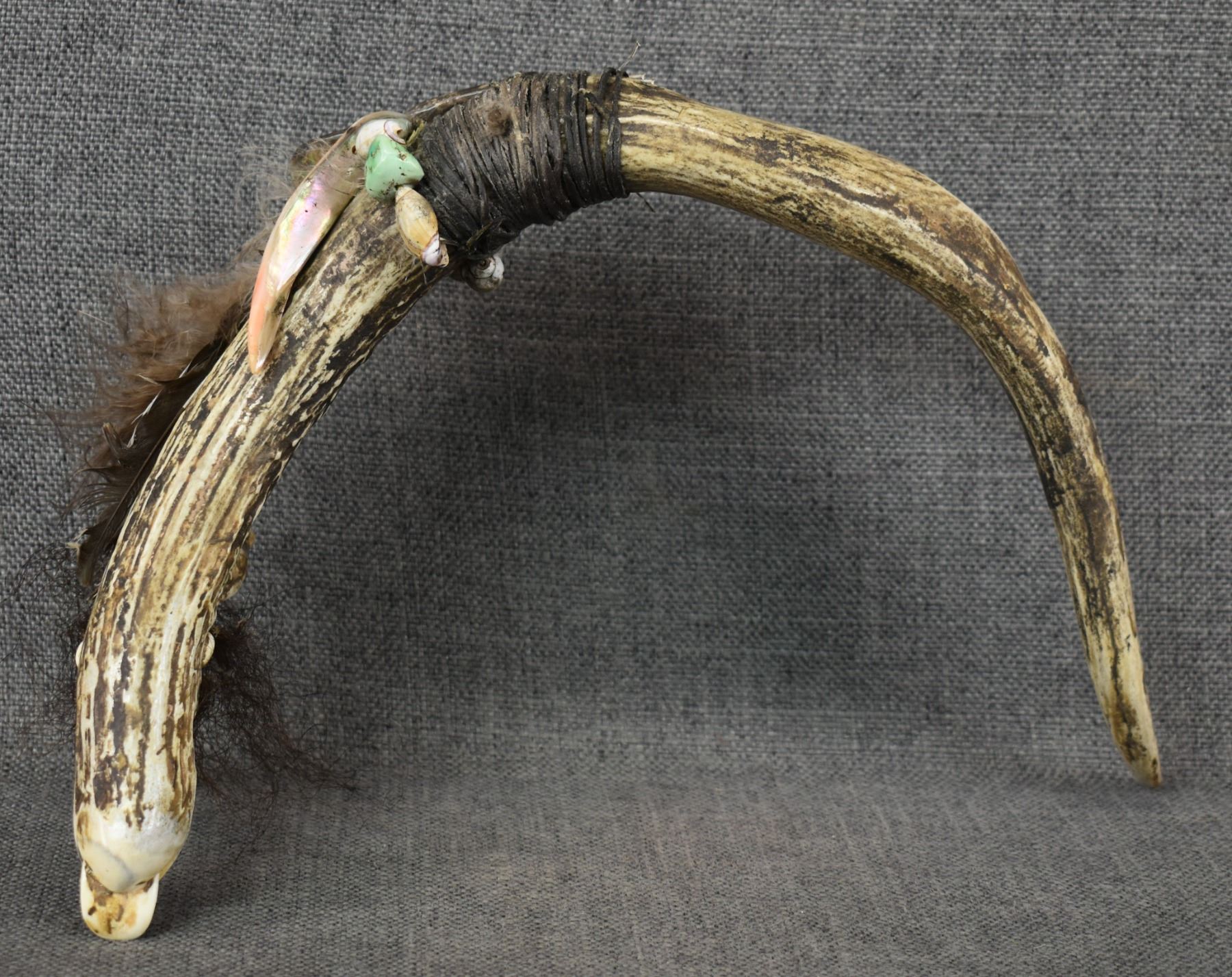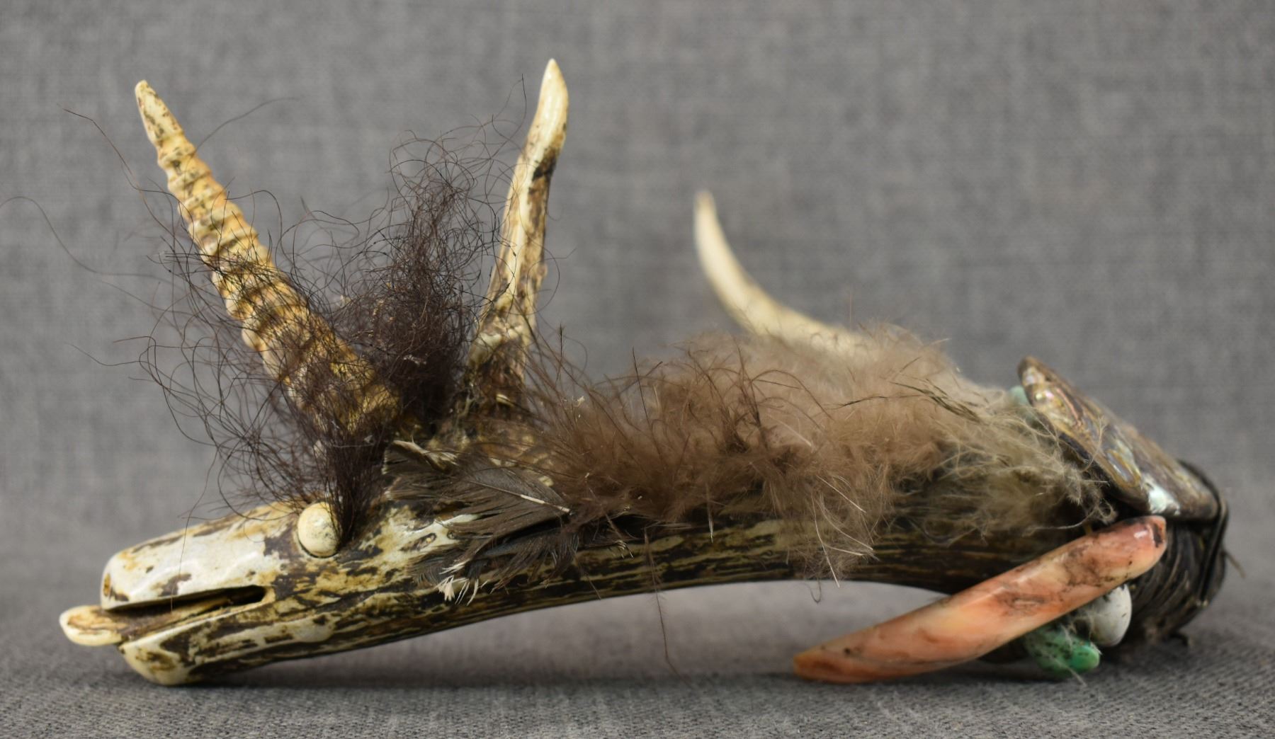 1950's/60's Zuni antler fetish with shell and turquoise bundle. 5" x 11" x 8"