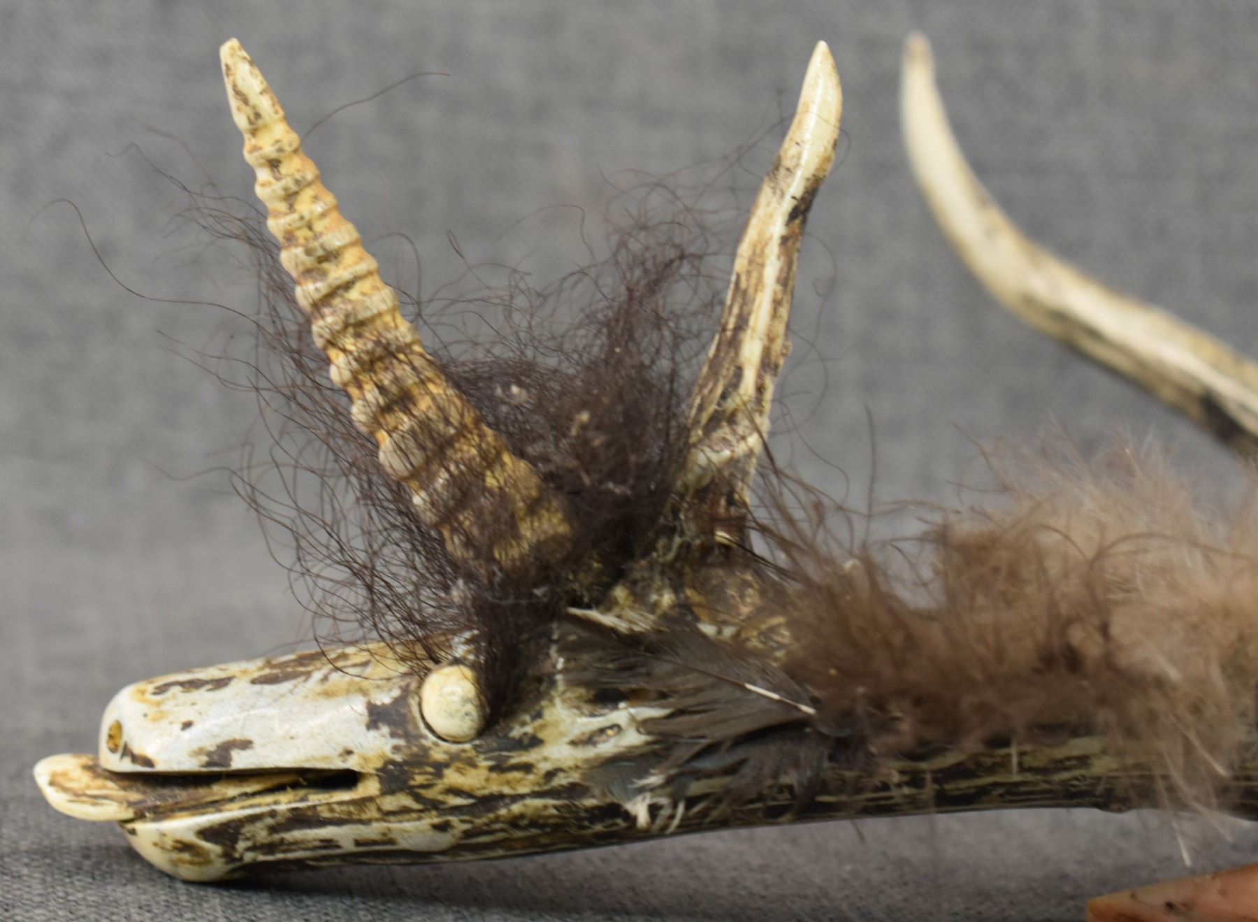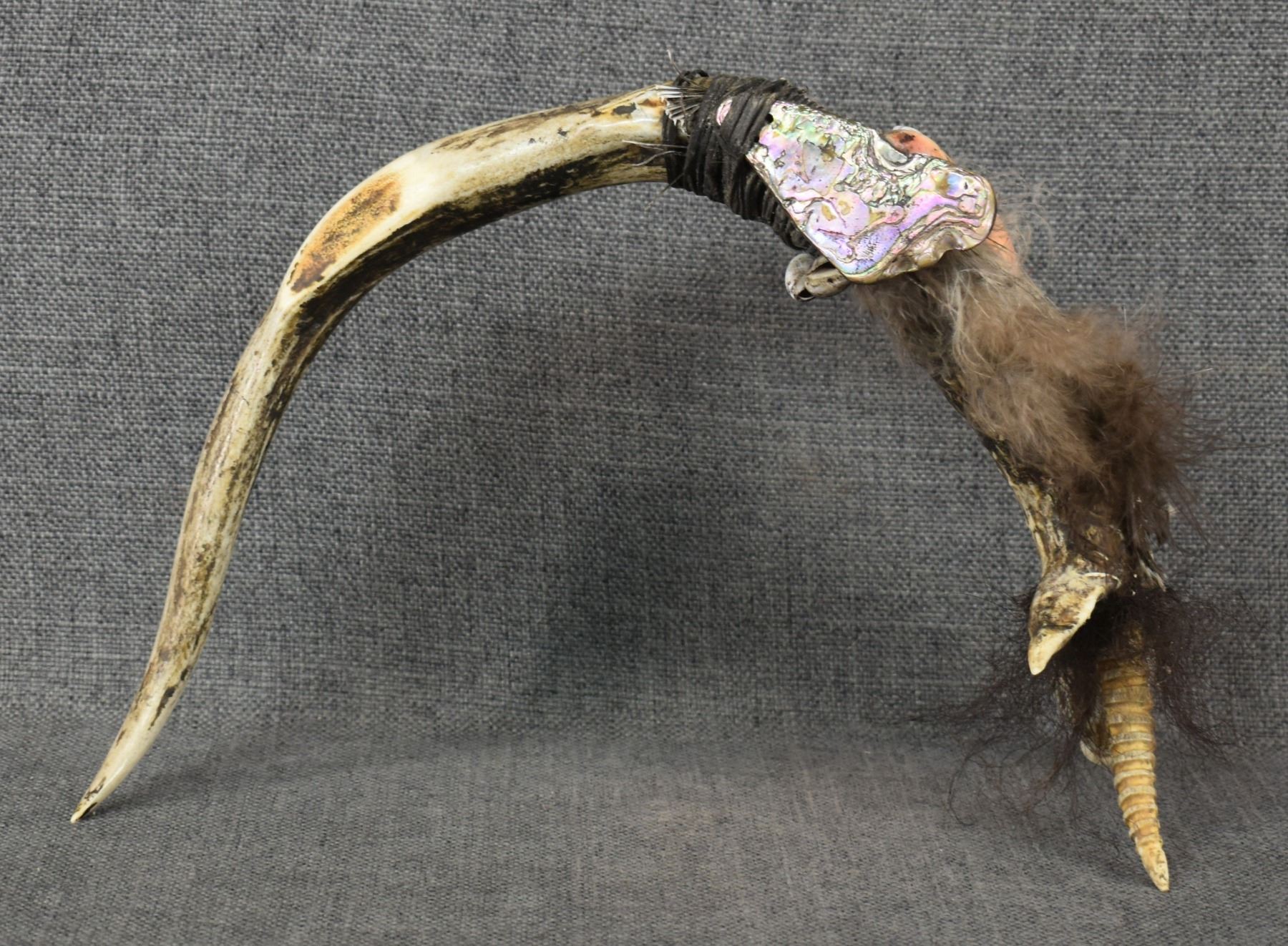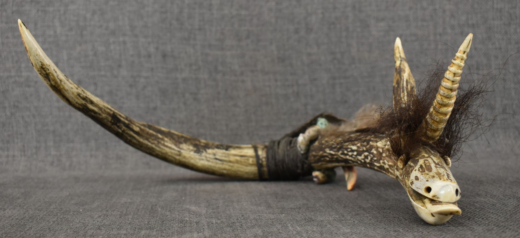 1950's/60's Zuni antler fetish with shell and turquoise bundle. 5" x 11" x 8"