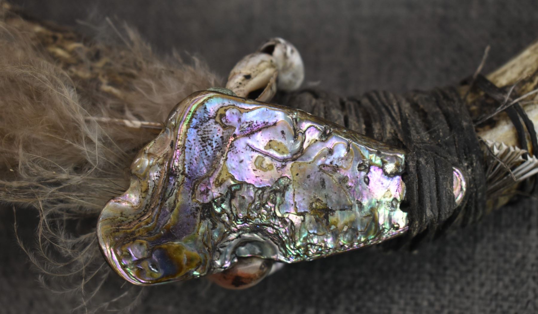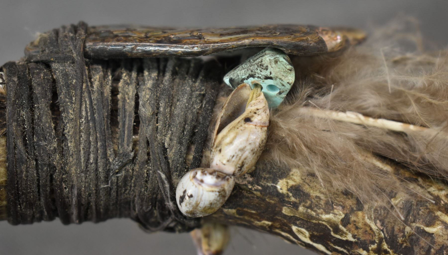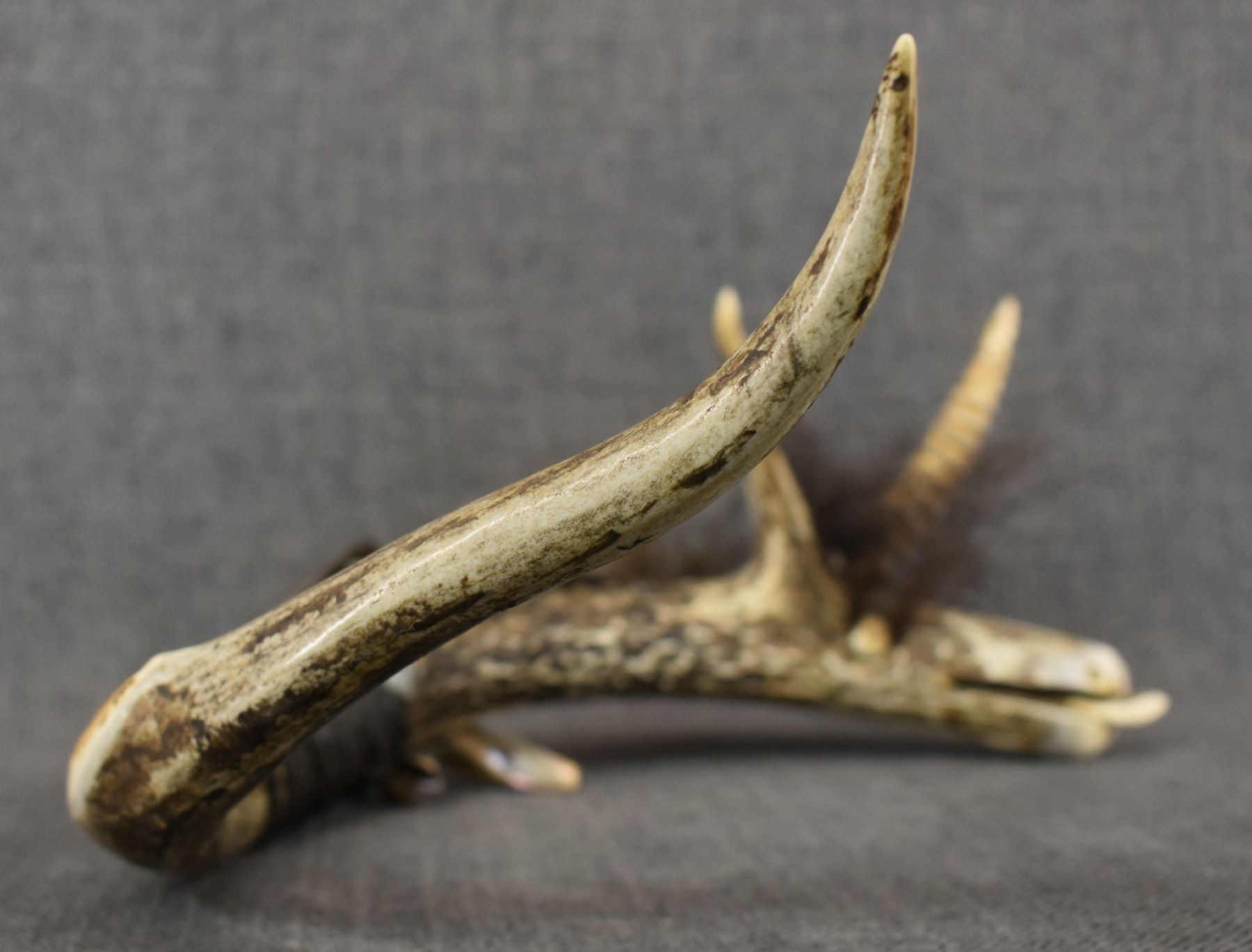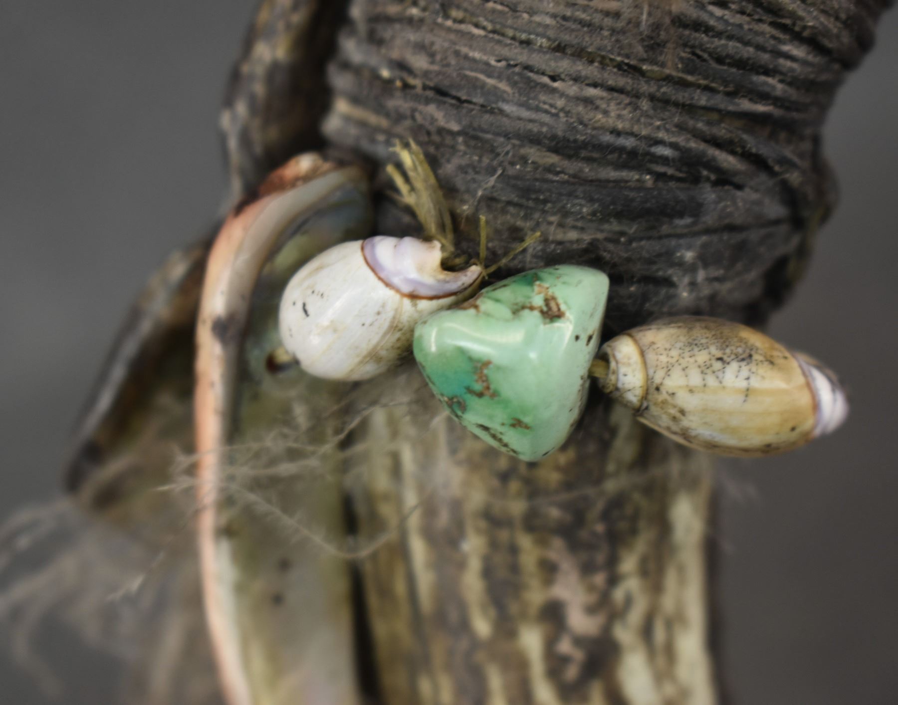 1950's/60's Zuni antler fetish with shell and turquoise bundle. 5" x 11" x 8"