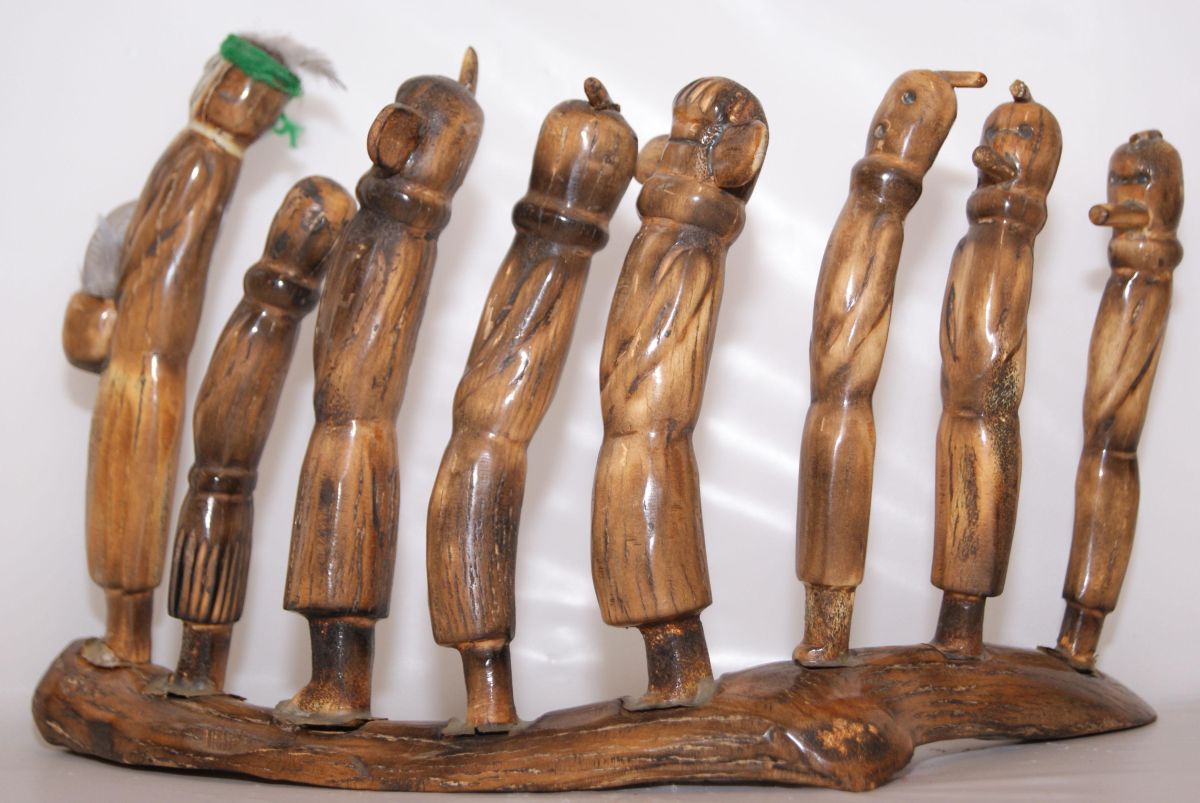 1960'S kachina procession,by Jimmie Boone figures glued, 7" x 10"