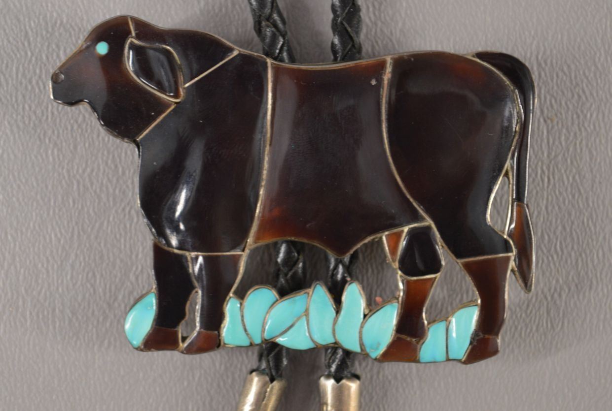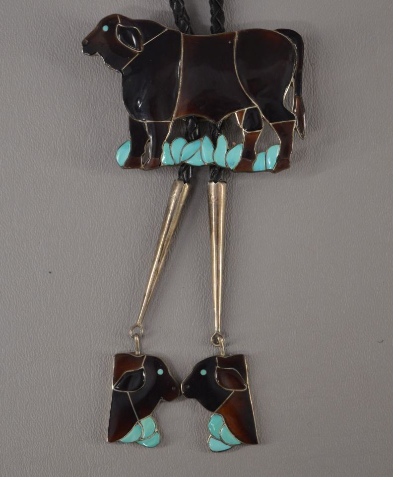 1970's Zuni Indian , turquoise and shell set in sterling silver depicting Bull, signed J Mahkee. 2'' x 3'' total weight 50 grams