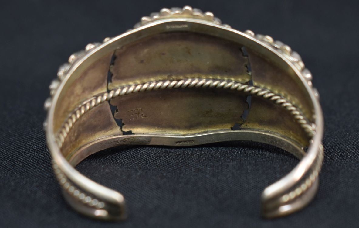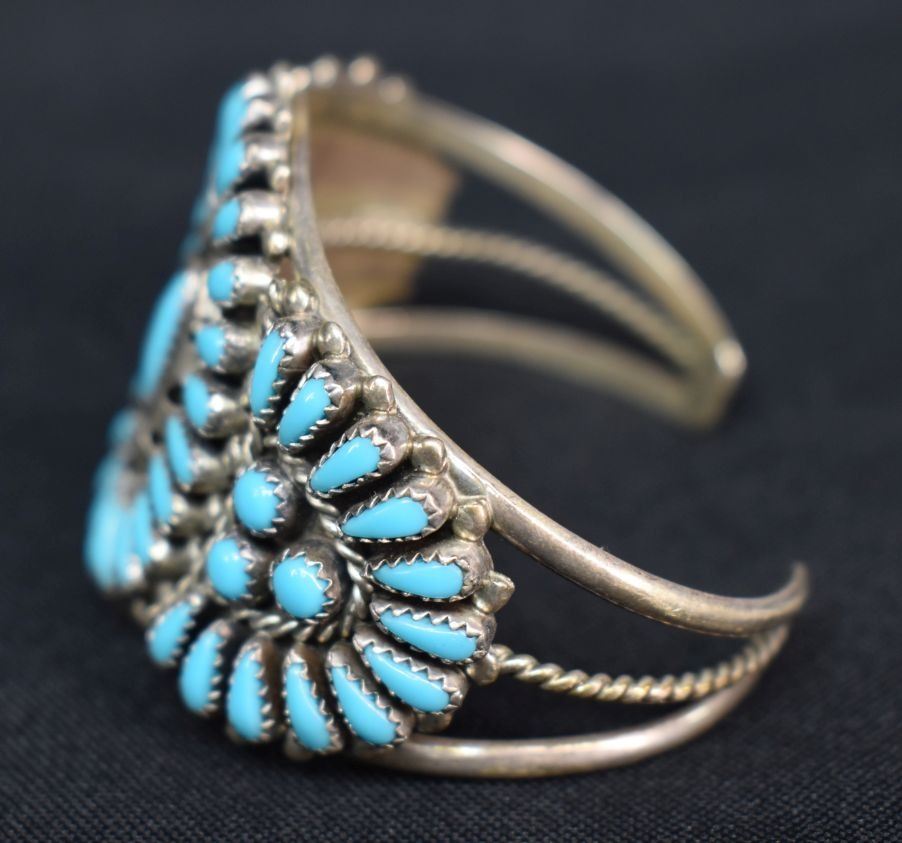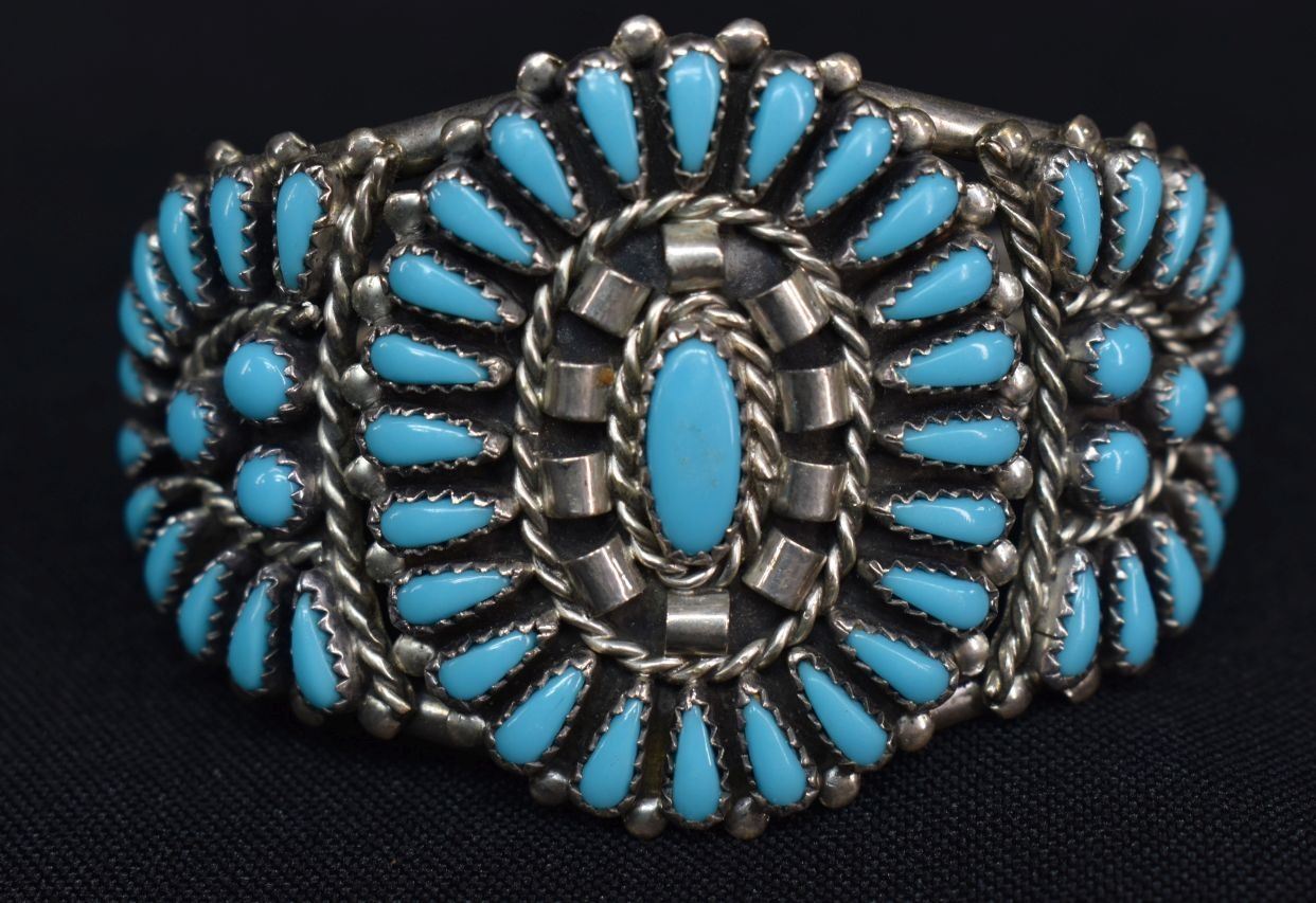 1970's Zuni Indian. Sterling silver and turquoise bracelet 1.75'' x 5.25'' x 1.25''. Total weight 42 grams