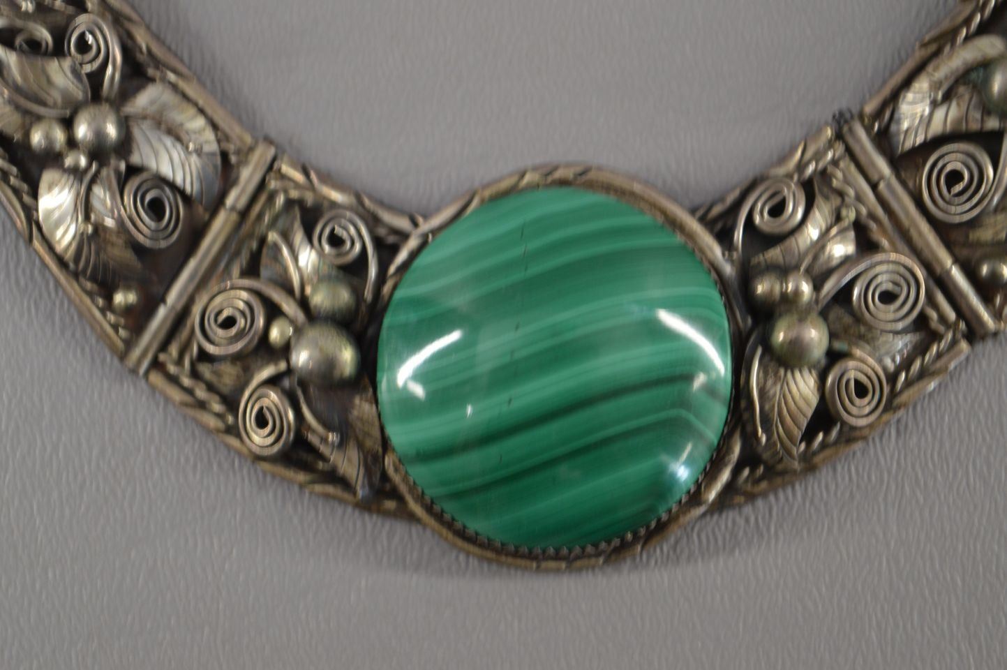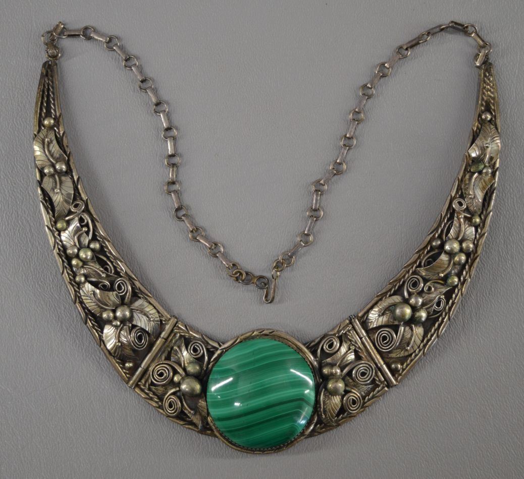 1980's Zuni Indian. Sterling and Malachite necklace 22'' long, signed CPH. Total weight 96 grams