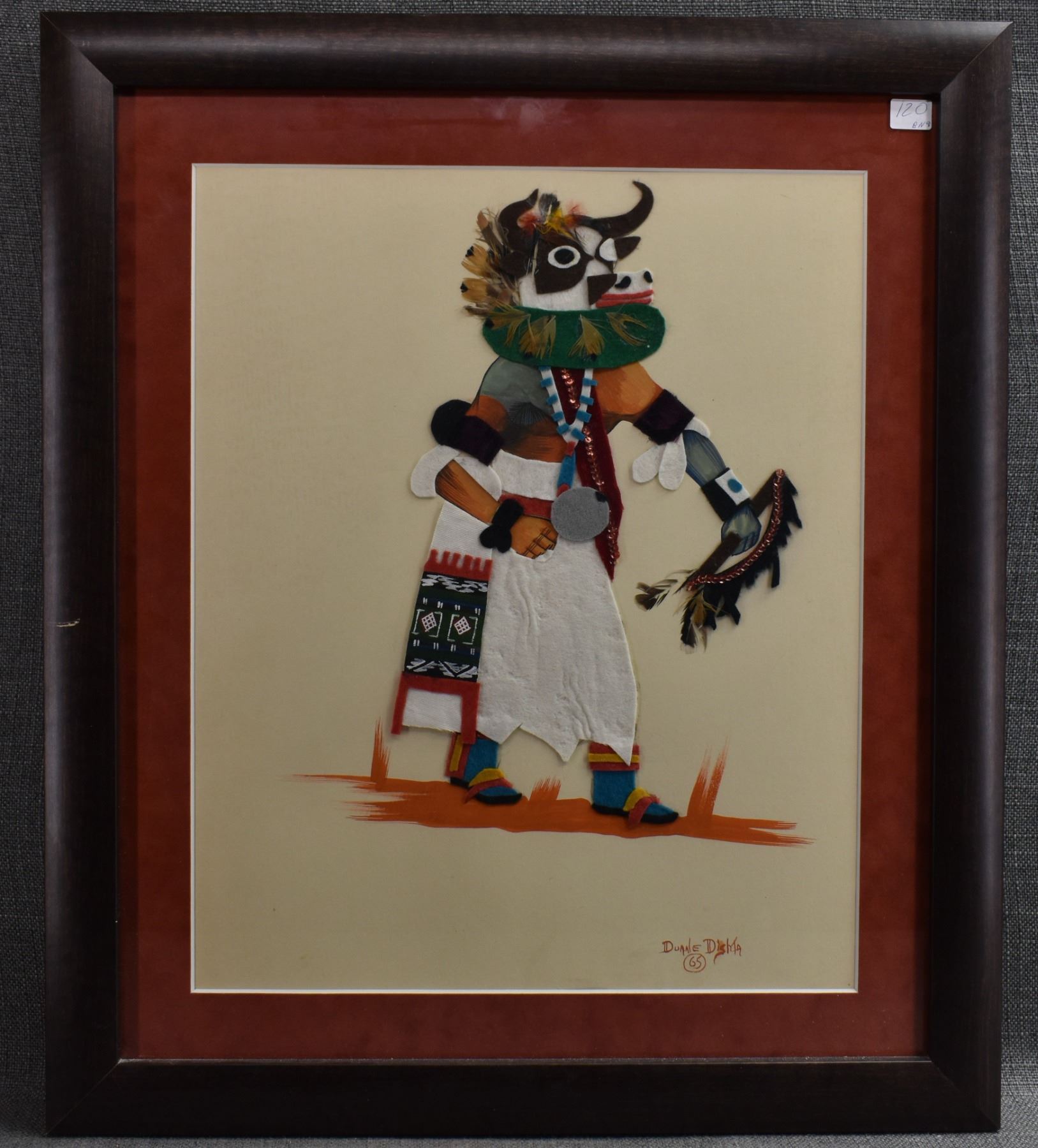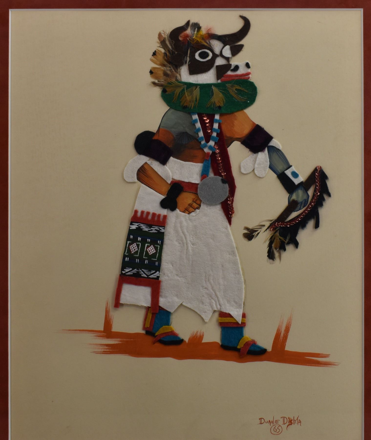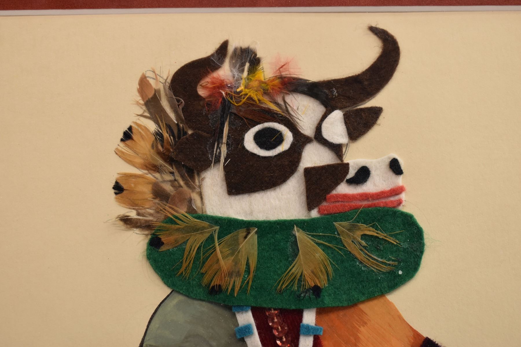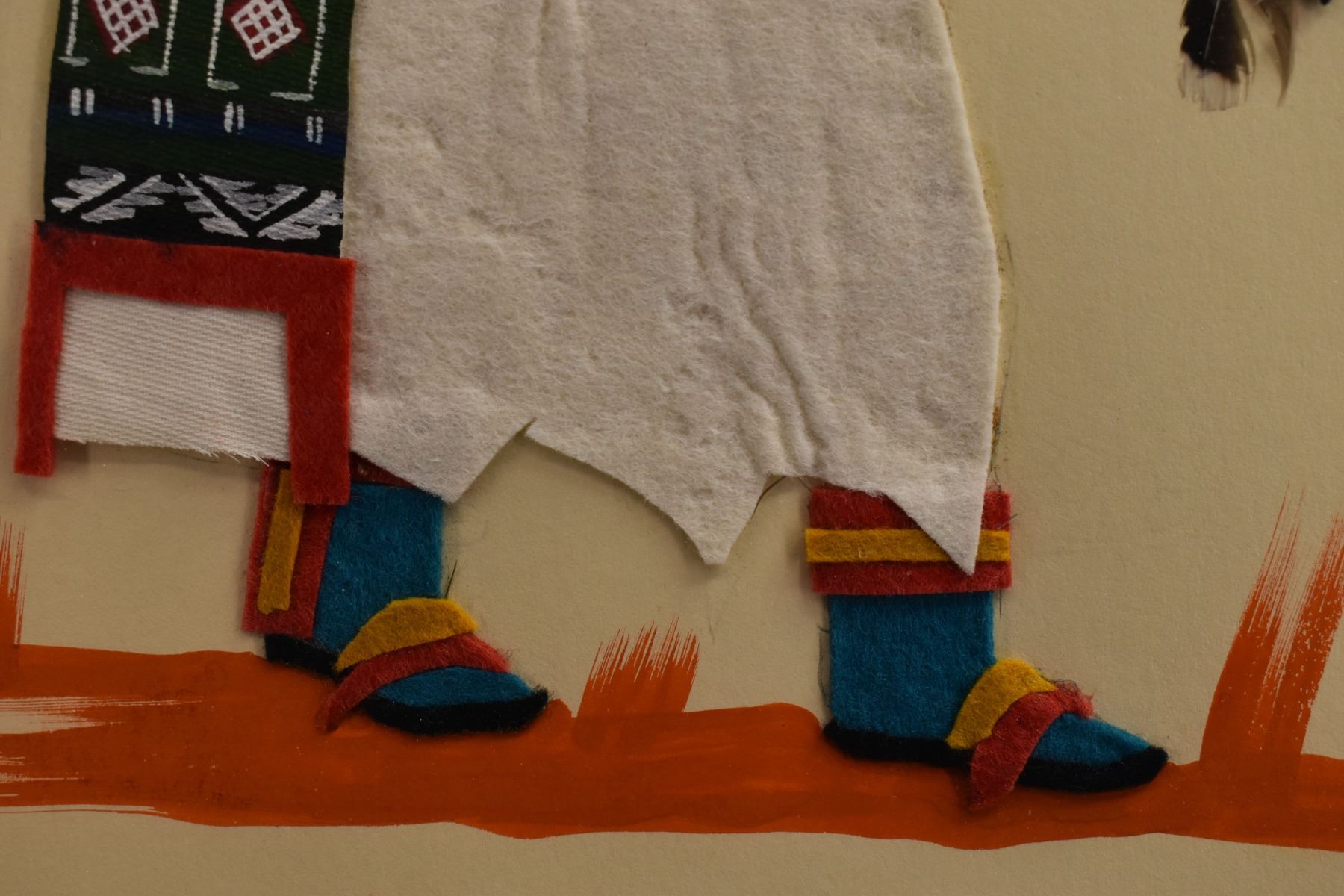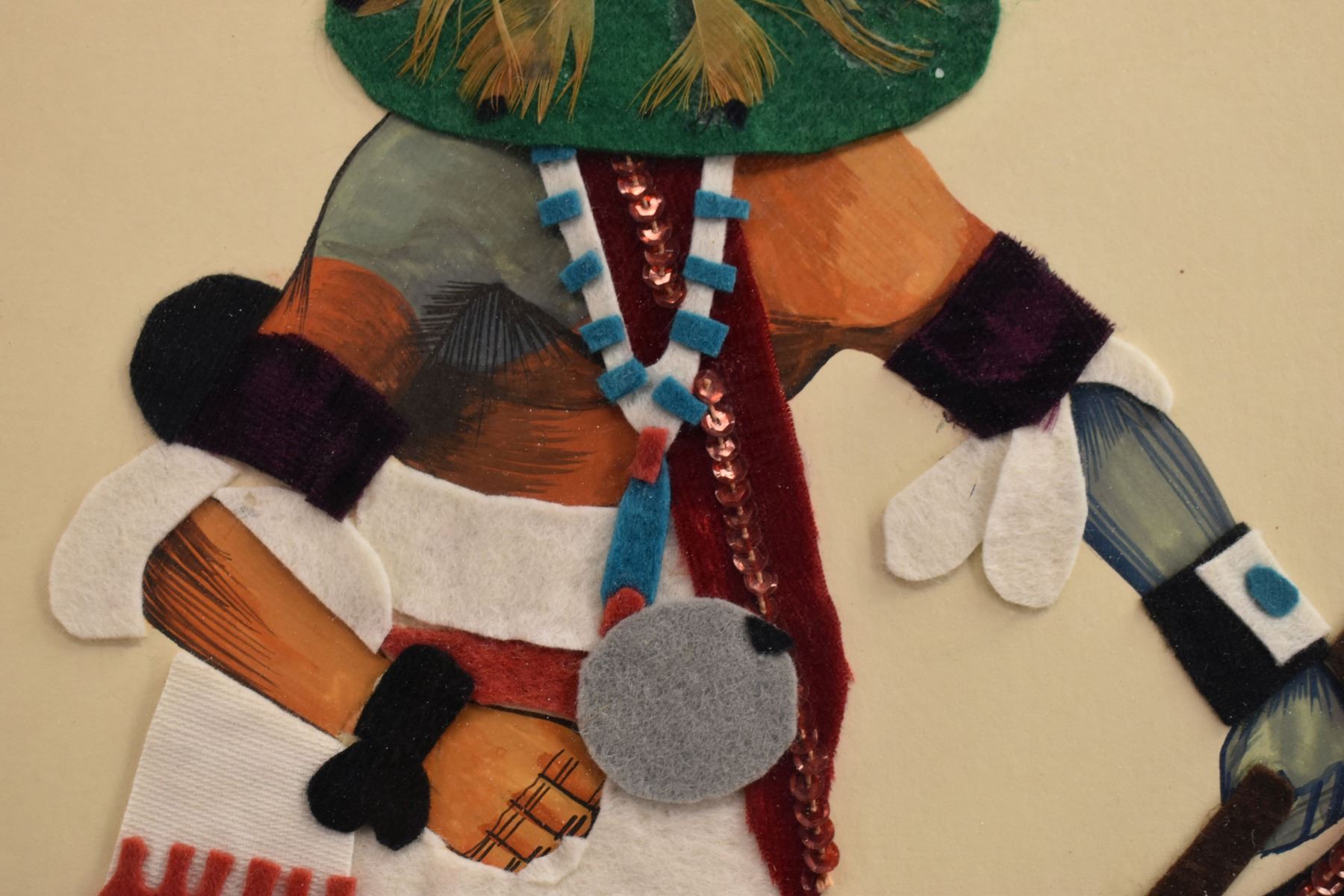 1965. Zuni. Original on paper mixed media of water color felt and feathers. 17'' x 14'' frame size 23'' x 20''