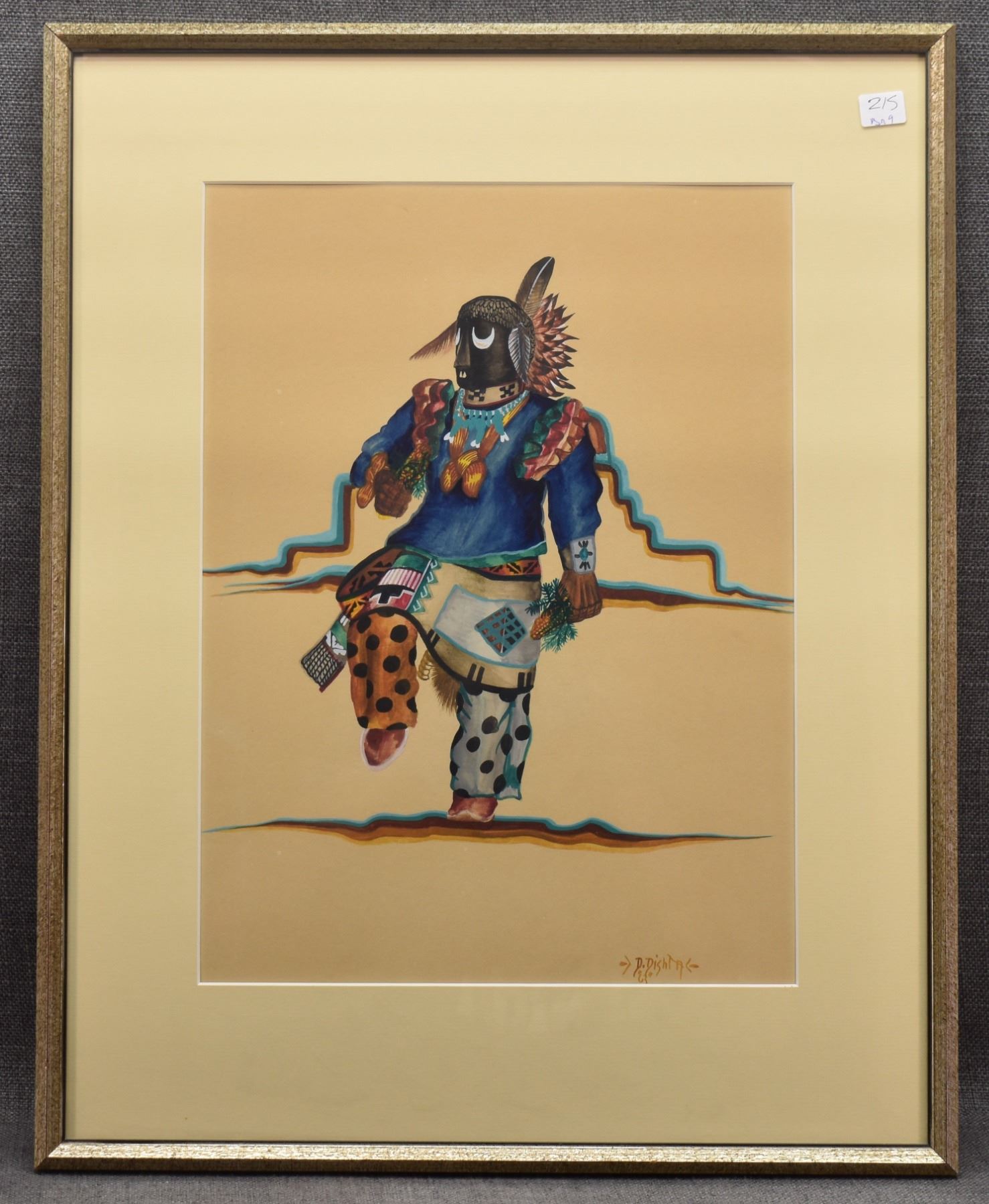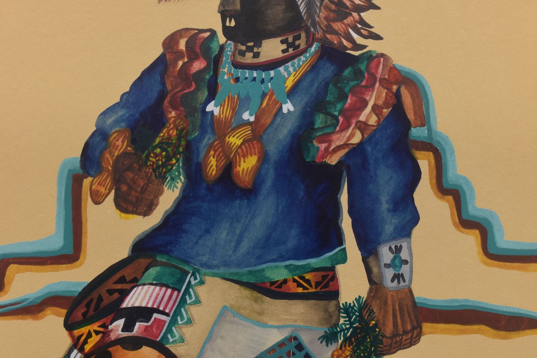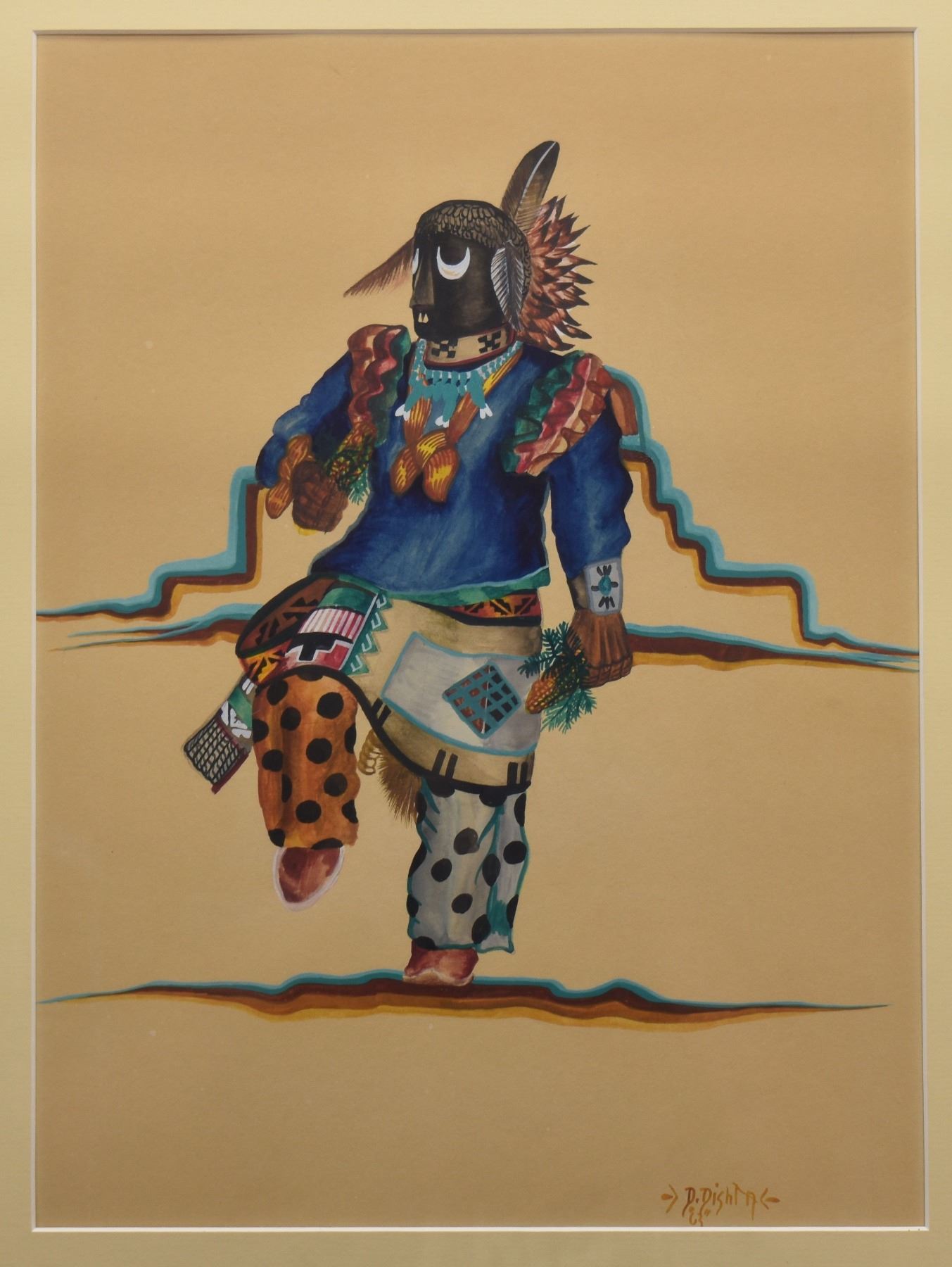 1963 Zuni. Original on paper depicting dancers Signed Duane Dishta. 15'' x 11'' frame size 22'' x 18''