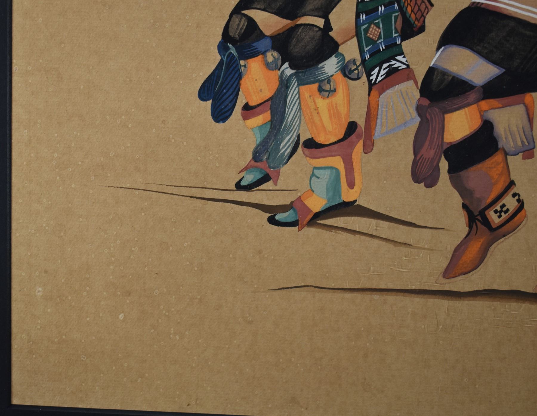1965 Zuni. Original on paper depicting Zuni corn dancers. Signed Duane Dishta. 17'' x 13'' frame size 20'' x 16''