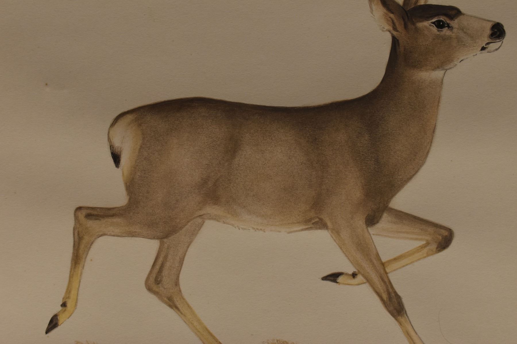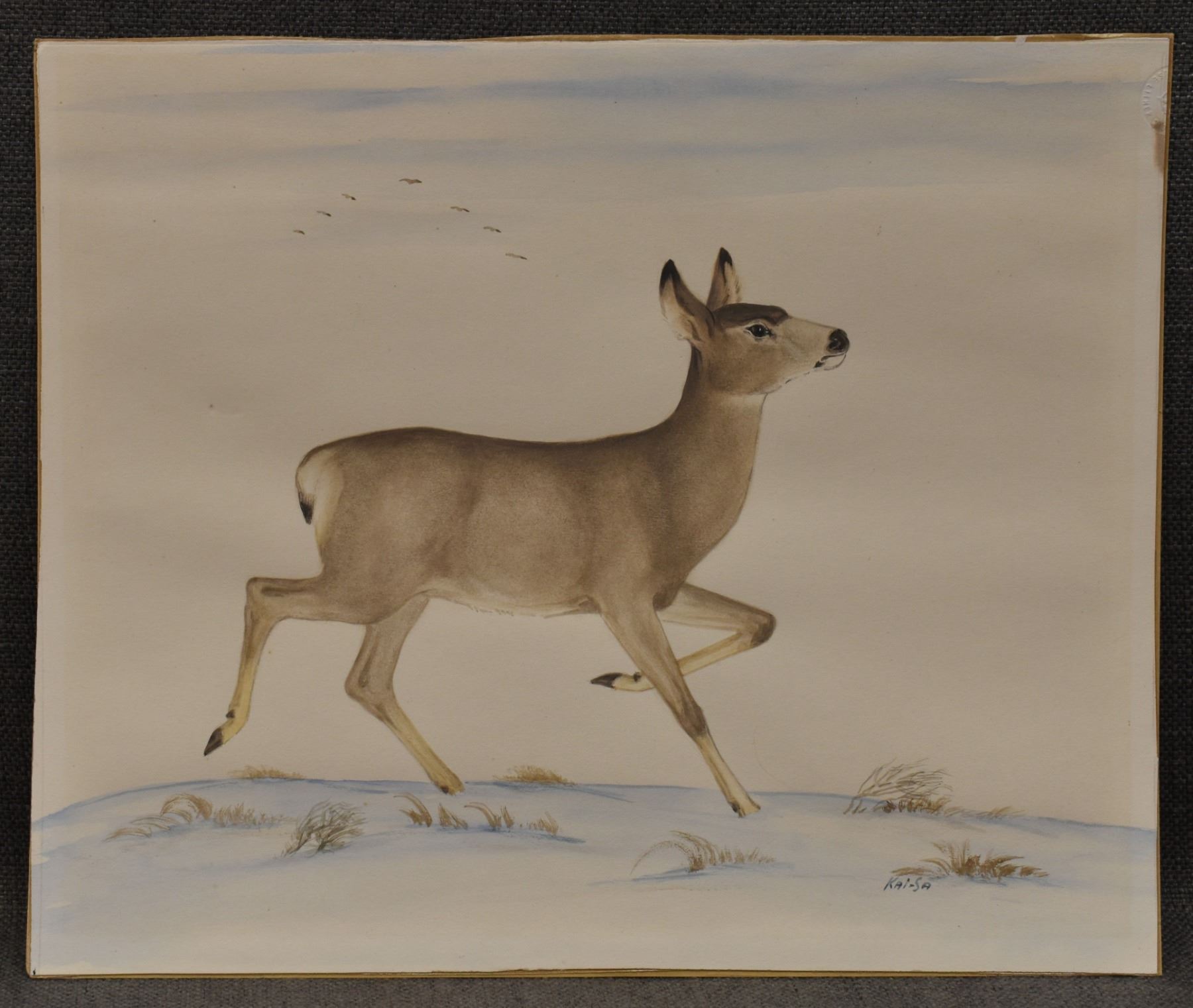 1960's original on paper depicting mule deer signed Kai-Sa 11'' x 14''