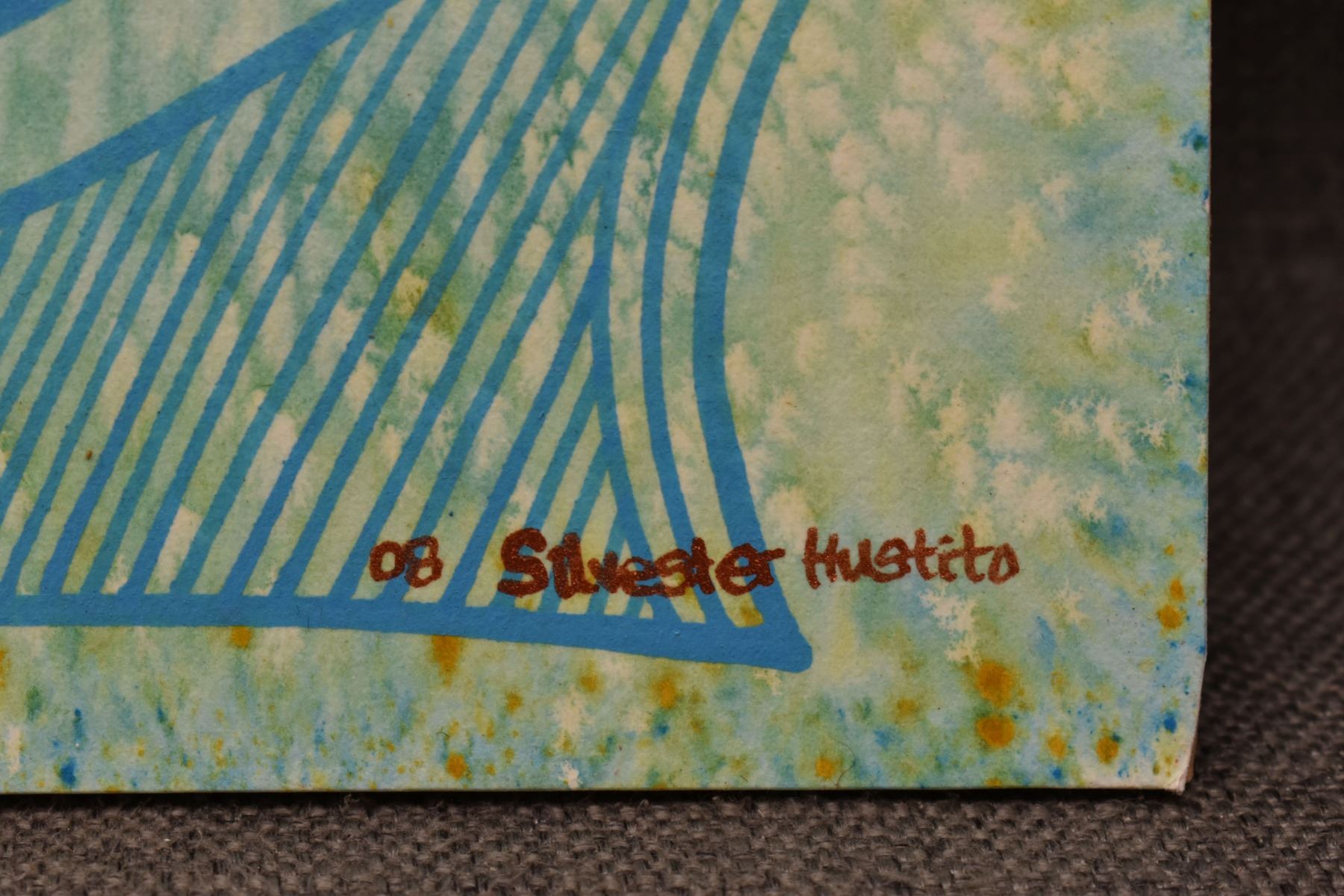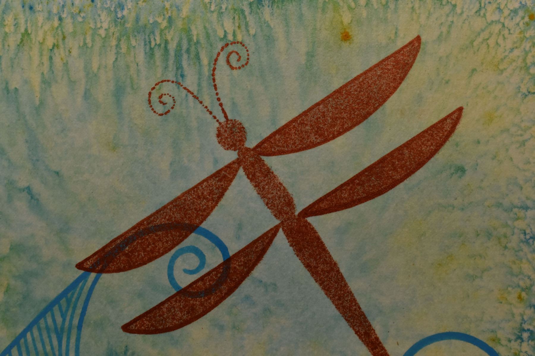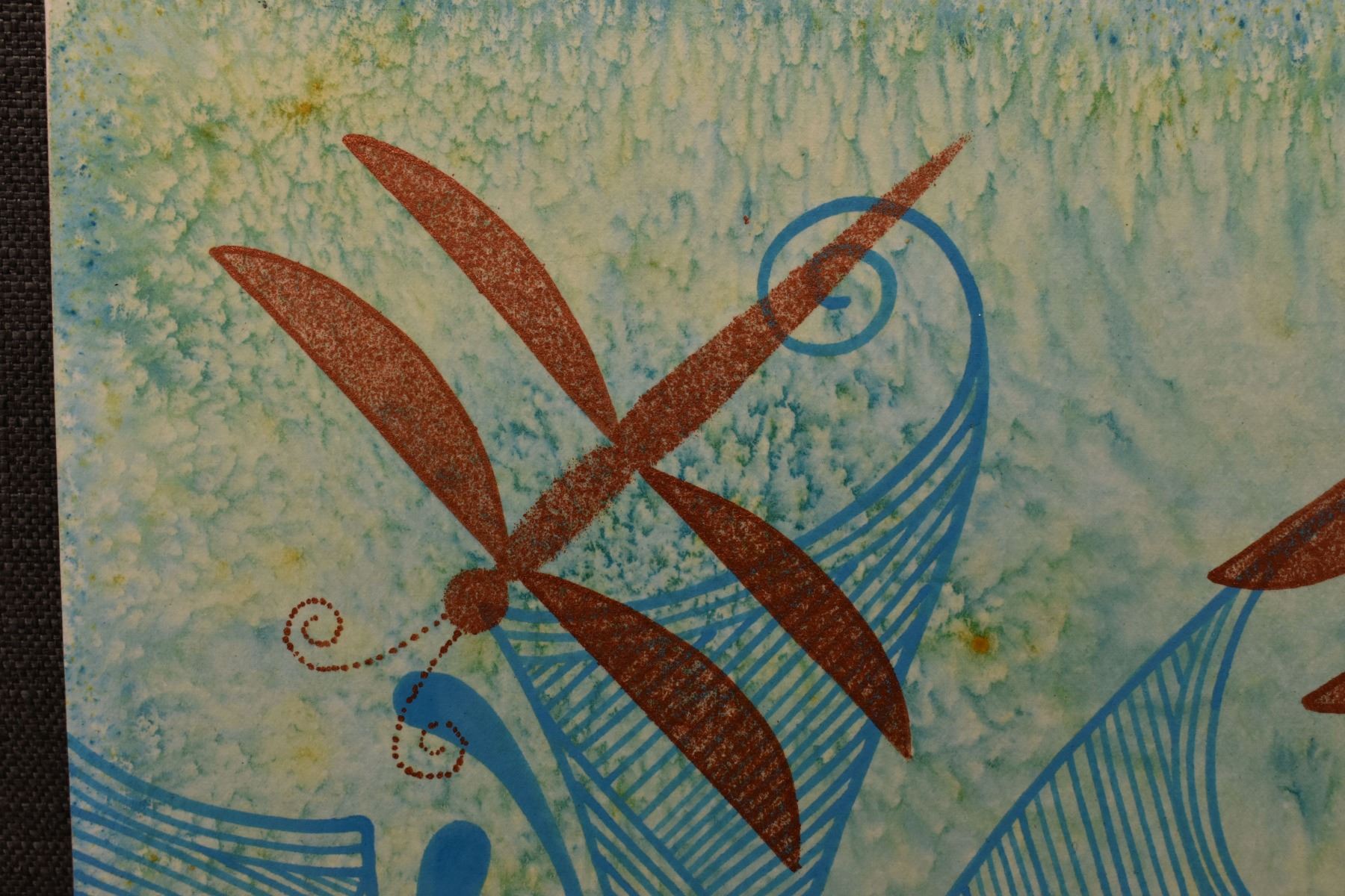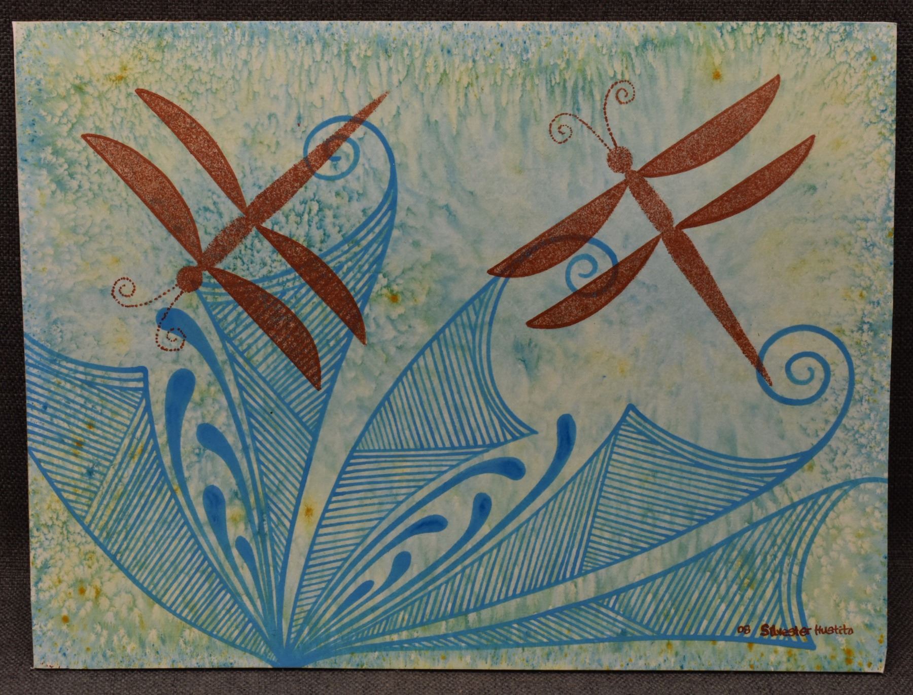 2008 Zuni. Original on hard board depicting dragon flies. Signed Silvester Hustito. 12'' x 16''