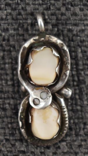 1970's Zuni pendant Stearling silver and mother of pearl pendant stamped Effie C. 7 grams 1.5" x .5"