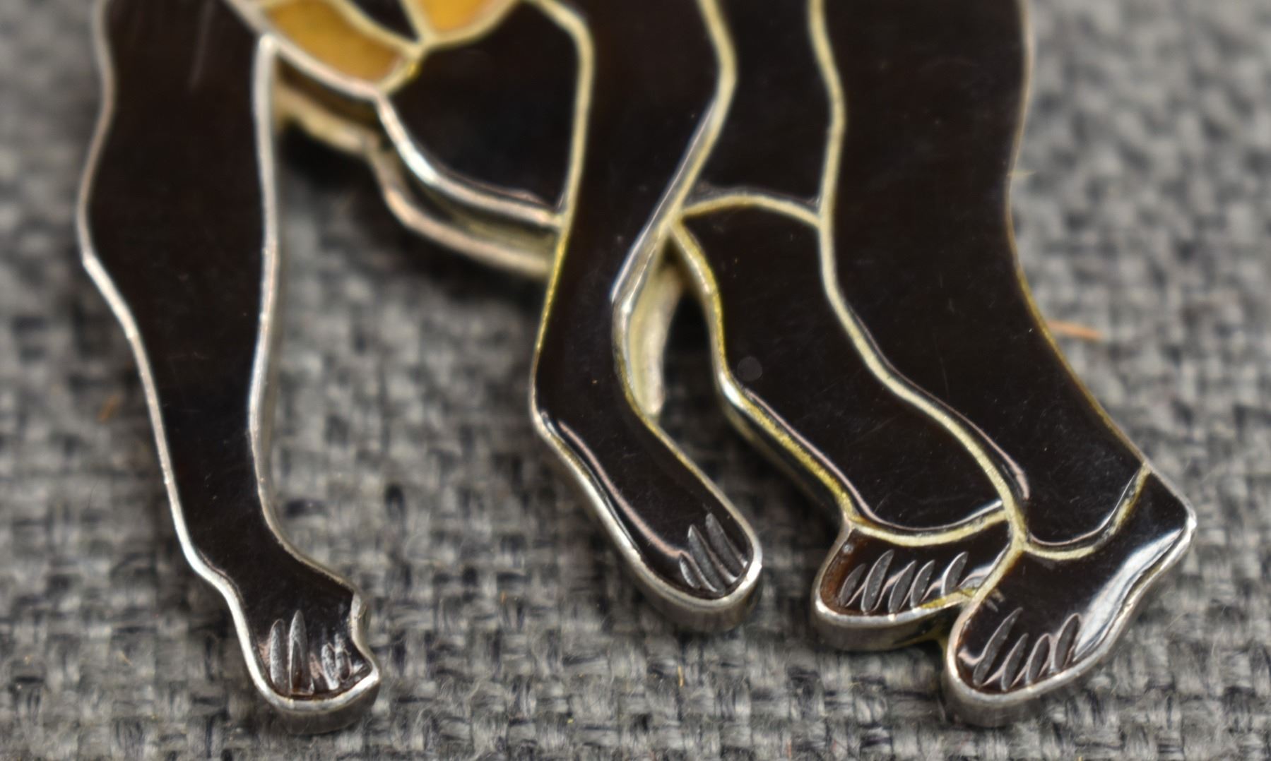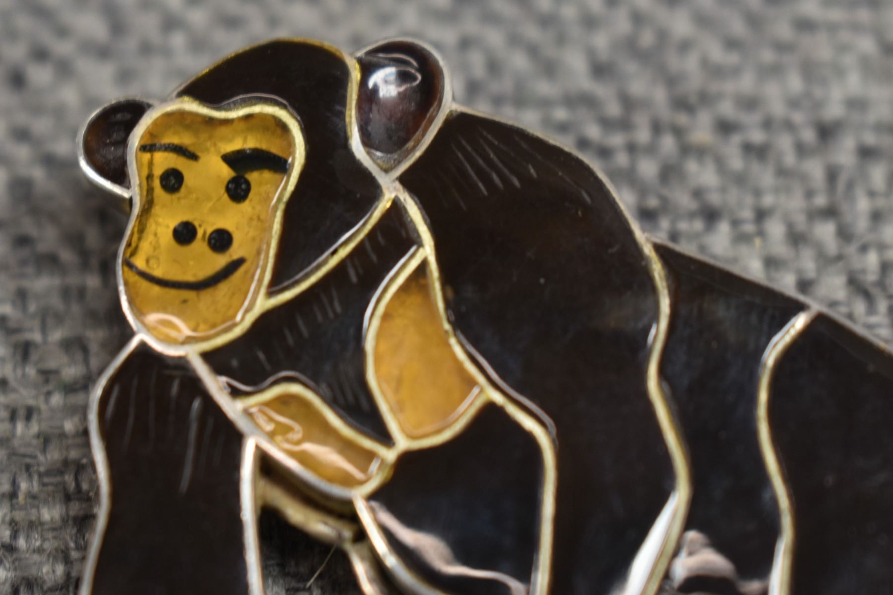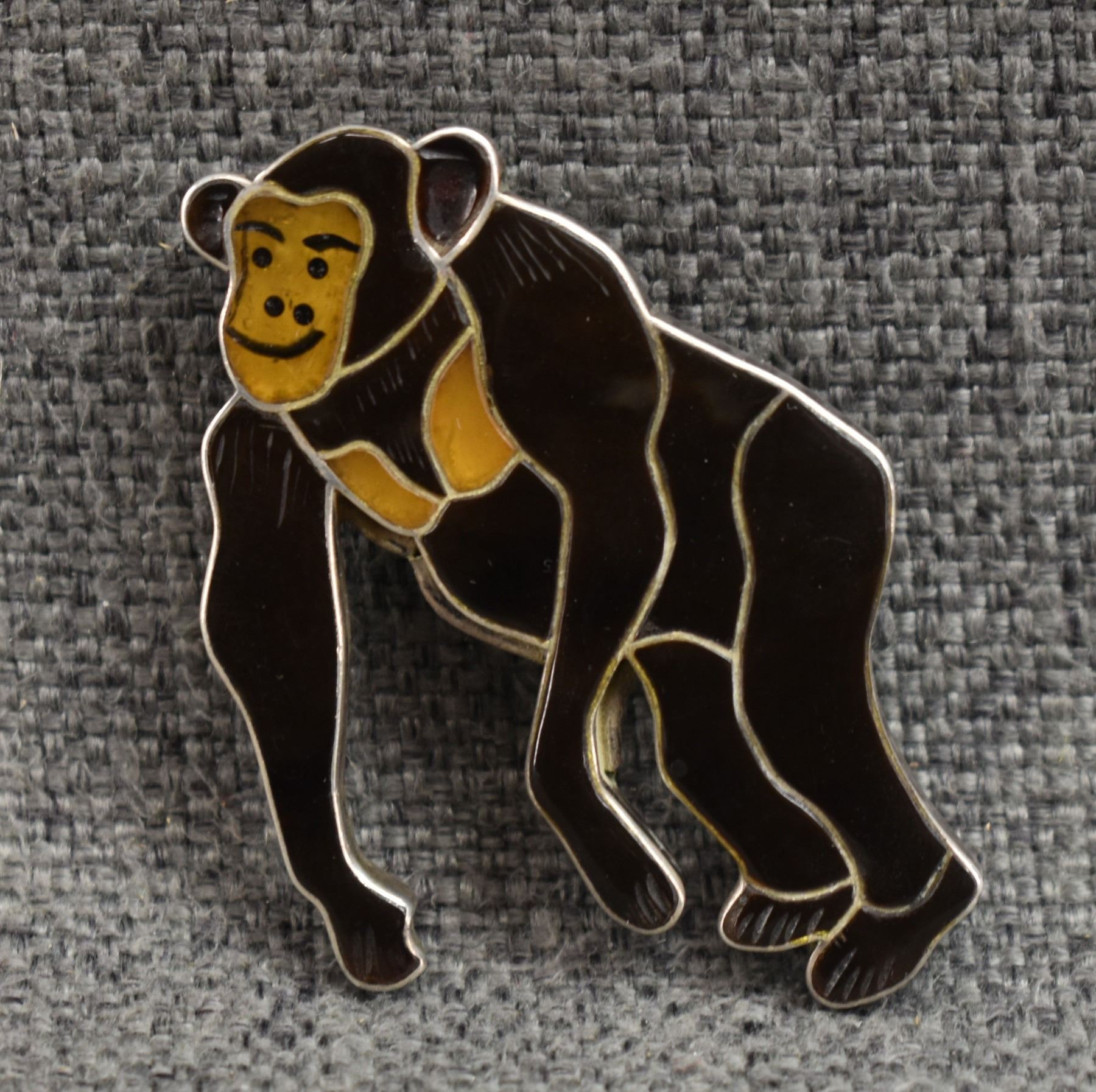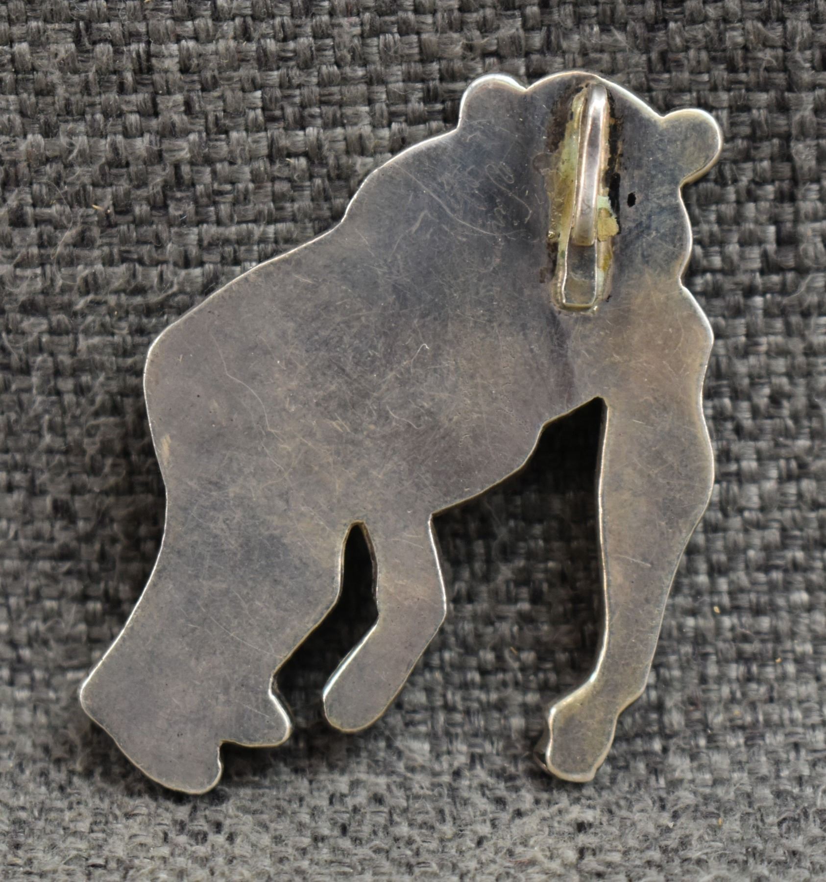 1980's Zuni. Sterling silver and shell pendant depicting chimp. Signed Virgil and Shirley Benn. 2.5'' x 1.75''. Toal weight 20 grams