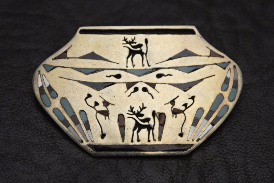 Damage that is visible in photos we do not note in description. Unless noted NO damage. All items have some amount of acceptable wear, scratches, nicks, missing stitches, etc. for their age. Measurements on paintings, pictures and prints are image size, paintings, pictures and prints that are in frames have not been examined outside the frame. Bracelets measurements are inside circumference, width, opening. Weight on jewelry includes stones, leather from Concho belts and bolos removed when possible.