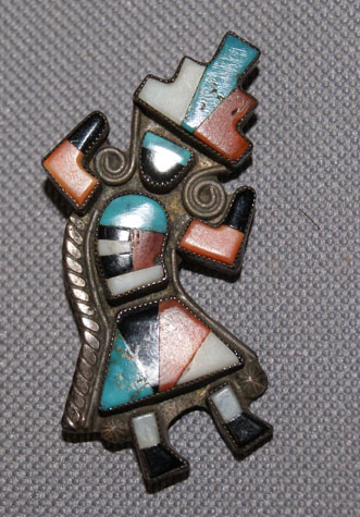 1950s-60s sterling silver stone to stone inlaid bent rainbow god, 2" x 1.25"