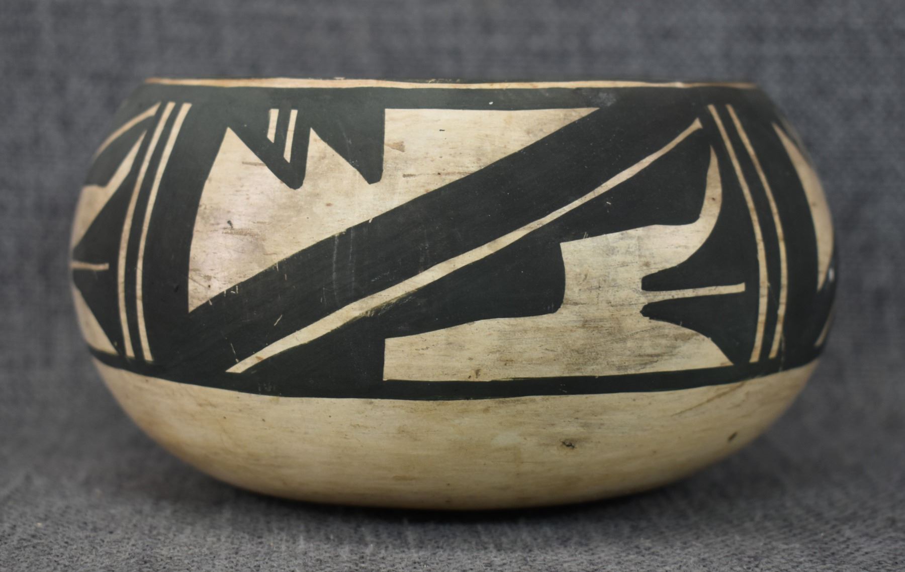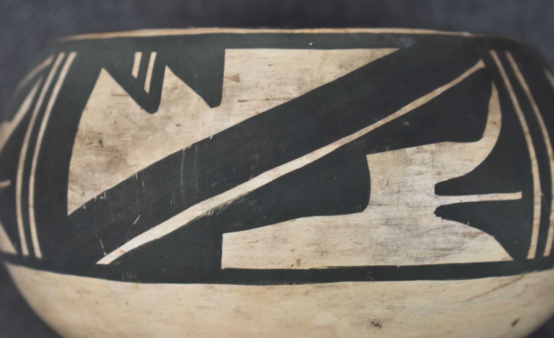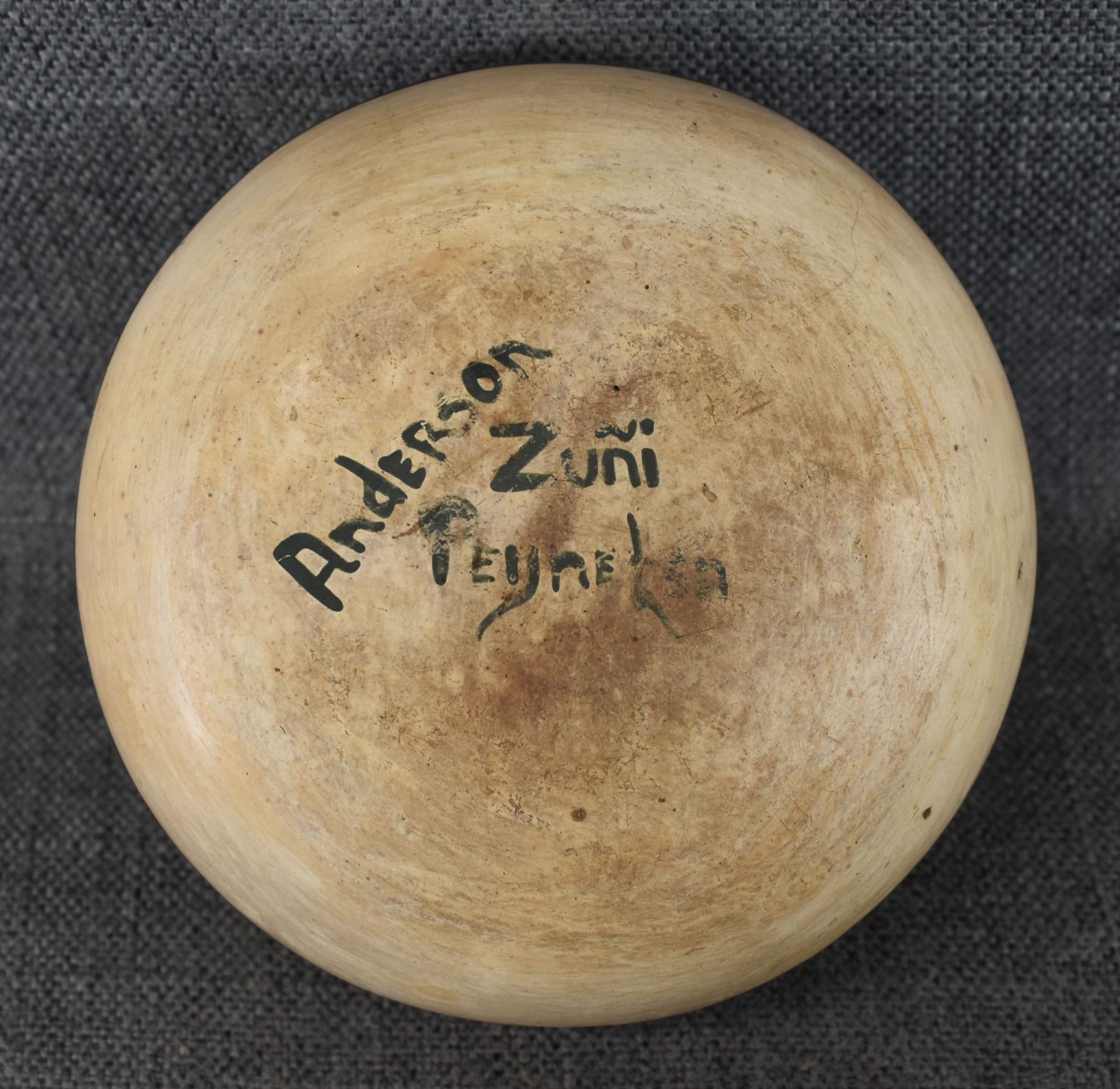 1980's Zuni, hand coiled with polychrome painted design by Anderson Peynetsa 3.25" x 6"