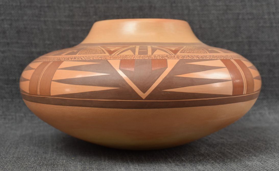 1990-2000's Zuni, hand coiled with polychrome painted design by Jocelyn Quam Namingha 4.5" x 8.5"