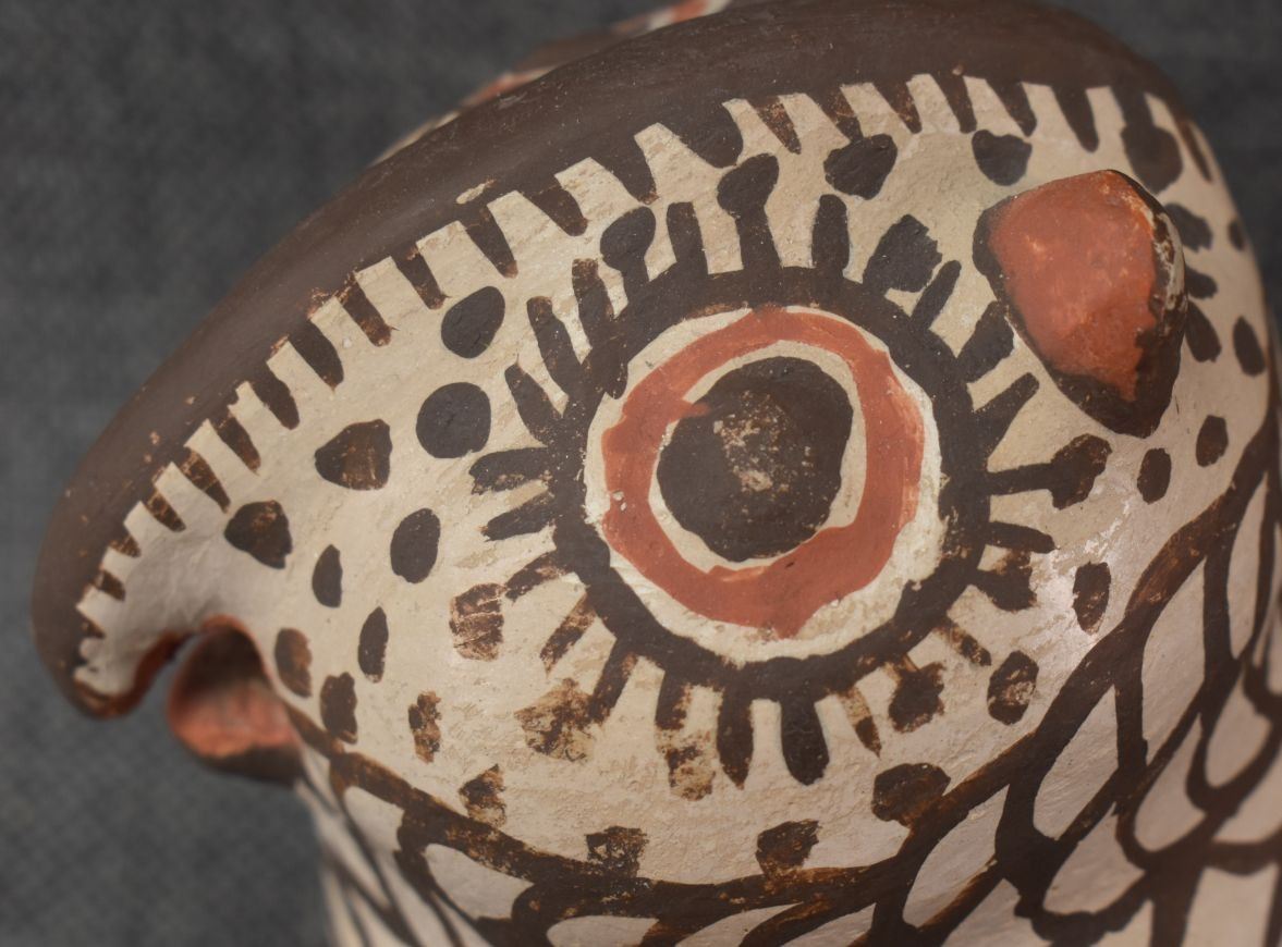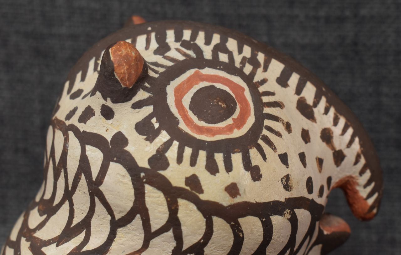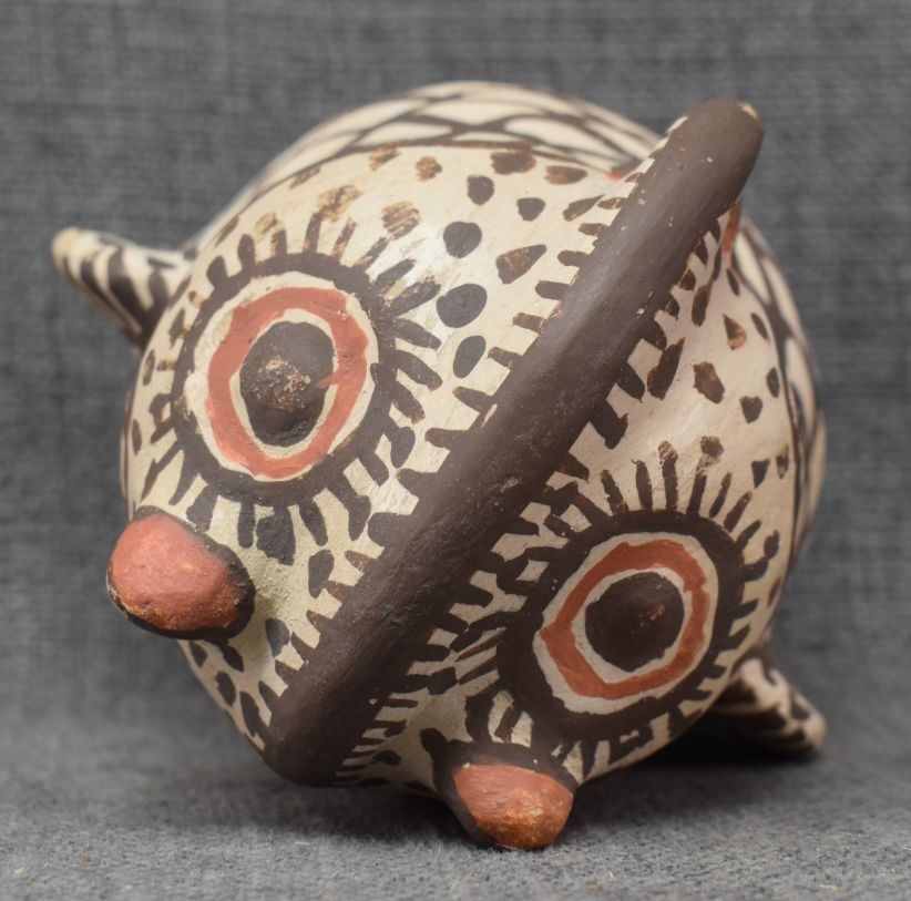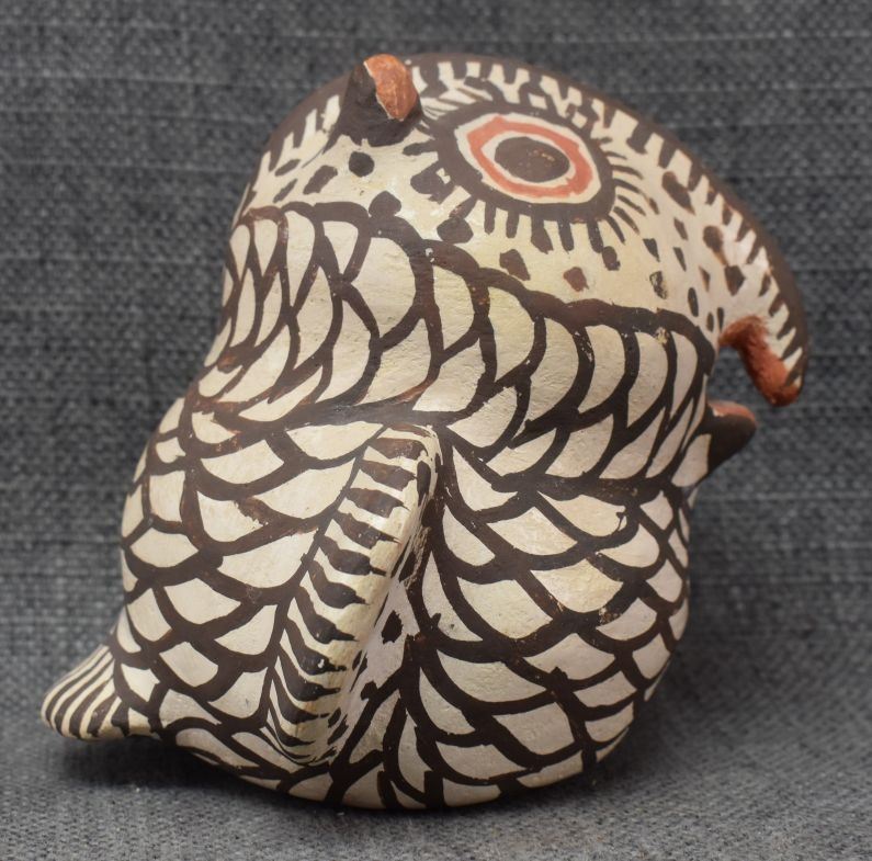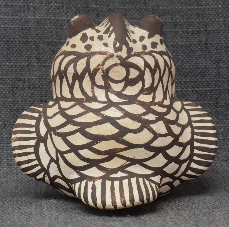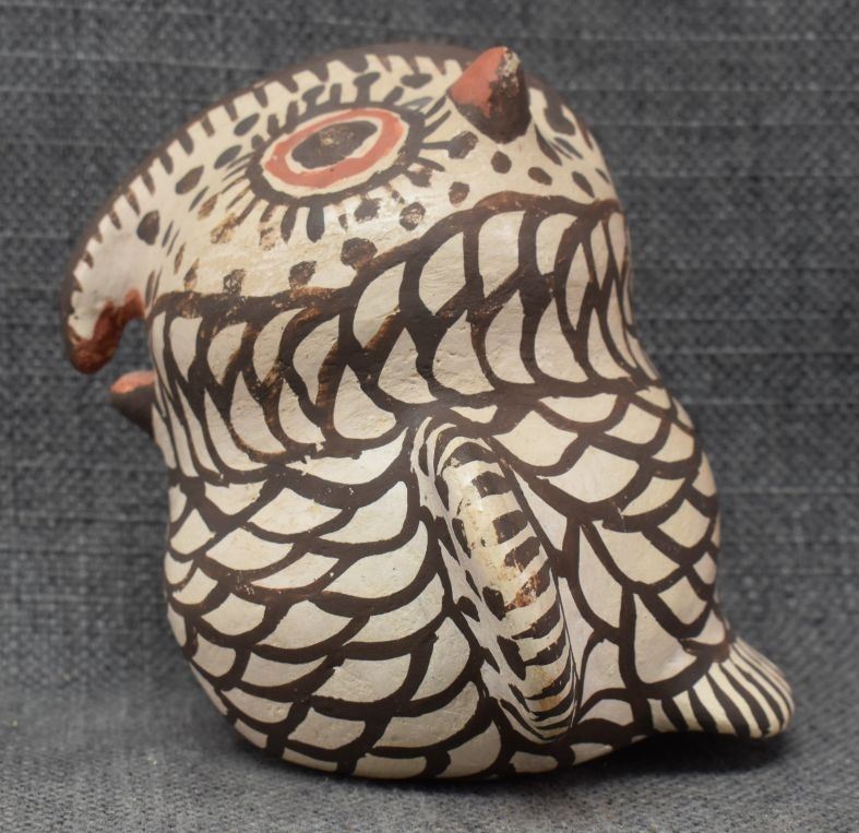 1930's Zuni, hand made pottery owl with polychrome painted design 4.5" x 5" x 4..5"