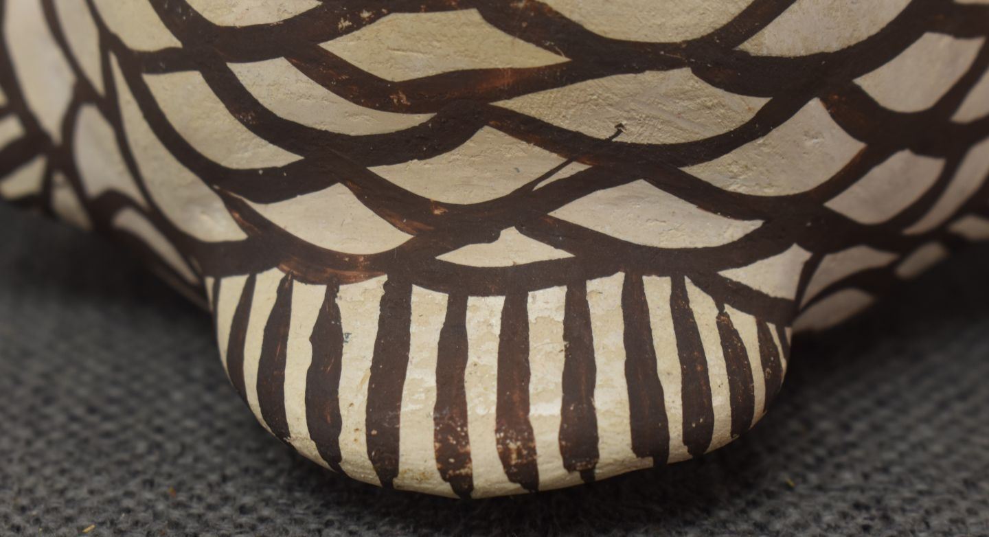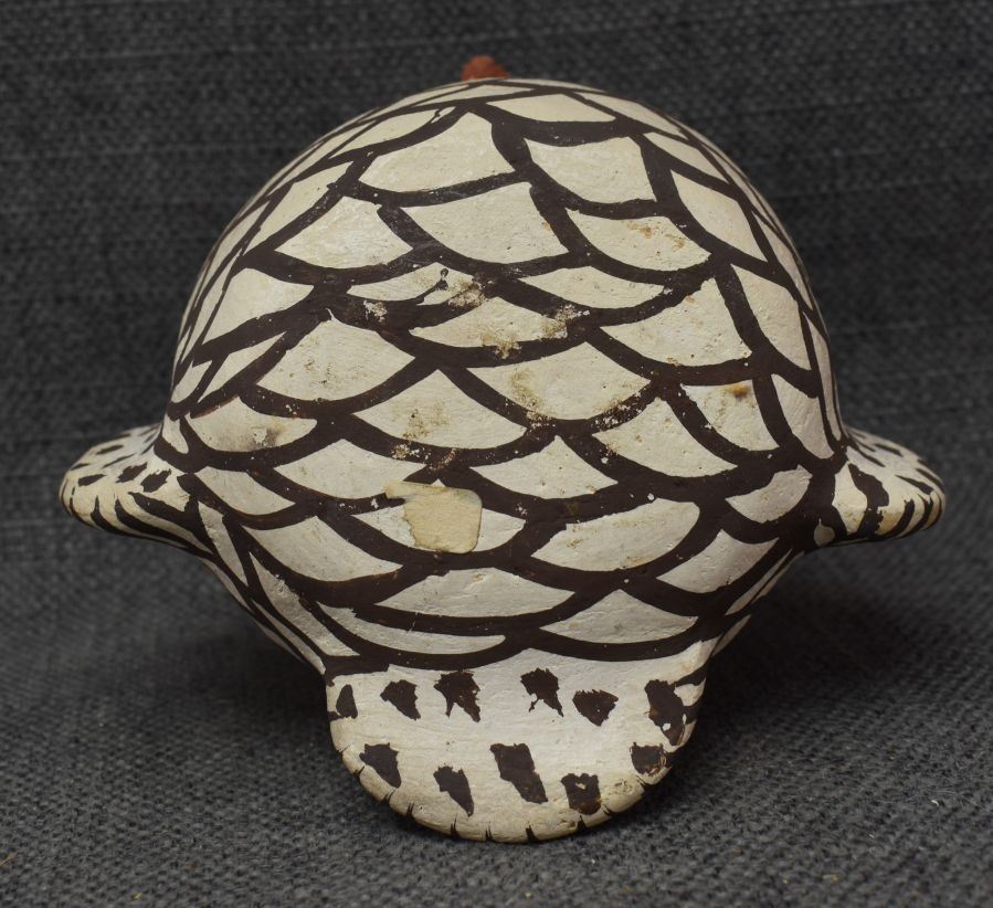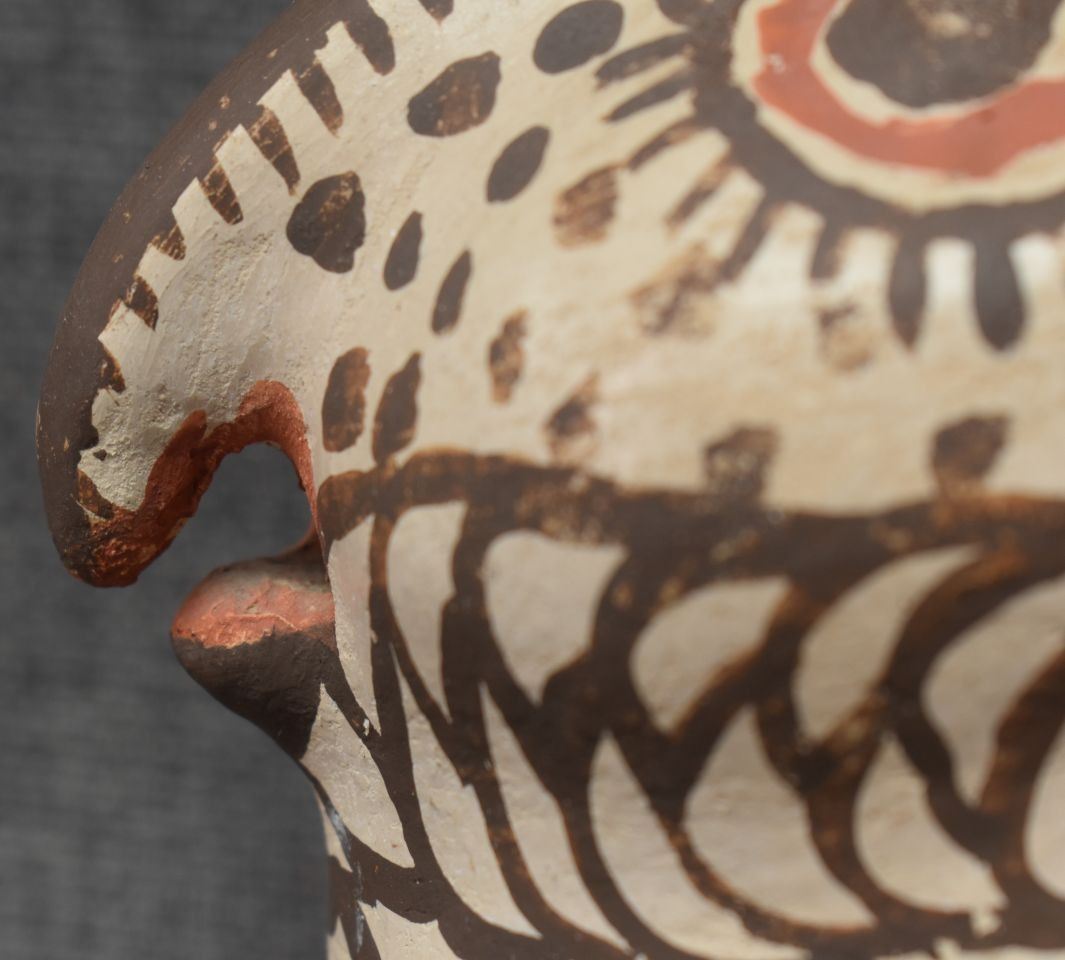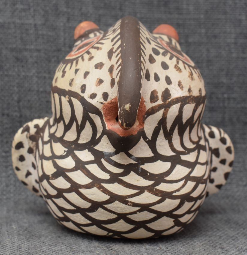 1930's Zuni, hand made pottery owl with polychrome painted design 4.5" x 5" x 4..5"