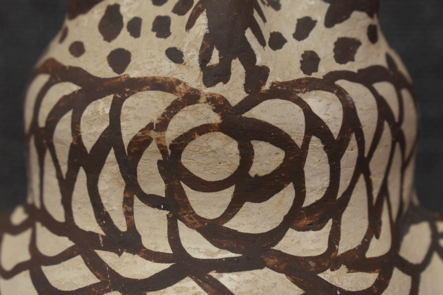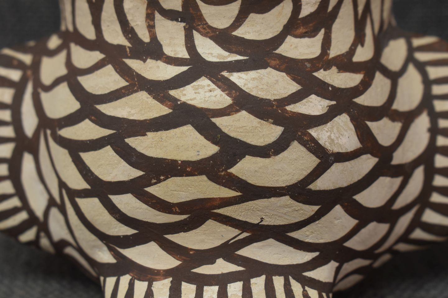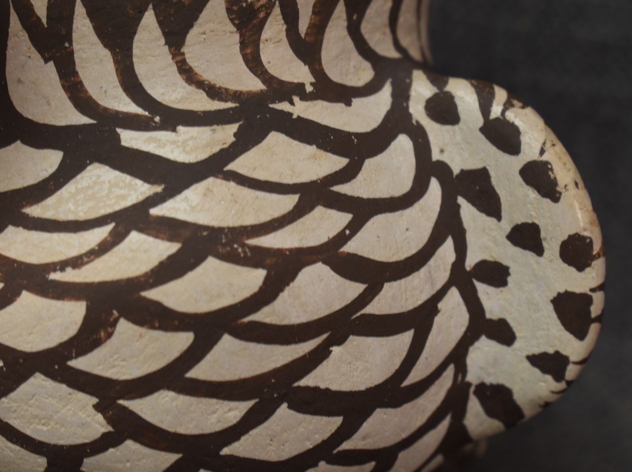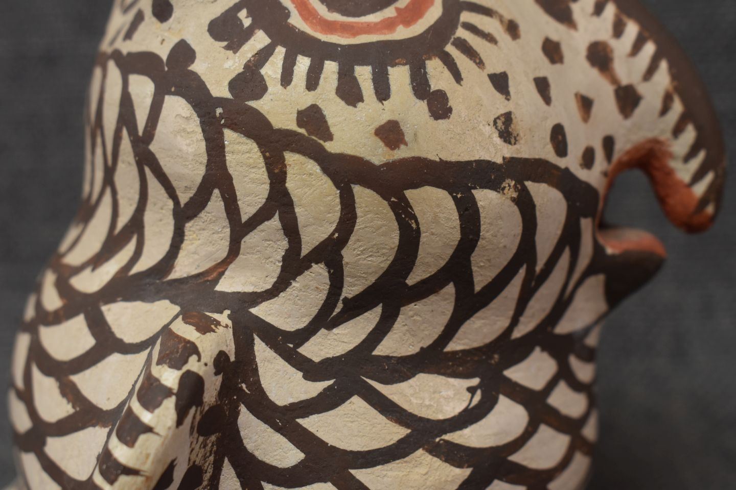 1930's Zuni, hand made pottery owl with polychrome painted design 4.5" x 5" x 4..5"