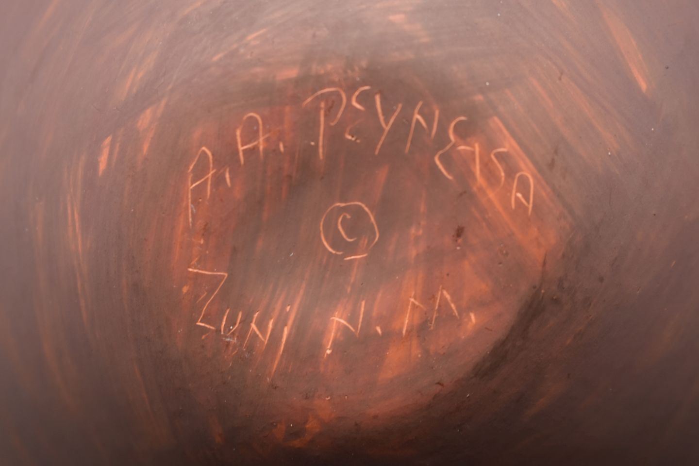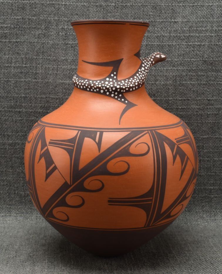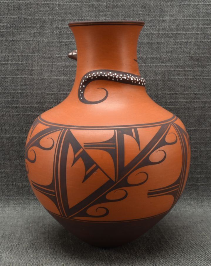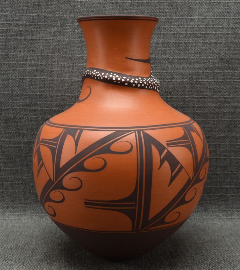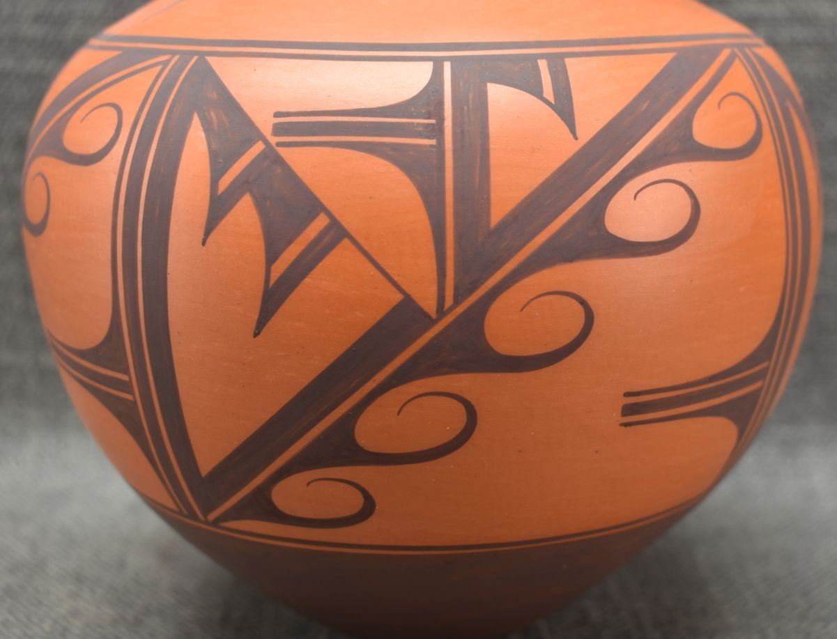 1990's Zuni. hand coiled and painted pottery vase, signed A.Peynetsa. 9'' x 7''