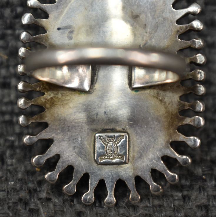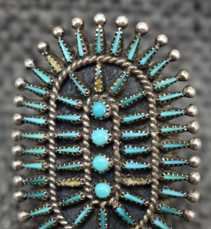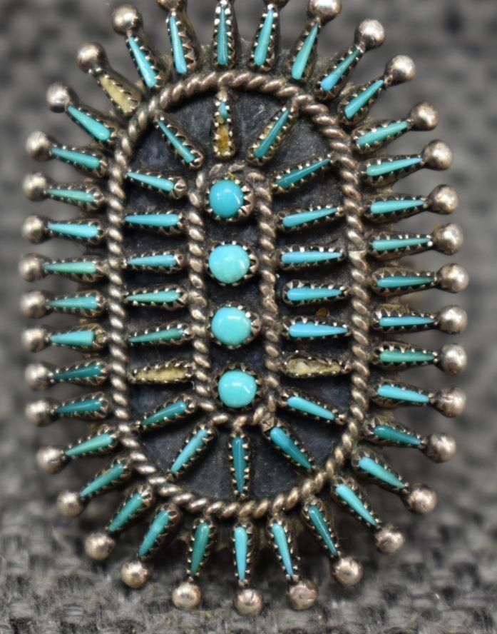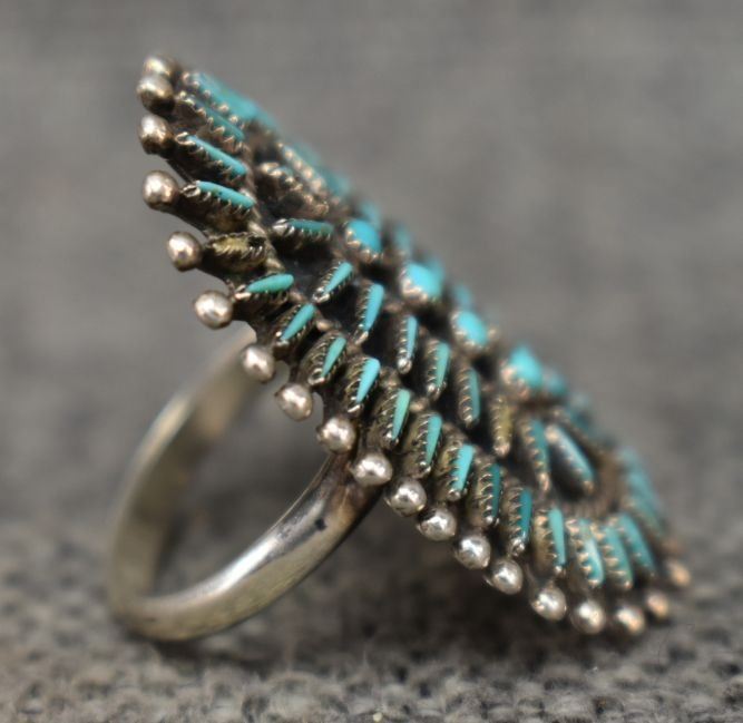 1960's Zuni. Sterling silver and turquoise ring signed with hallmark. Size 7. total weight 6 grams missing stones