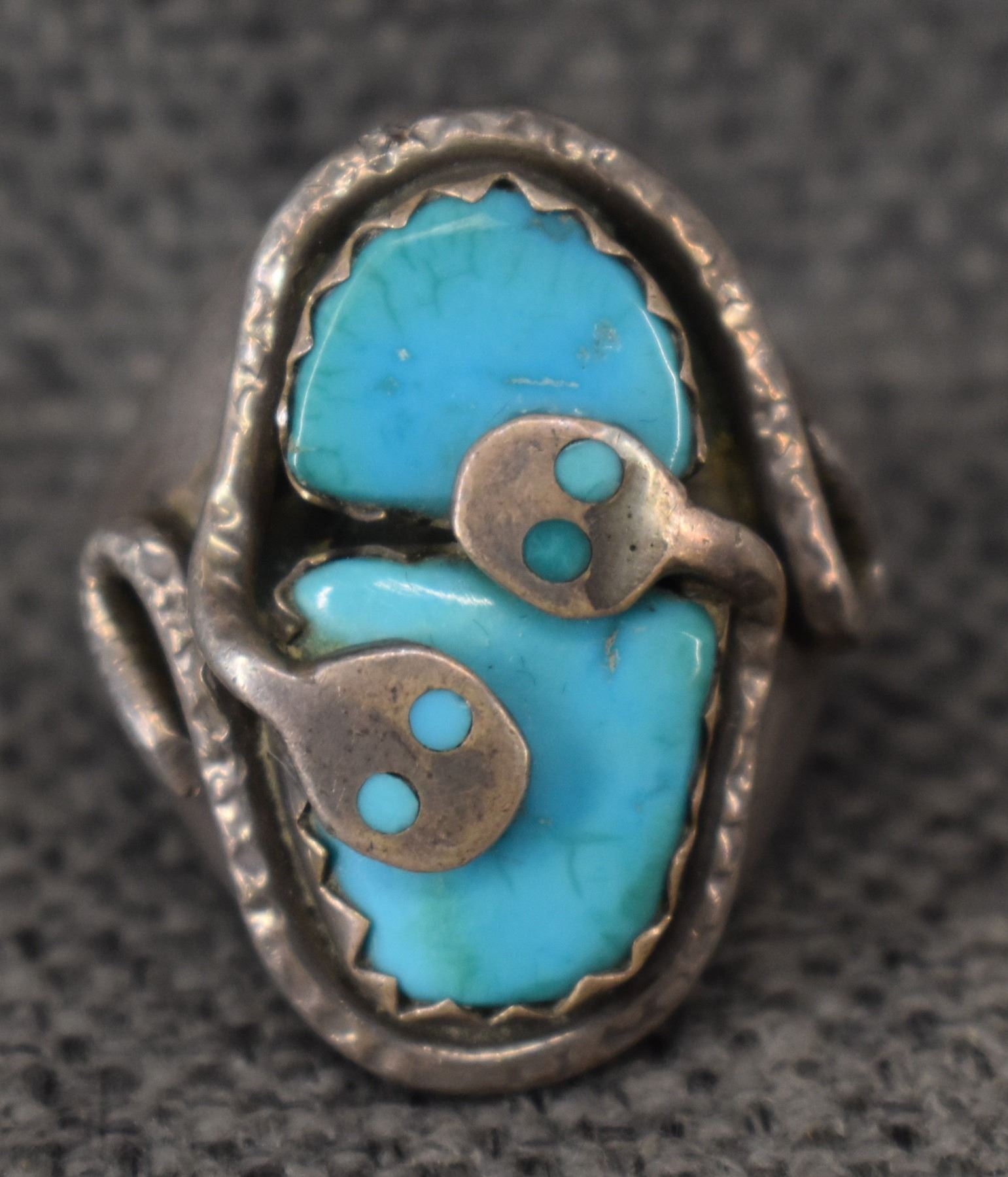 1970's Zuni. Sterling silver and turquoise ring. Signed Effie. C. size 9.5 total weight 28 grams