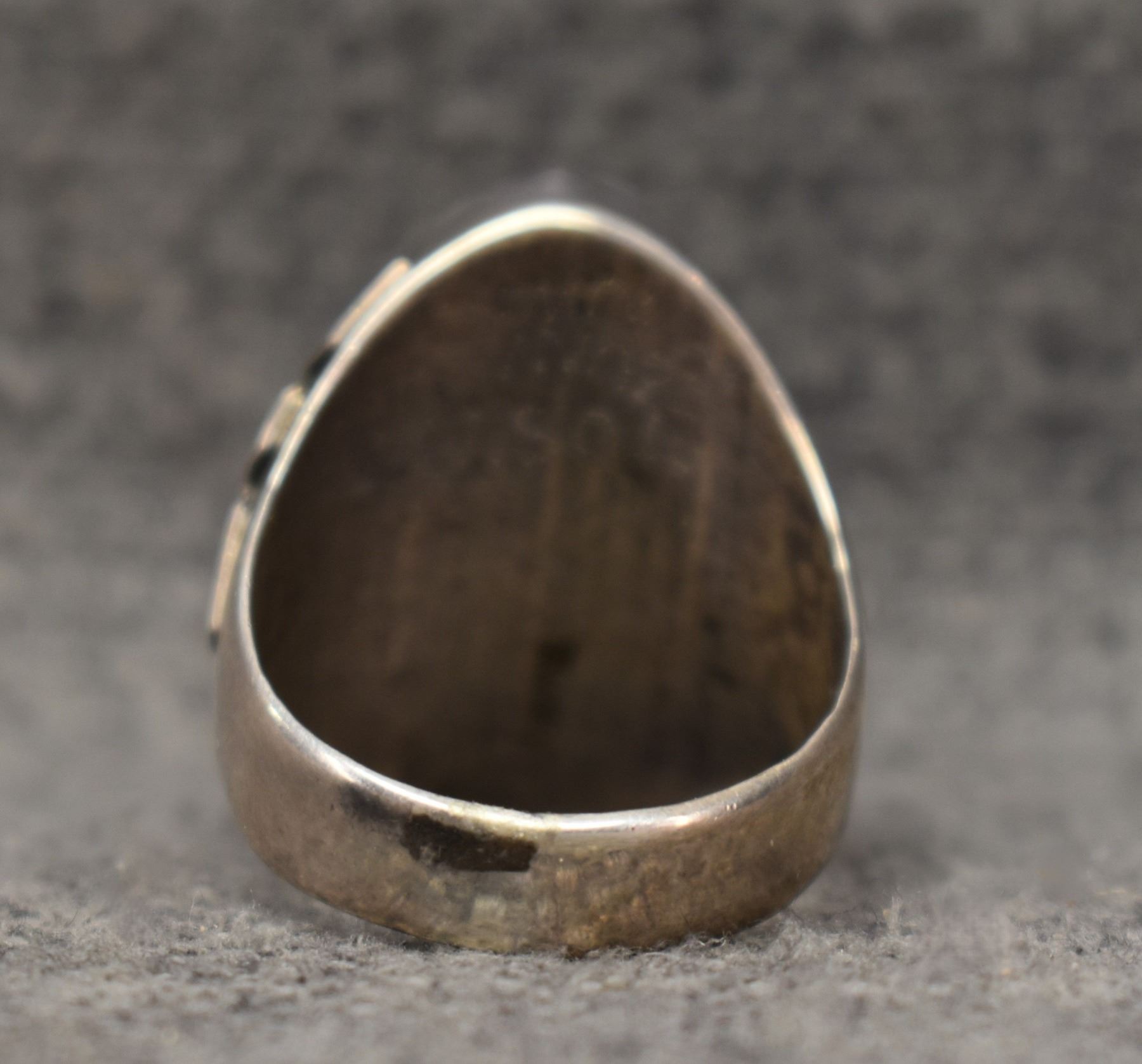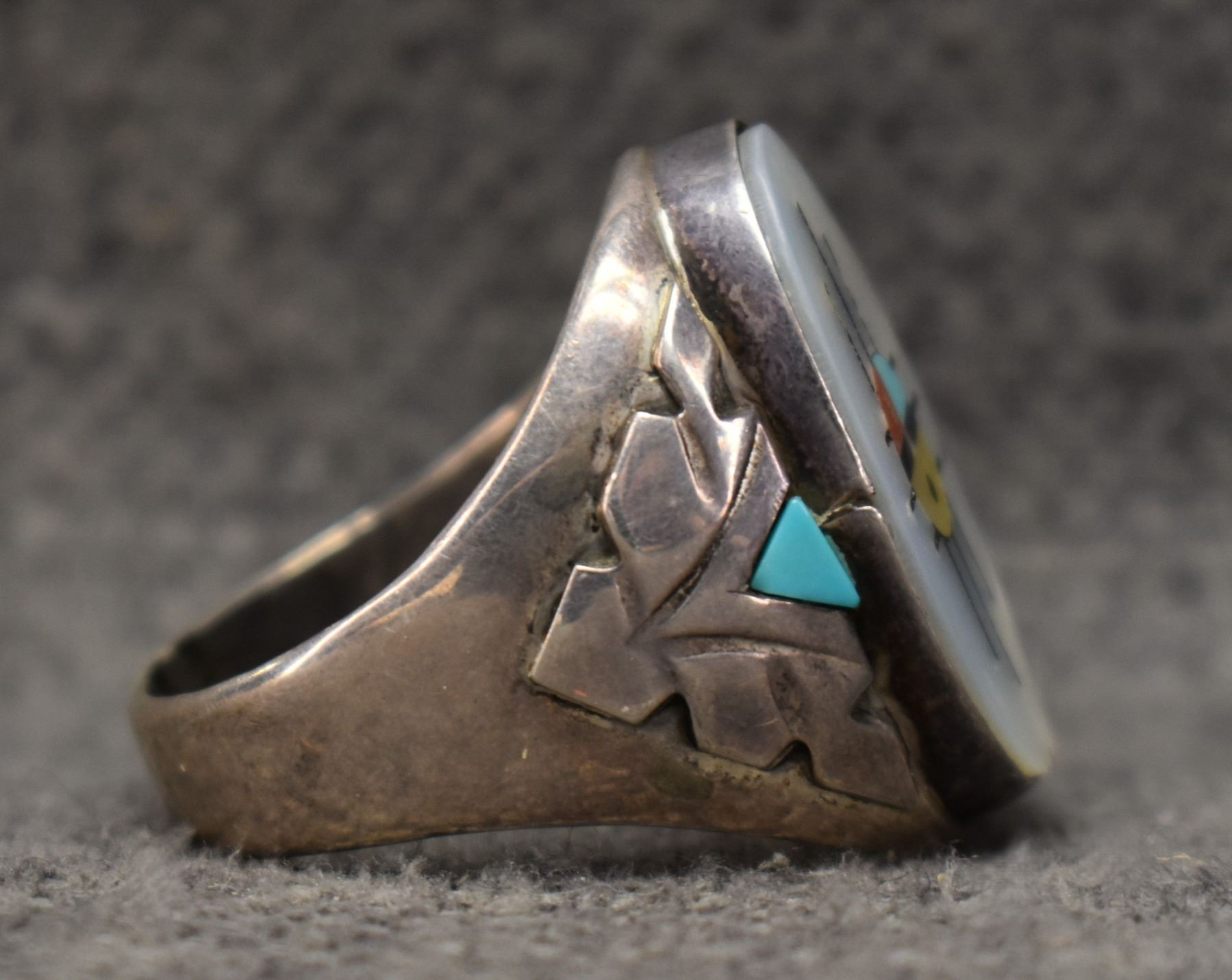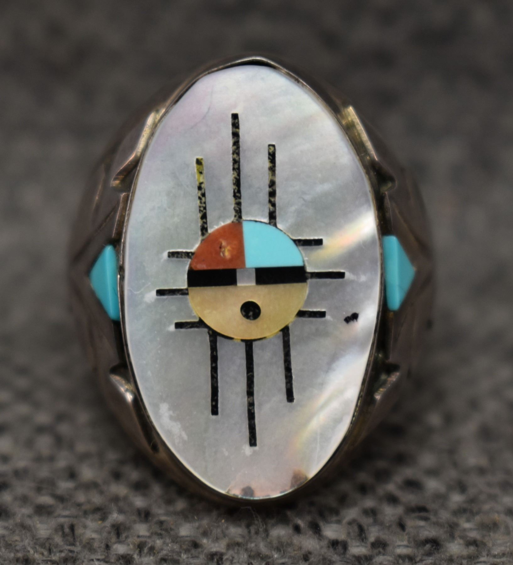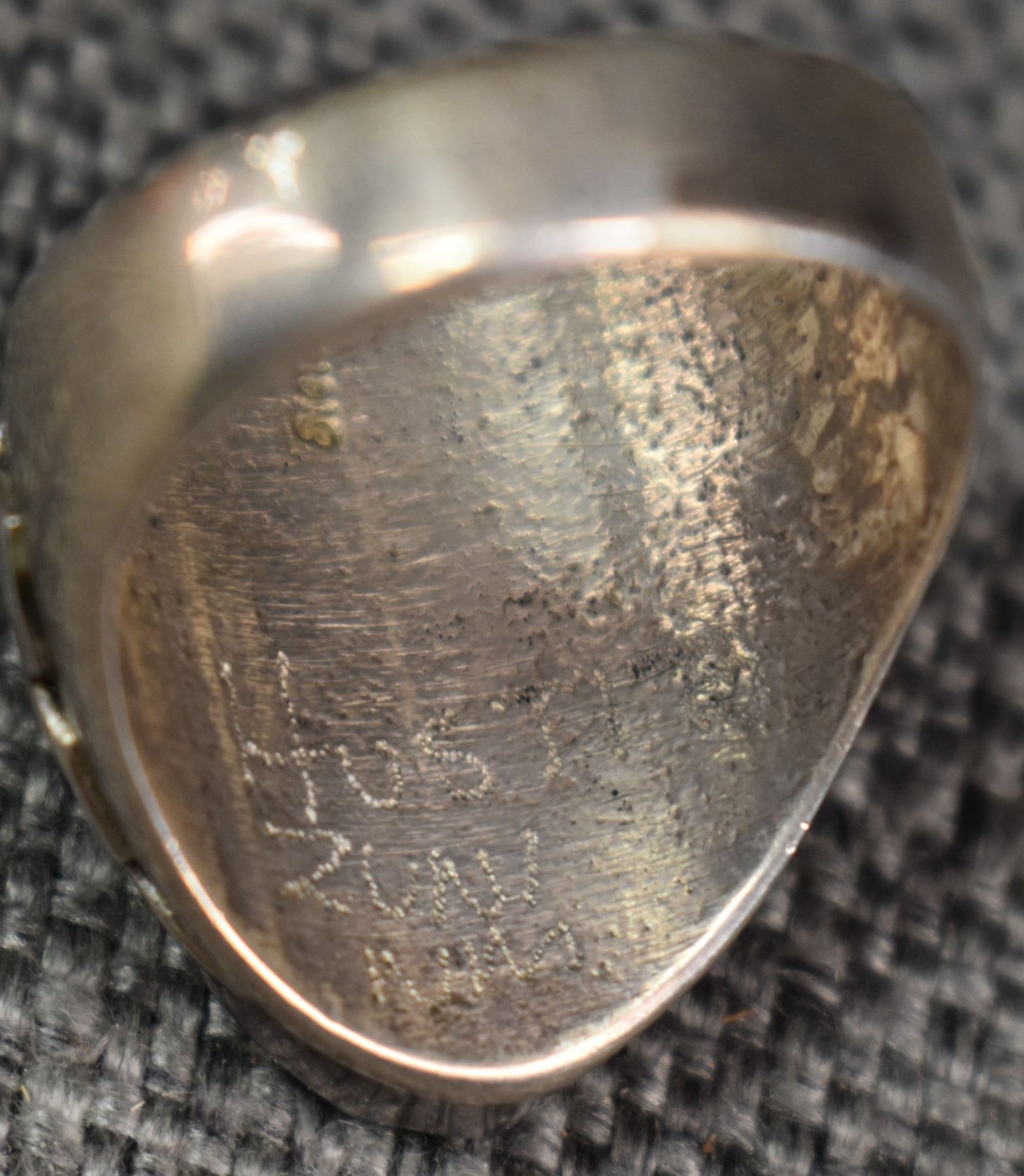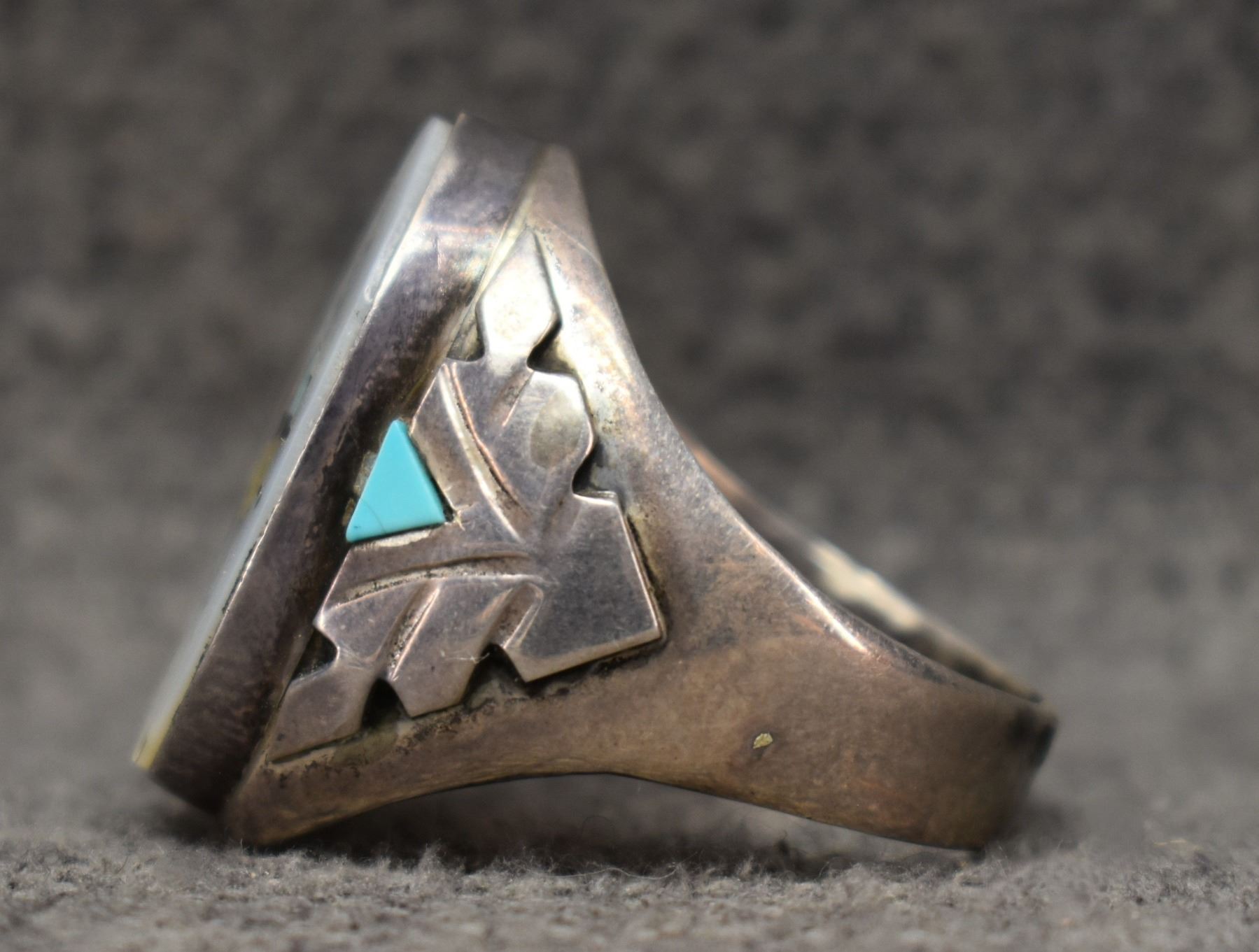 1960's Zuni. Sterling silver turquoise and shell ring. Signed Hustito. Size 12. total weight 23 grams