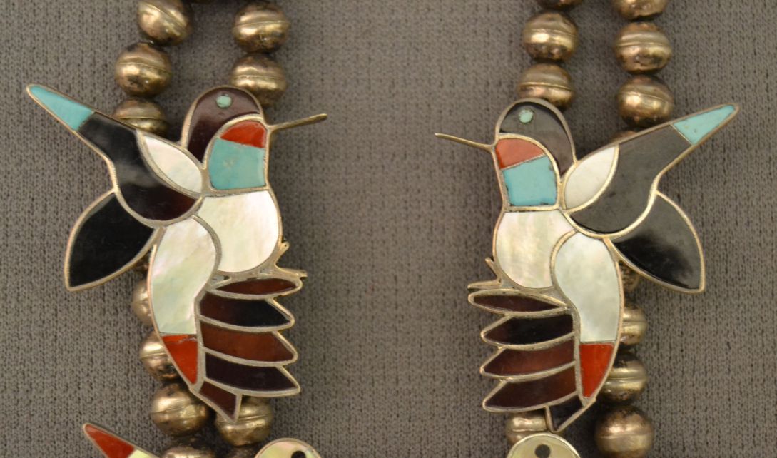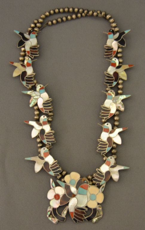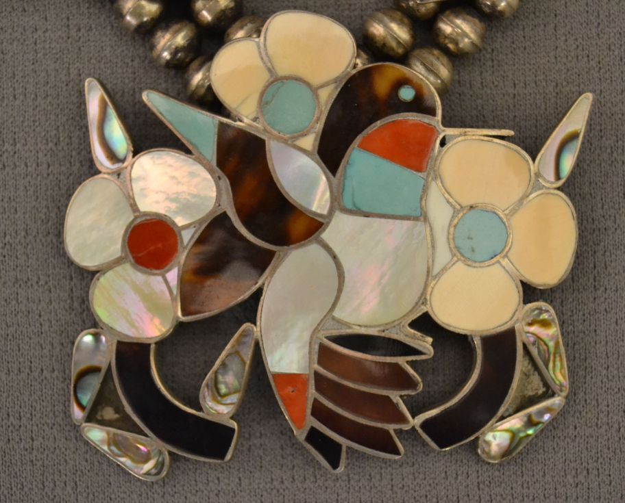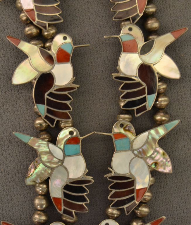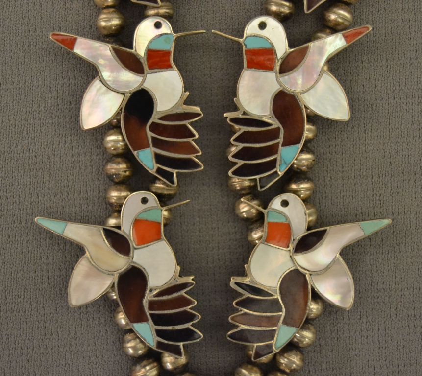 1950s 60s sterling silver channel inlay hummingbird and floral design signed with electric pencil Bobby & Corraine Shack 28" long