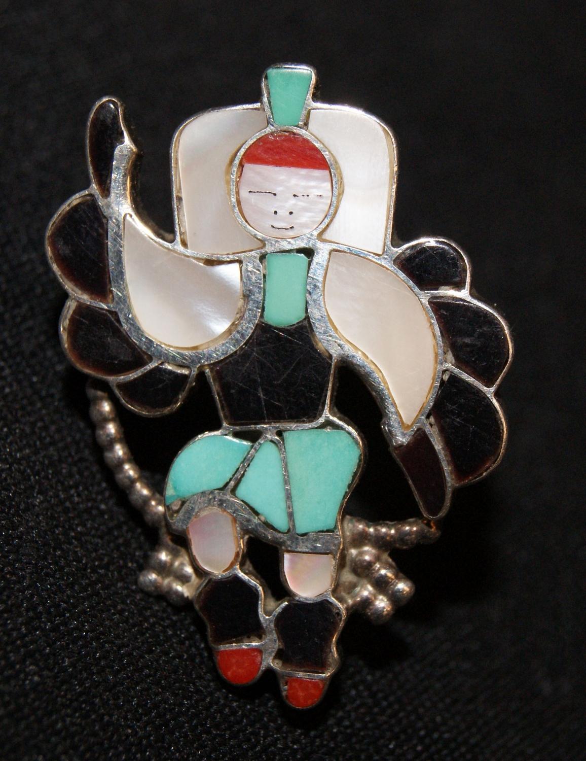 1990s sterling silver inlaid eagle dancer, size 7