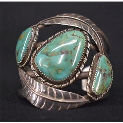 1970's Navajo Indian. Sterling silver and turquoise braclet2.5'' x 5.25'' x 1''. Total weight 73 grams