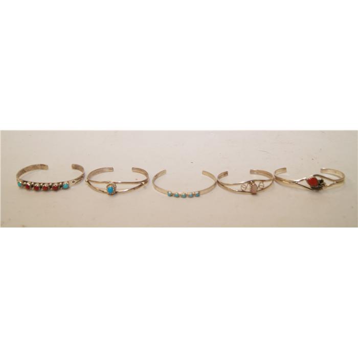 1980's sterling with coral & turquoise, smallest 3" x .5" x.5", largest 4" x .5" x .75"