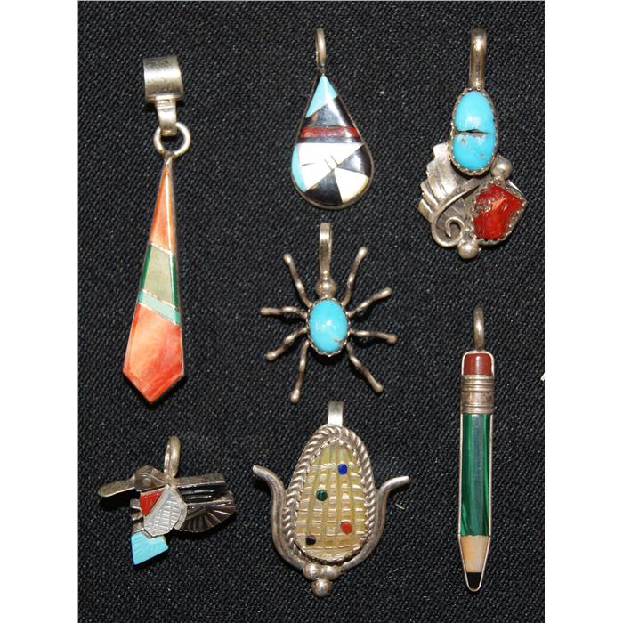 1970's sterling, stone inlay, smallest .75" x 1", largest .5" x 2.5"